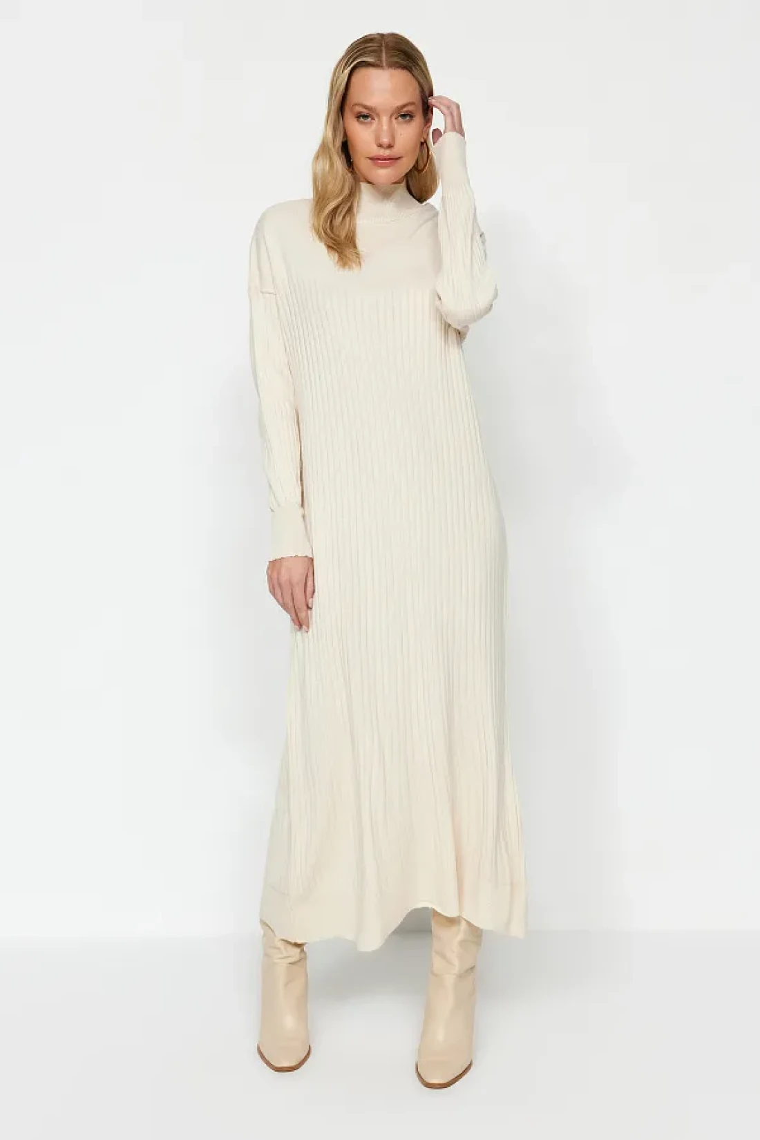 Modest فستان تريكو بياقة حجرية TCTAW24EB00015