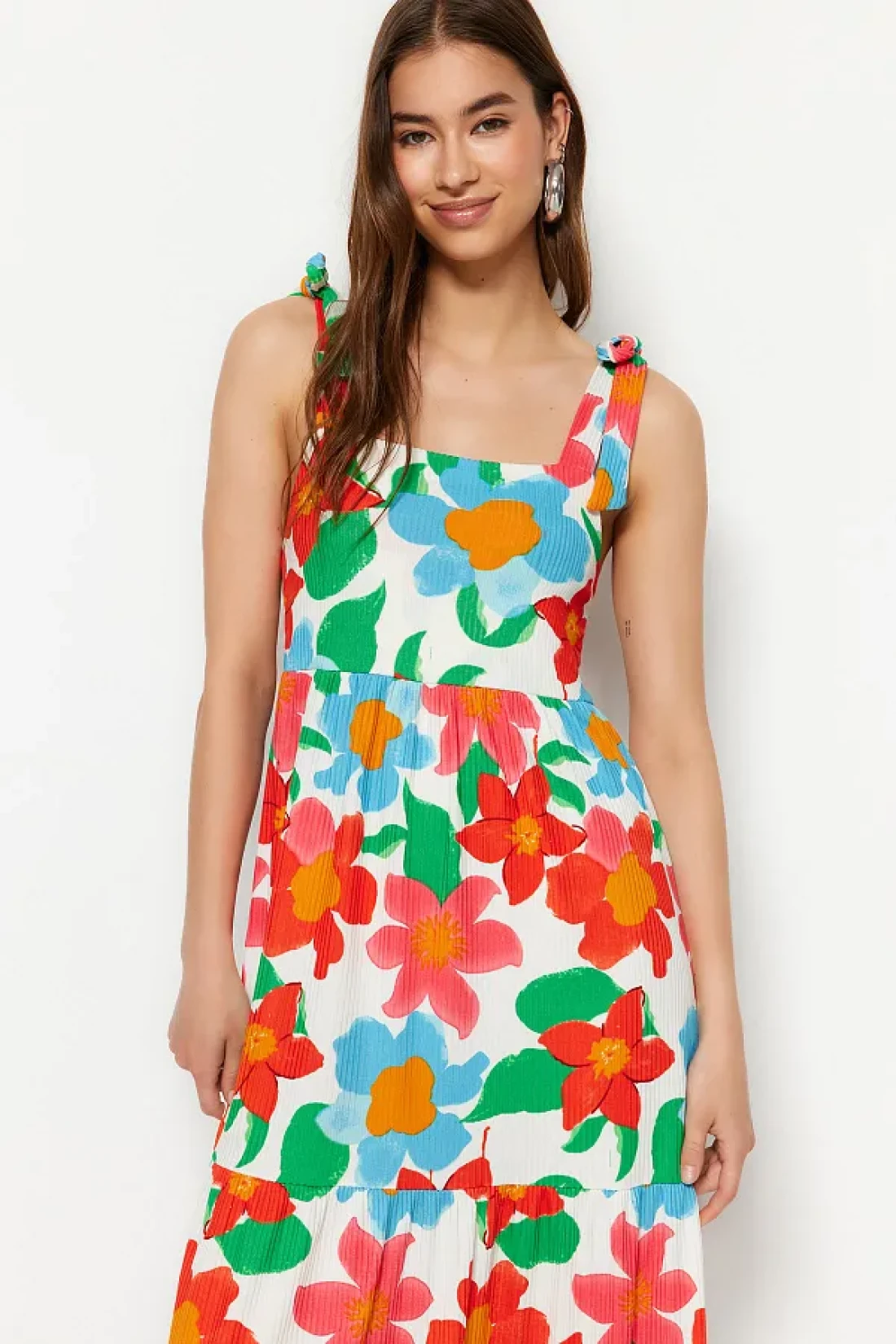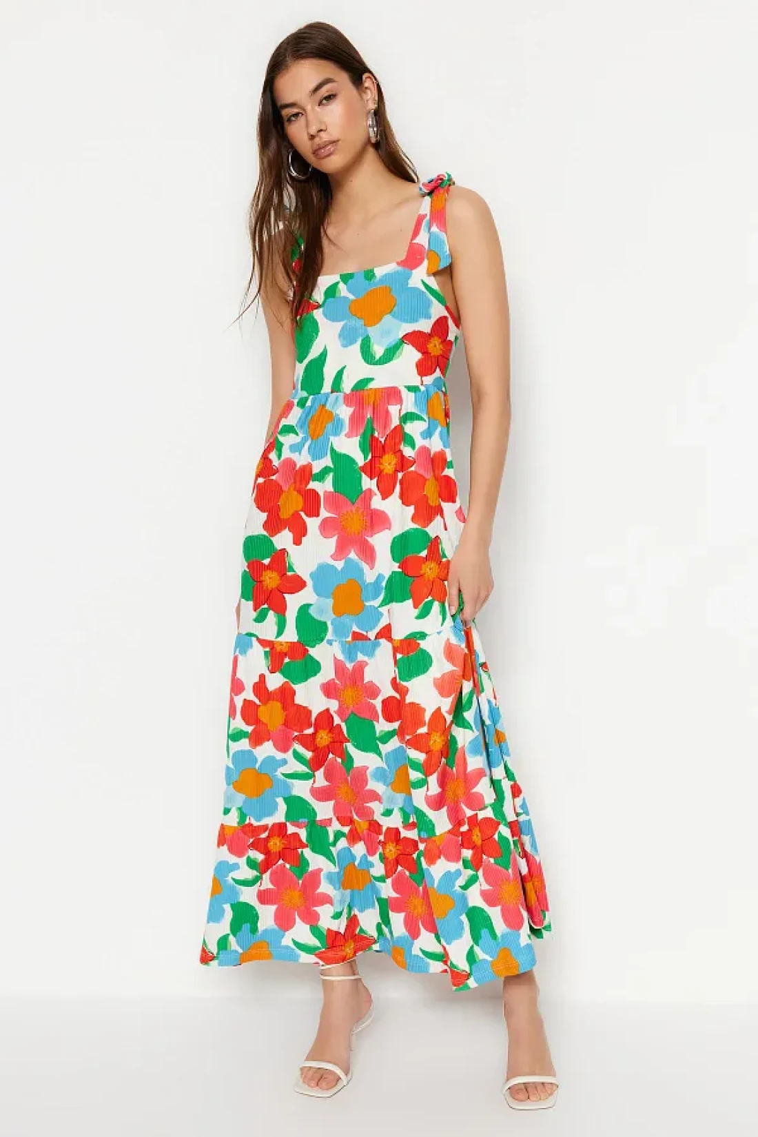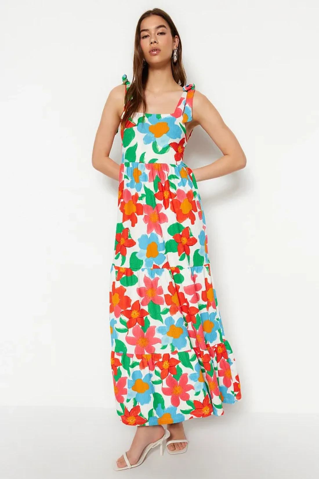 Collection فستان محبوك طويل بزهرة كبيرة باللون البرتقالي TWOSS23EL02328