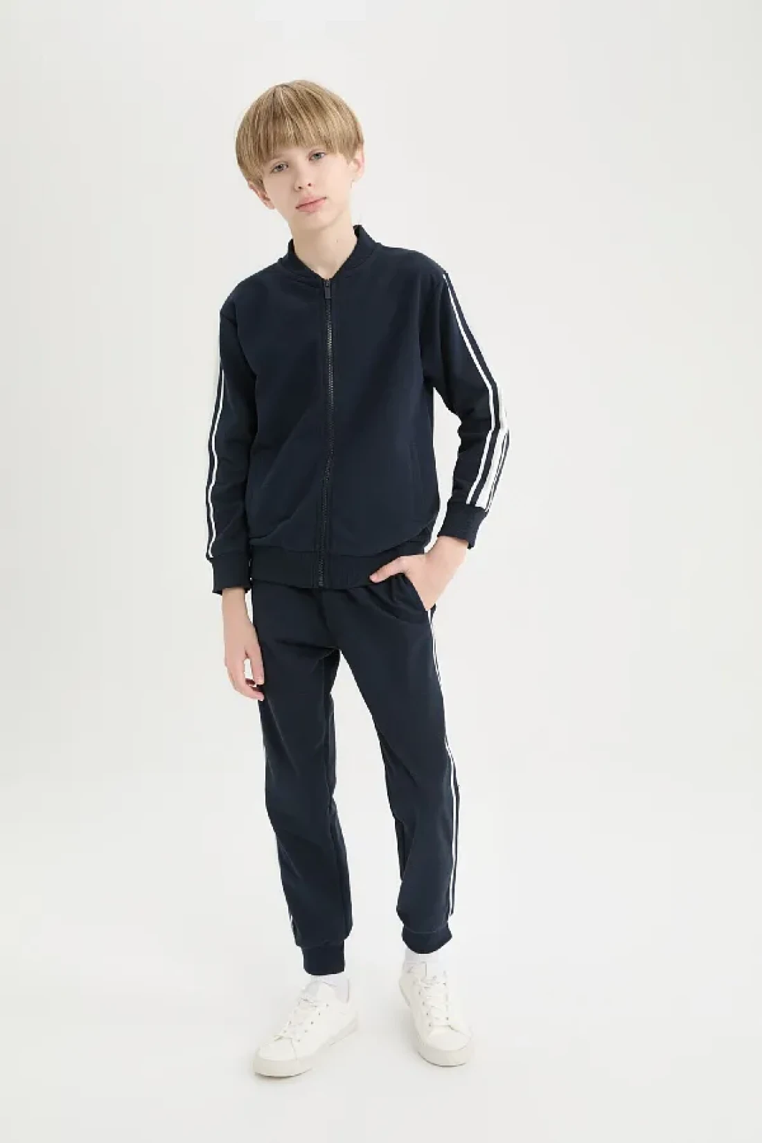 Defacto طقم مكون من قطعتين للأولاد - سترة بومبر بسحاب وياقة جامعية وسروال رياضي مطاطي D9854a825sp