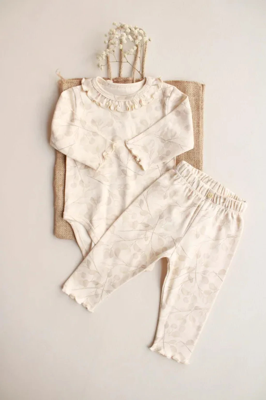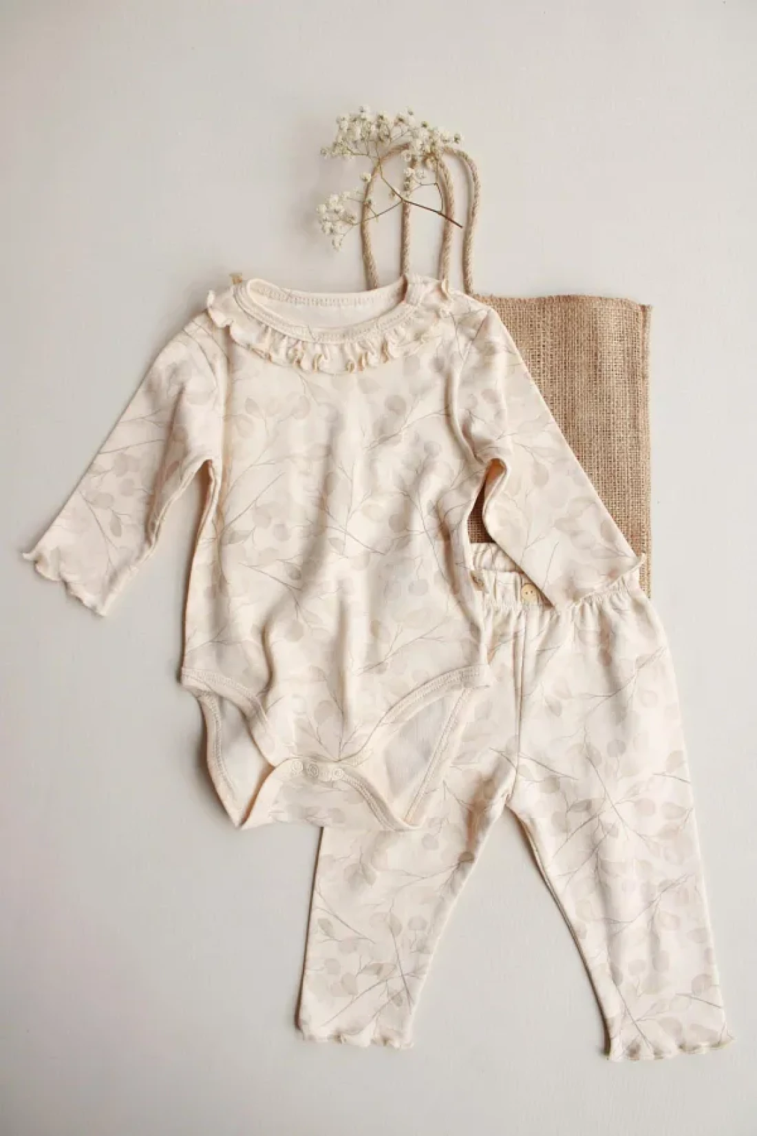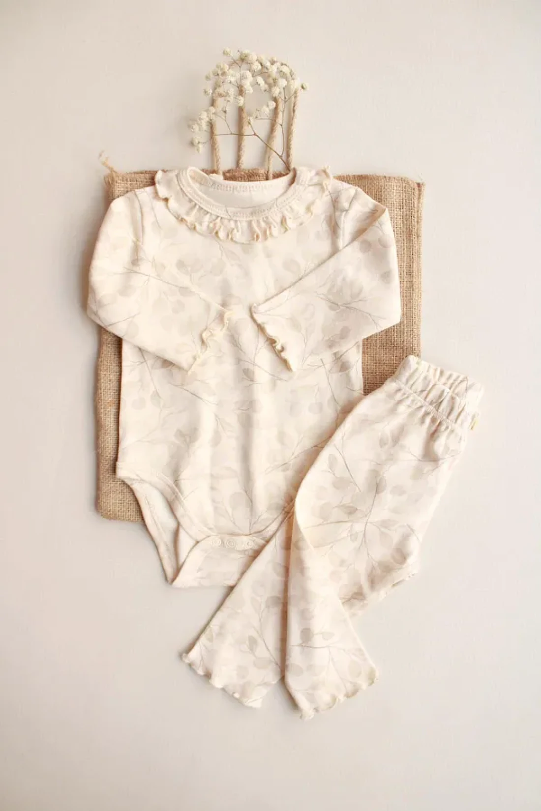 OhlalaKoala طقم لباس ضيق مكشكش بنمط فرع كريمي