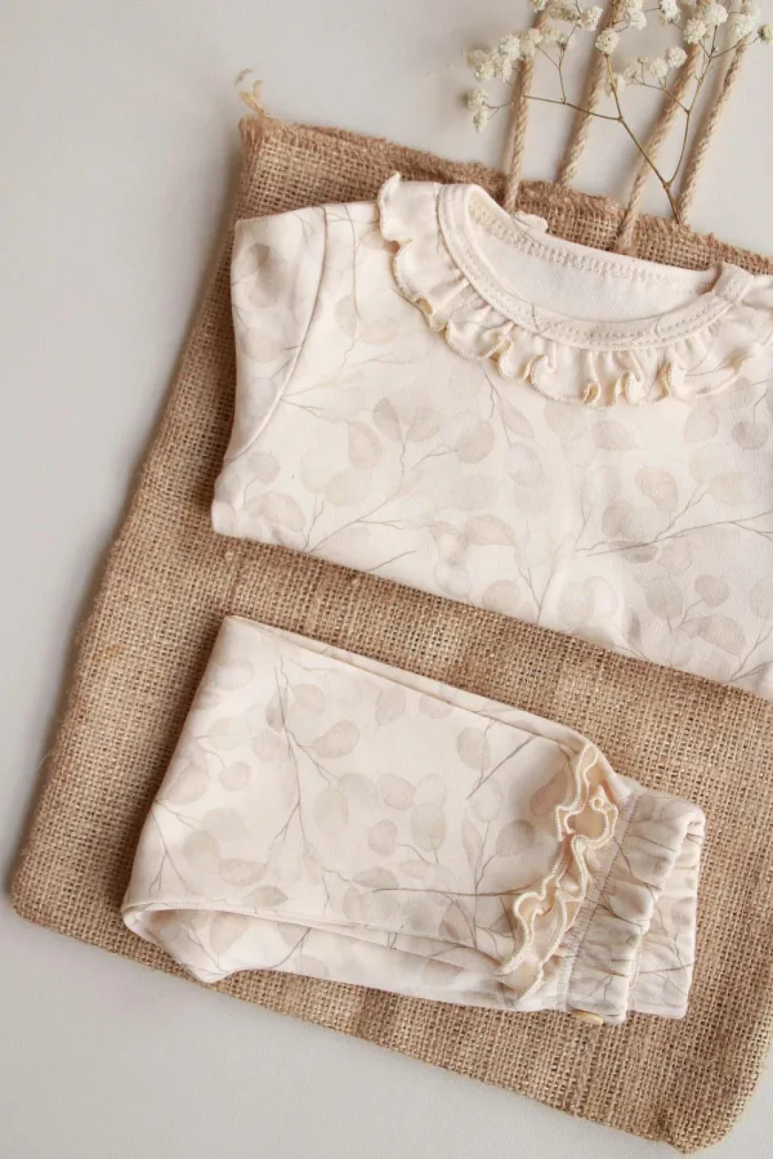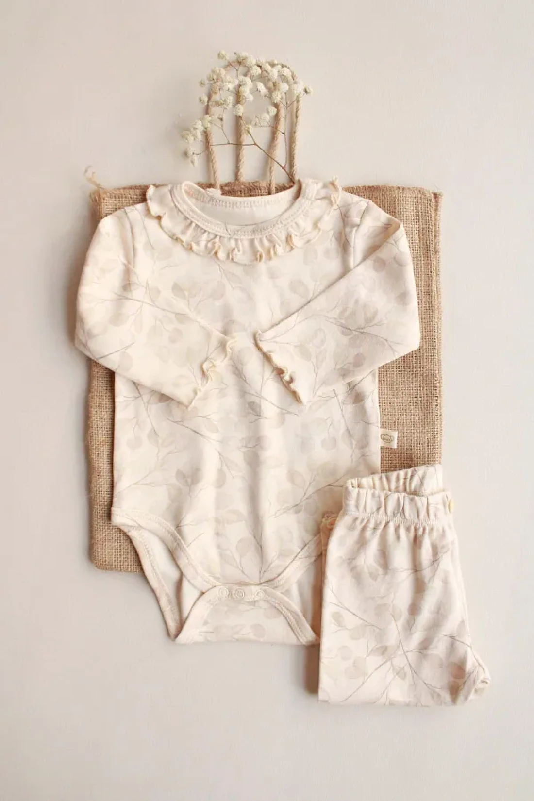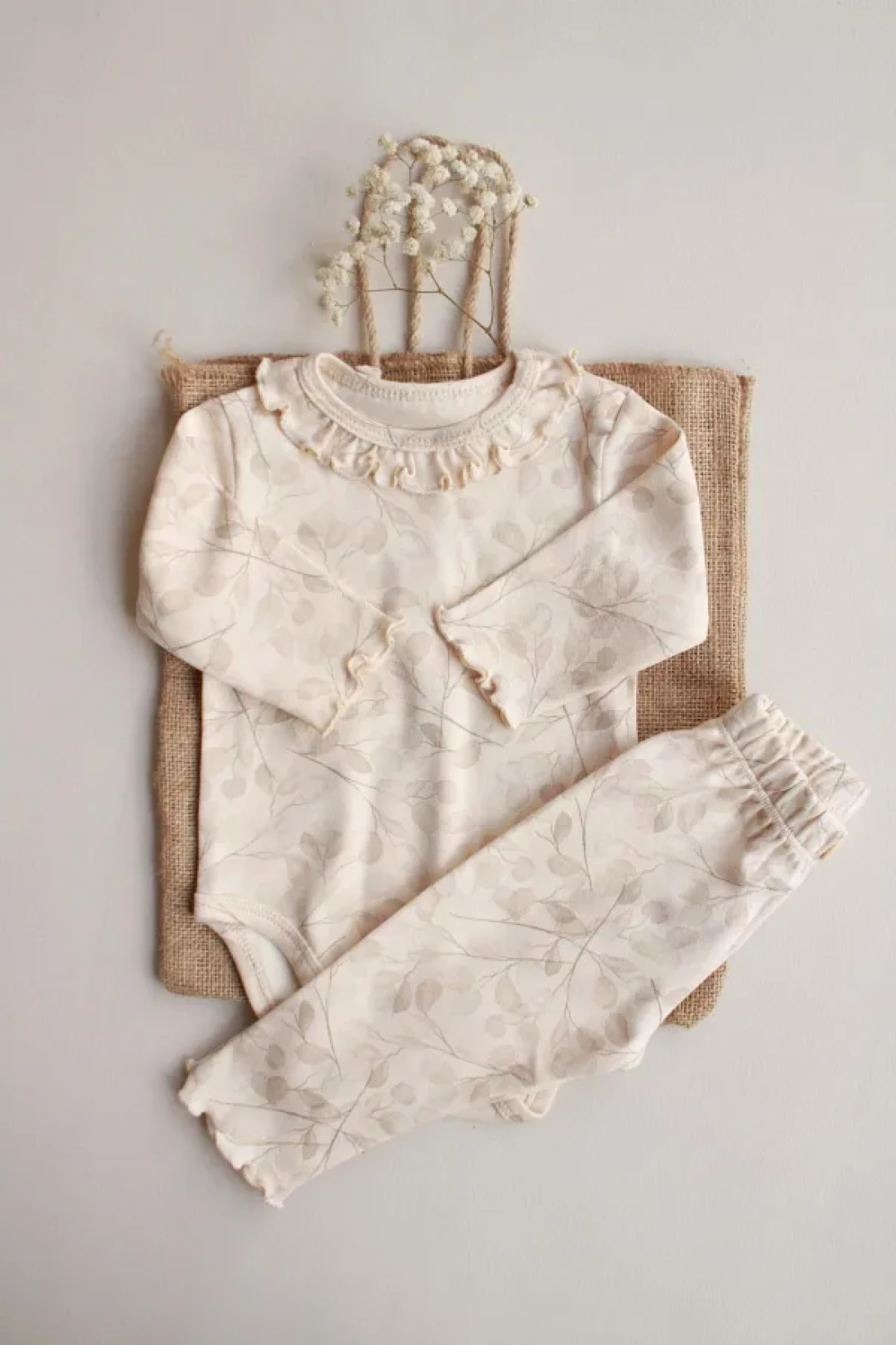 OhlalaKoala طقم لباس ضيق مكشكش بنمط فرع كريمي