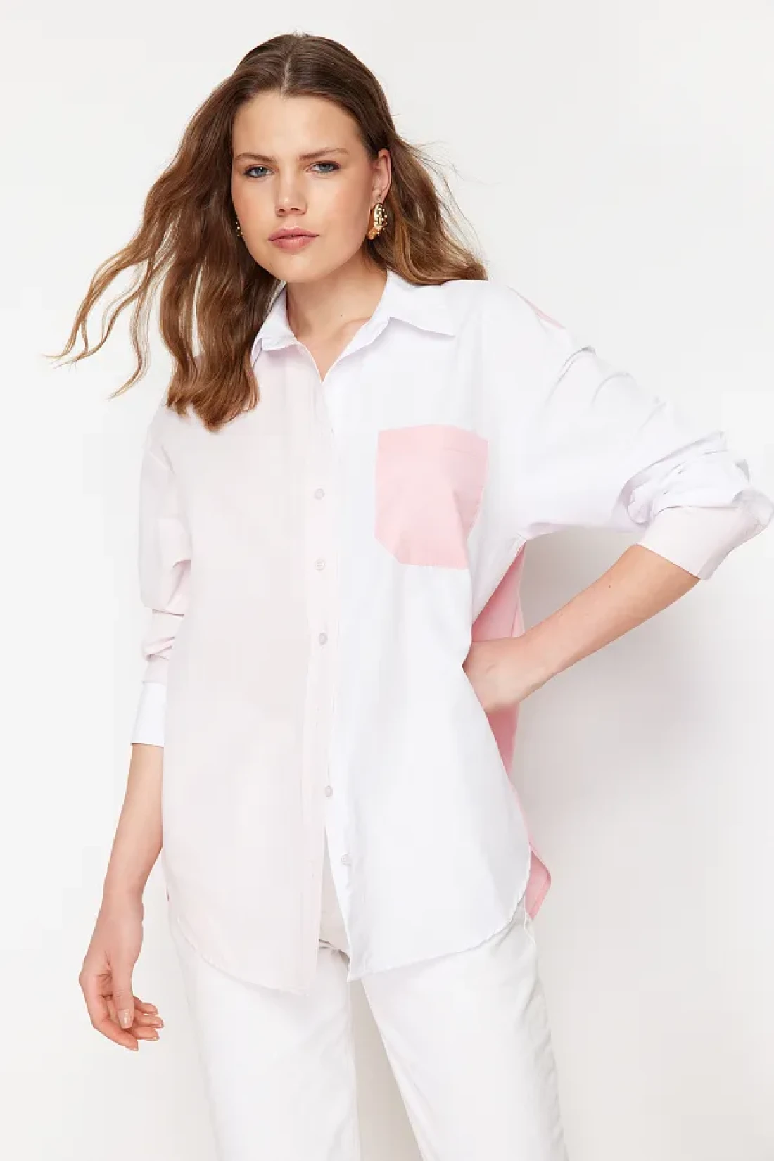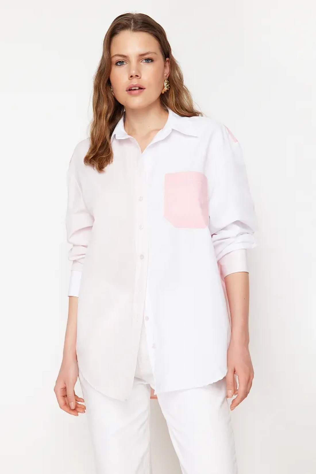 Collection قميص منسوج كبير الحجم باللون الوردي TWOSS24GO00136