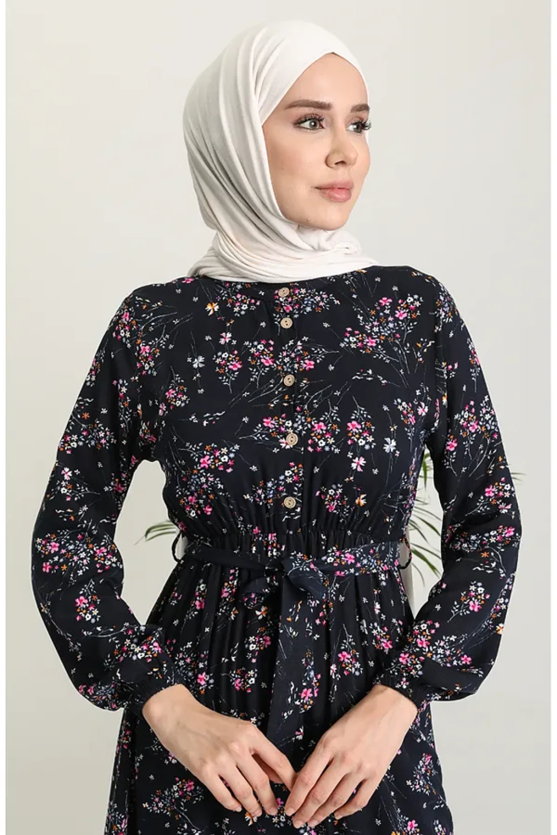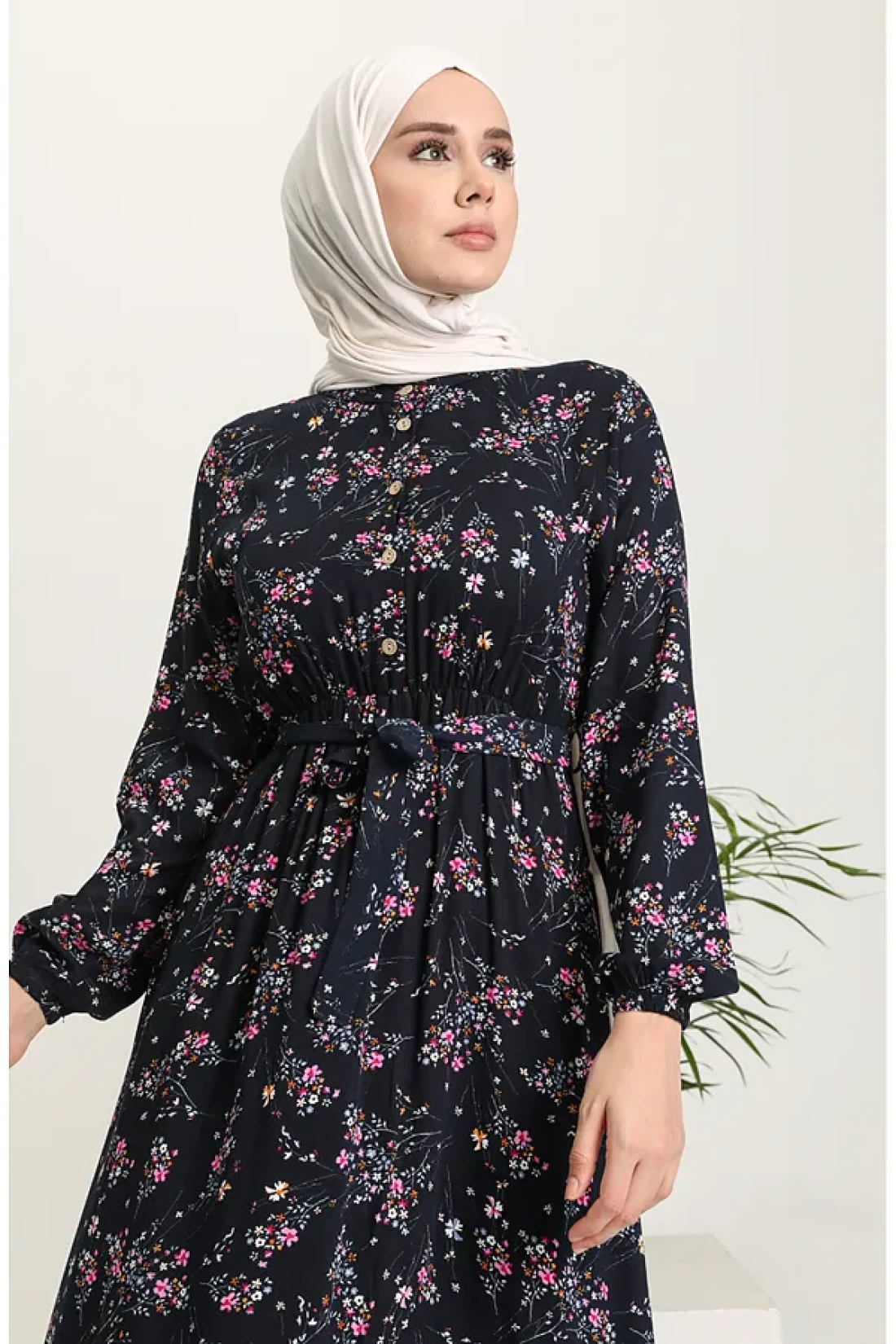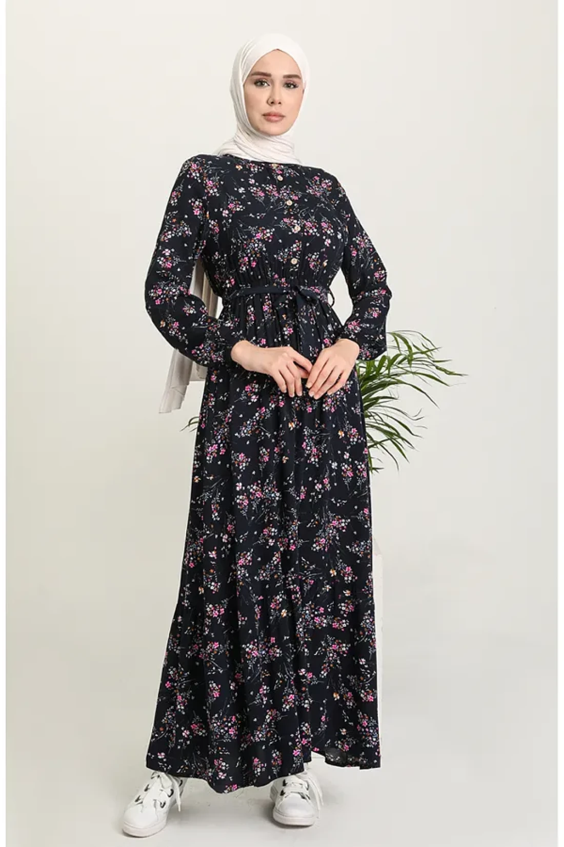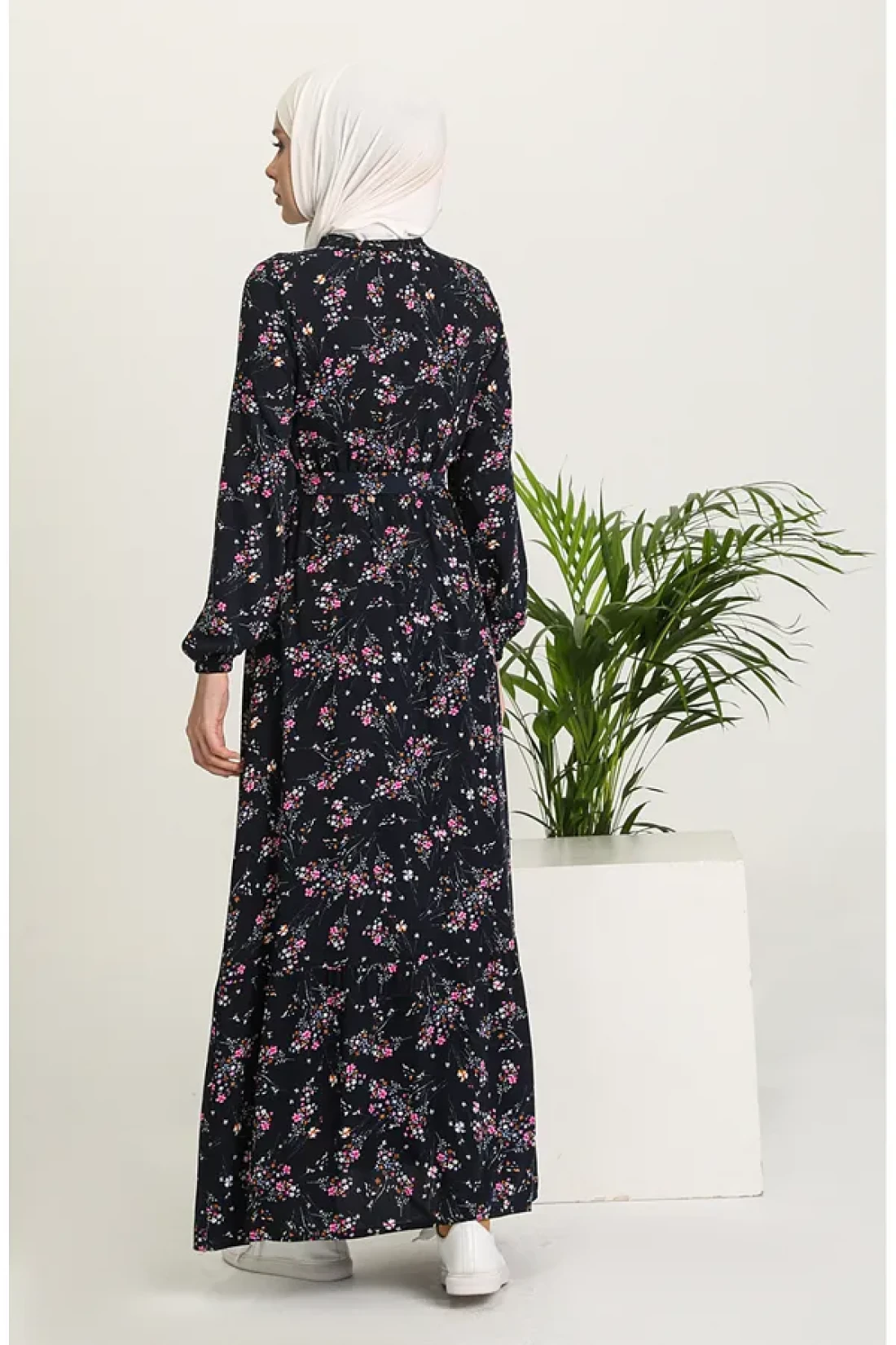 sefamerve فستان فيسكوز أزرق كحلي - نمط الأزهار 5068-04