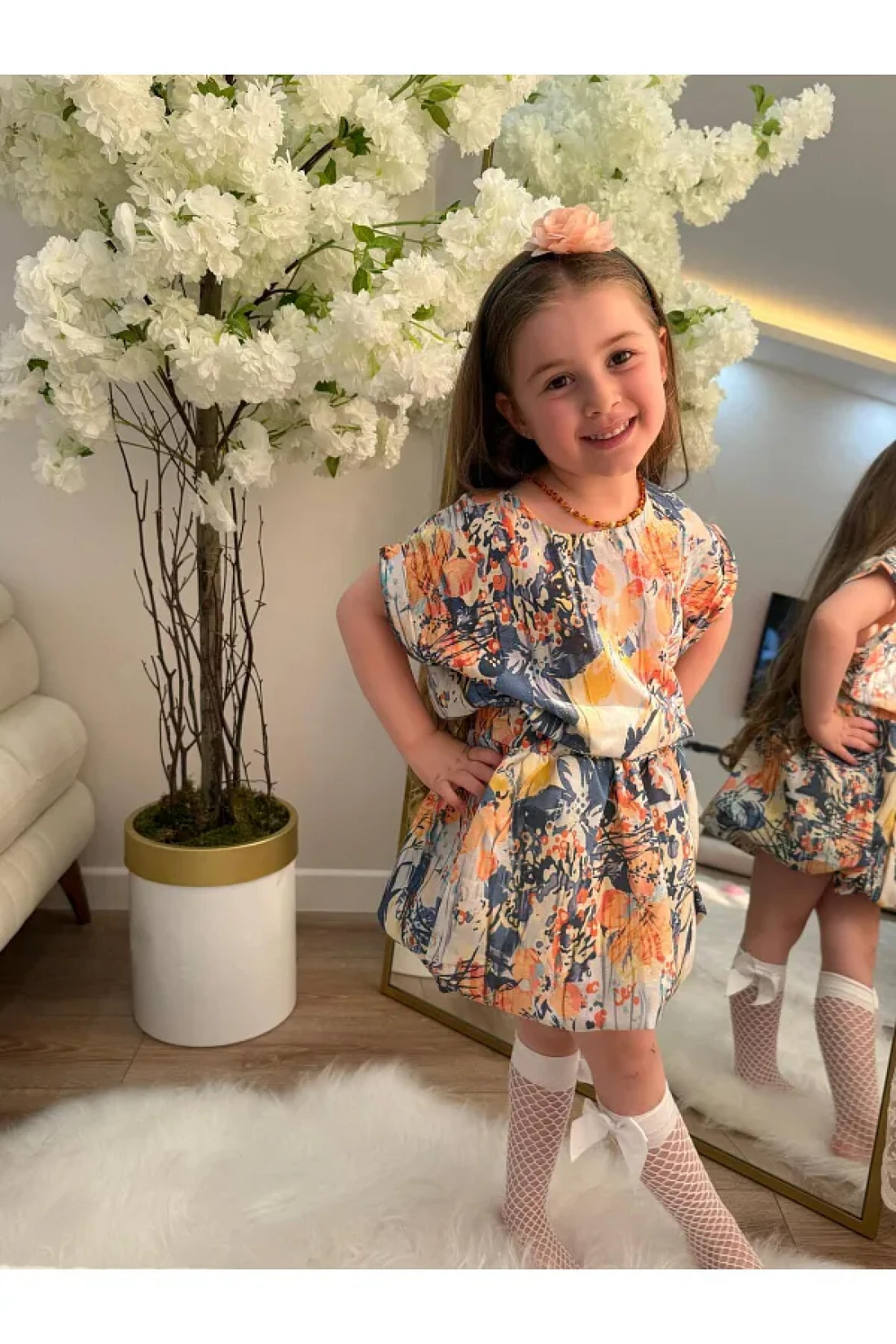 - متوفرة كمجموعة تتضمن تاجًا، هذه المجموعة تكمل أسلوب الفتاة وتمنحها طبقة إضافية من الأناقة. - نوع القماش المنسوج يزيد من المتانة، مما يتيح الاستخدام على المدى الطويل. - يعرض مظهرًا حيويًا ومبهجًا بنمطه الملون؛ يعكس الروح النابضة بالحياة لموسم الصيف. - يتم تحقيق مظهر أنيق ومتناسق مع مجموعة البلوزة والتنورة المصممة كمجموعة من الأسفل إلى الأعلى.