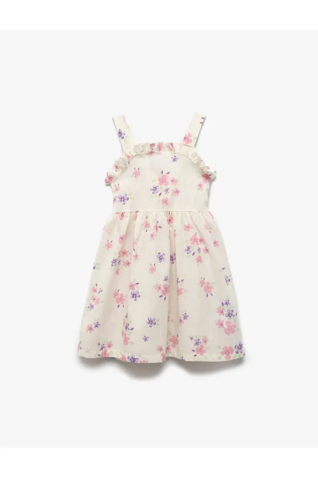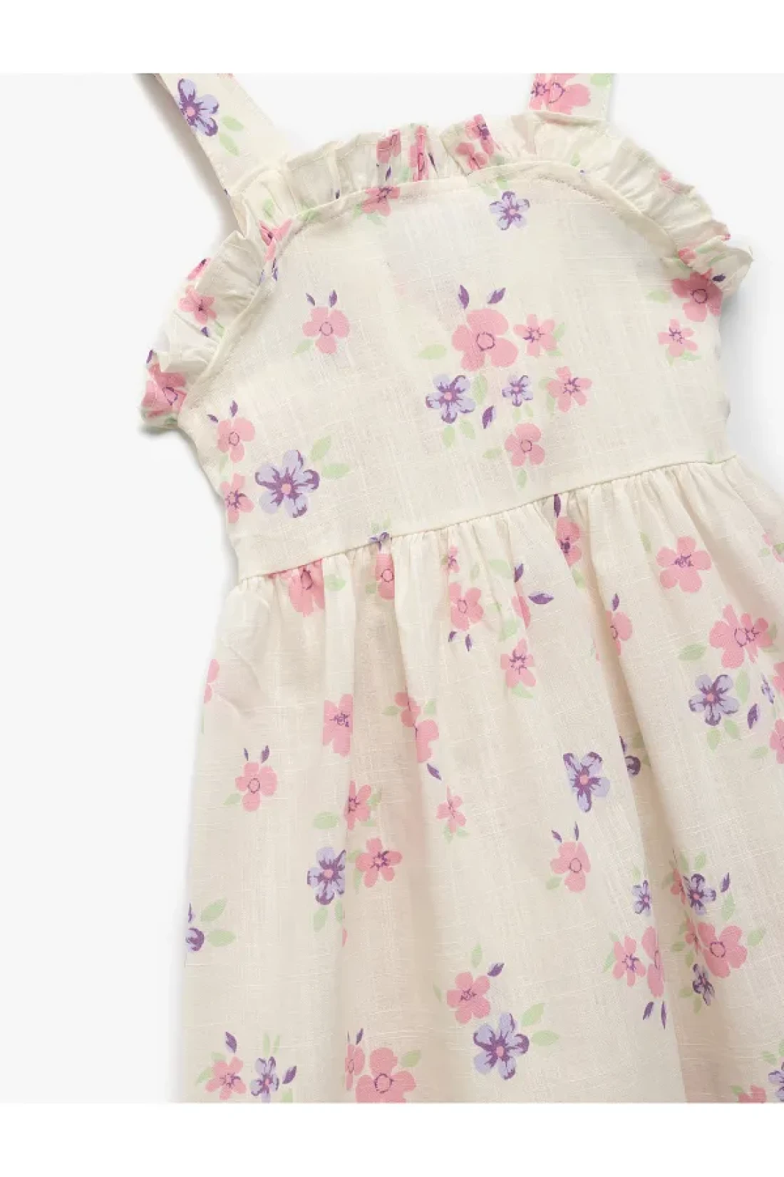 فستان من القطن بياقة مربعة وكشكشة وتفاصيل مكشكشة ونمط زهرة.
