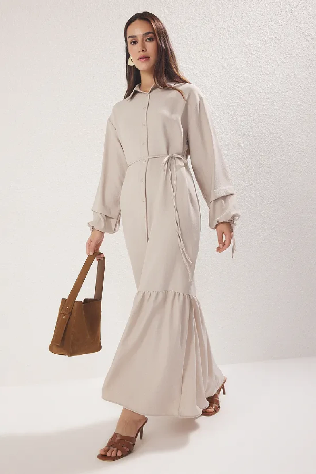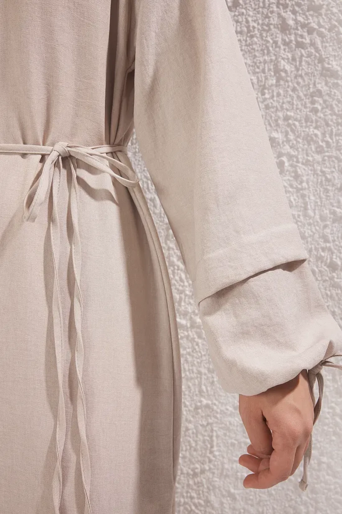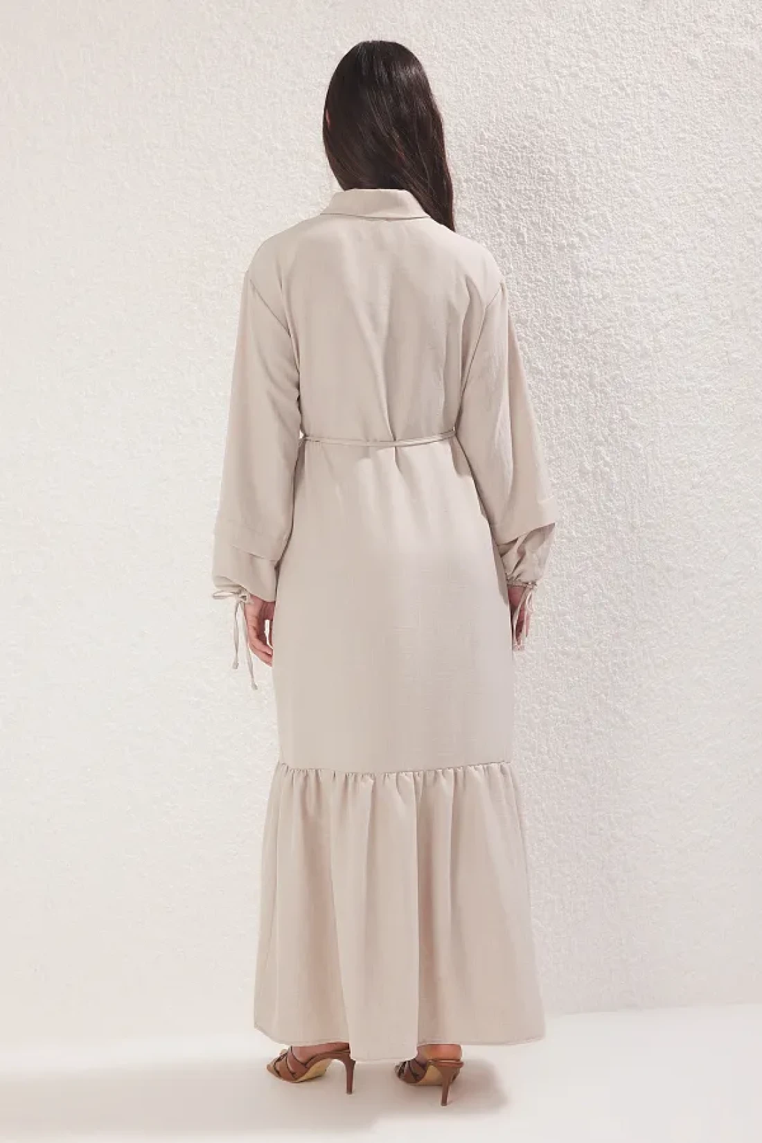 Modest فستان حجاب من الكتان المنسوج بدون بطانة مع حزام حجري TCTSS25EB00111