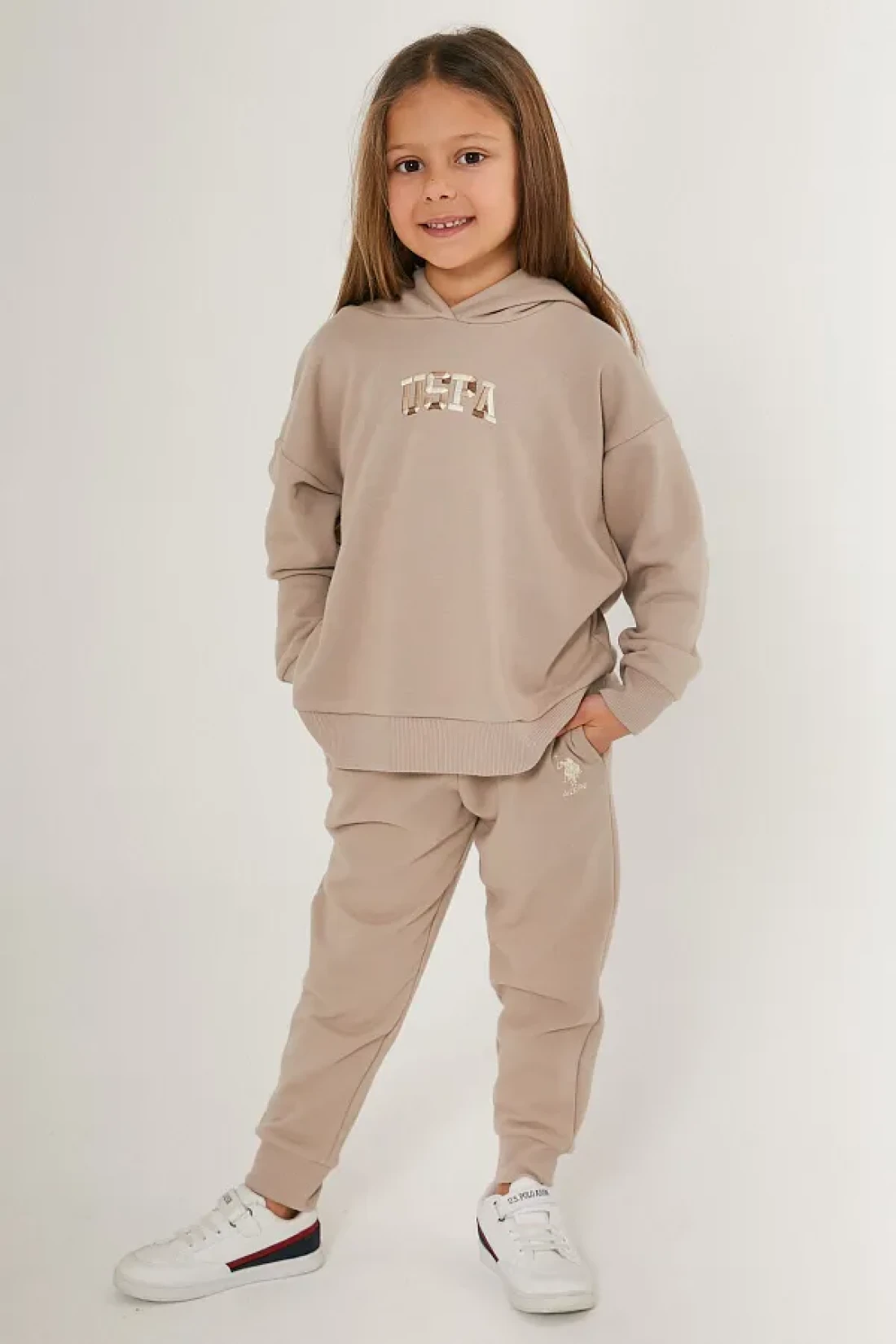 U.S. Polo Assn. بدلة رياضية كريمية للفتيات من يو اس بولو اسن