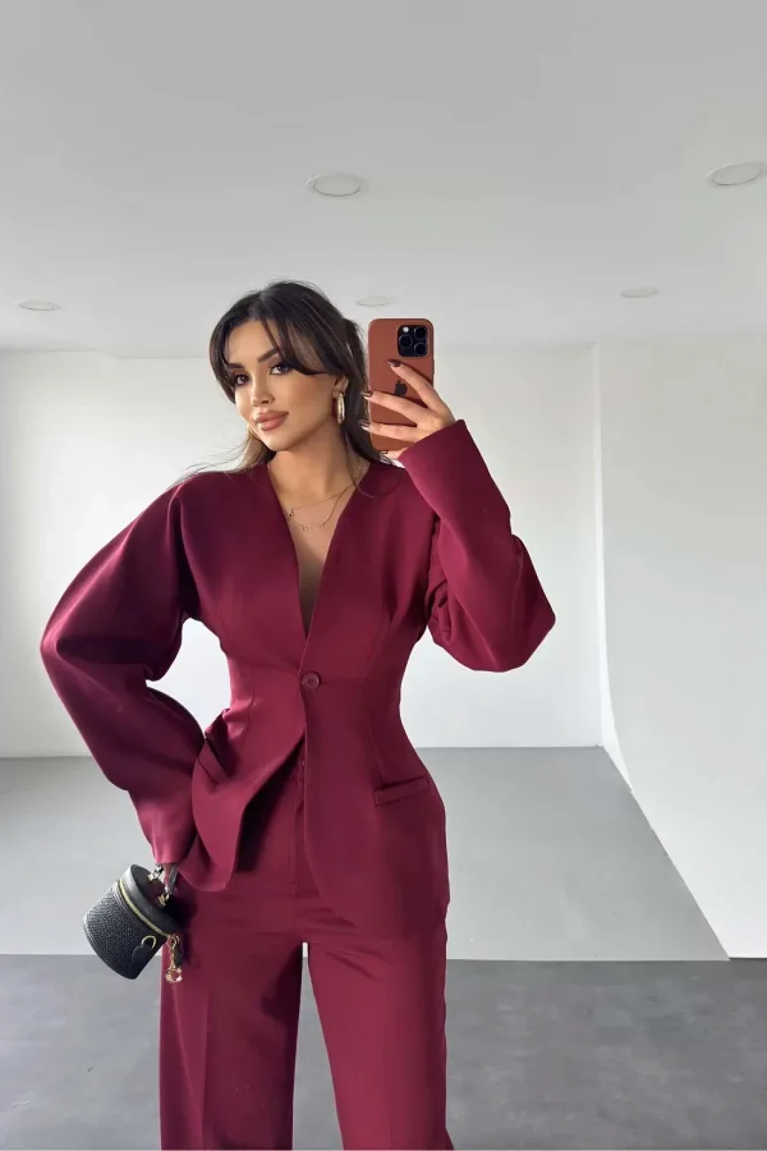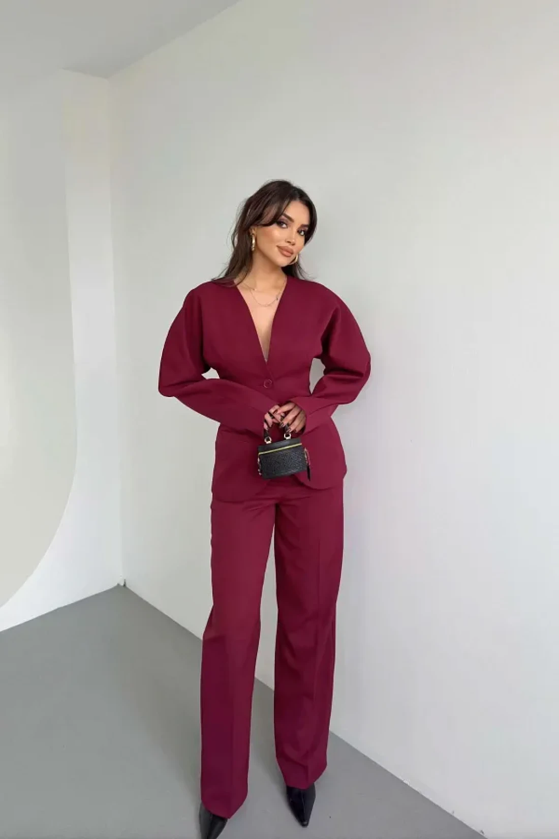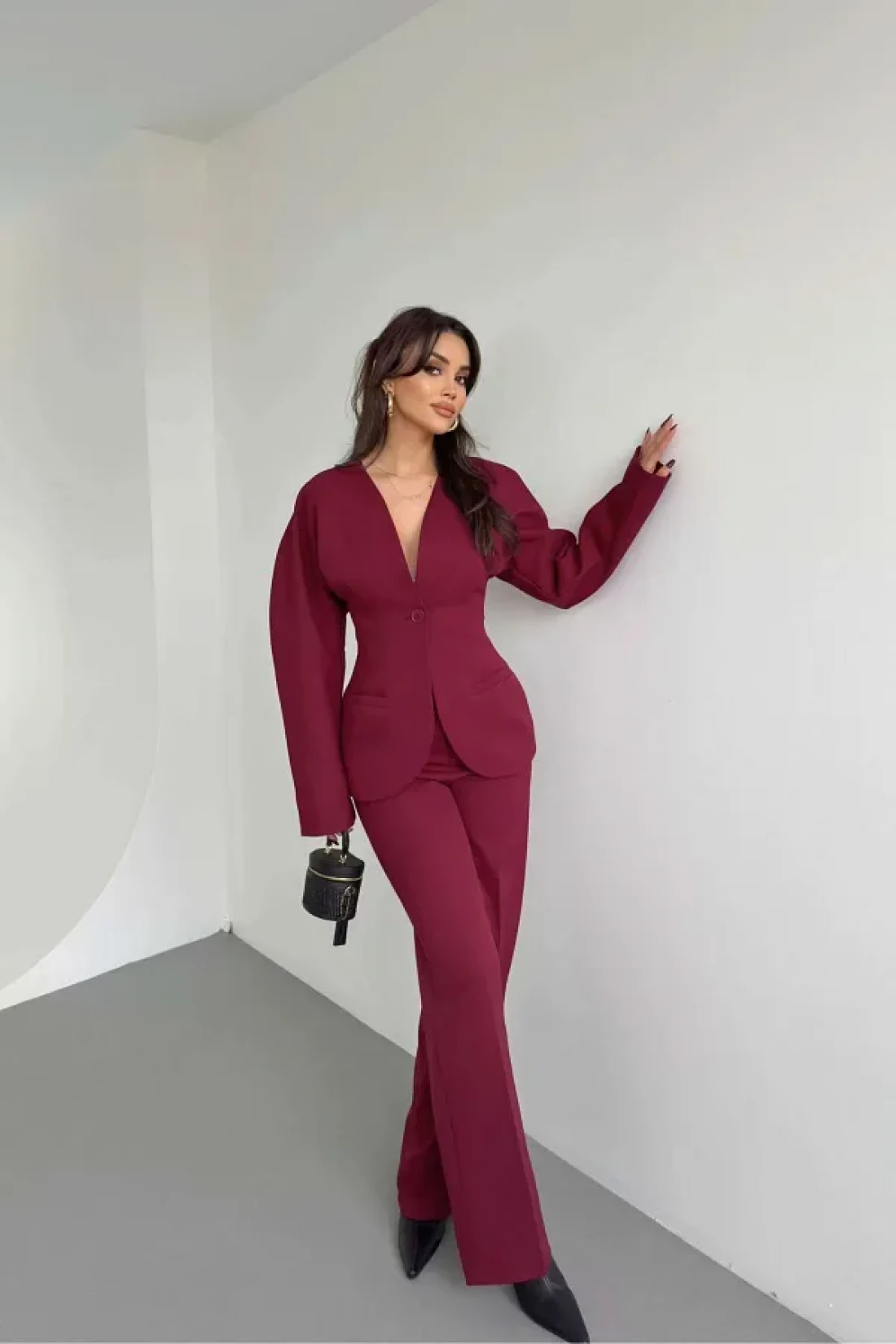 fmnbutik Pinterest - سترة ذات تصميم متوافق، بنطلون بالازو، طقم عصري أنيق