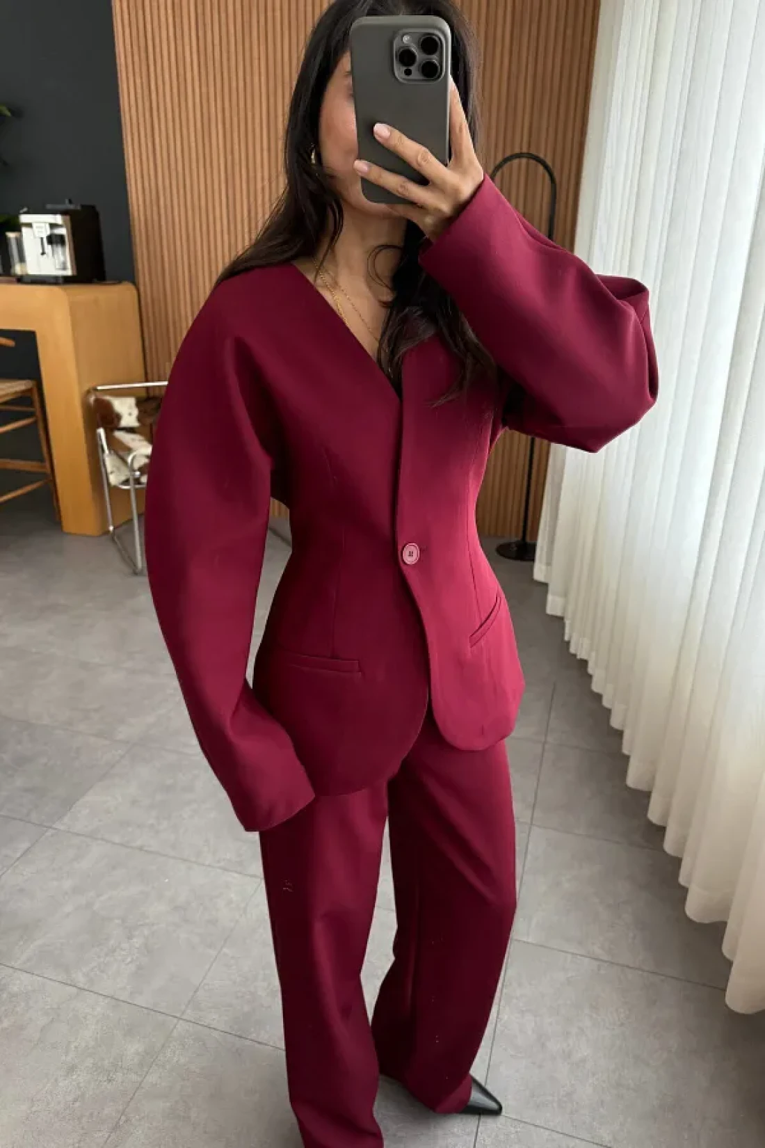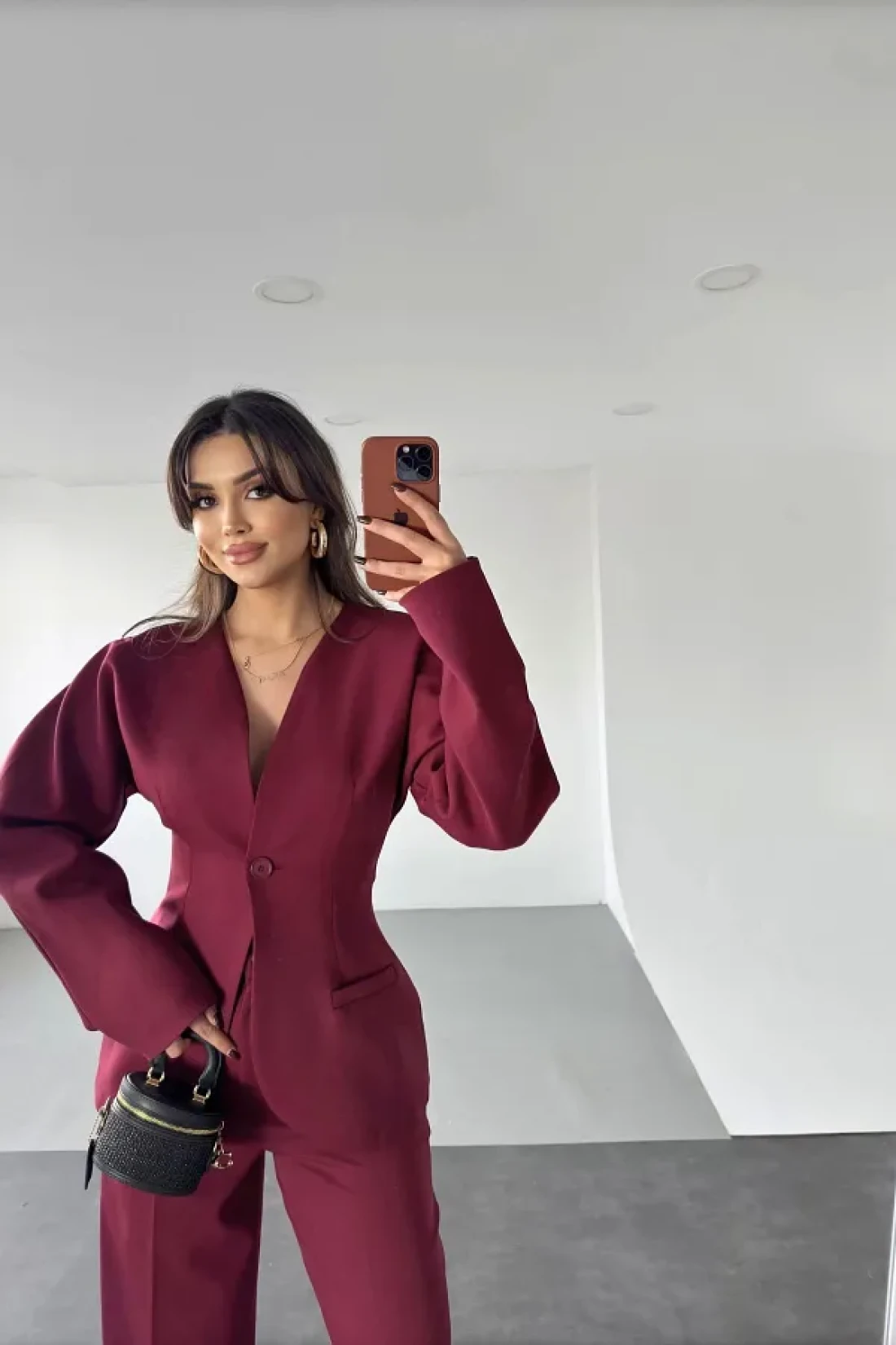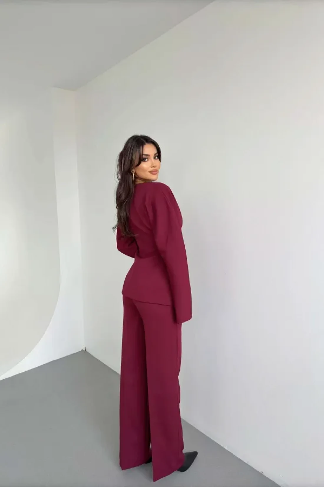 fmnbutik Pinterest - سترة ذات تصميم متوافق، بنطلون بالازو، طقم عصري أنيق