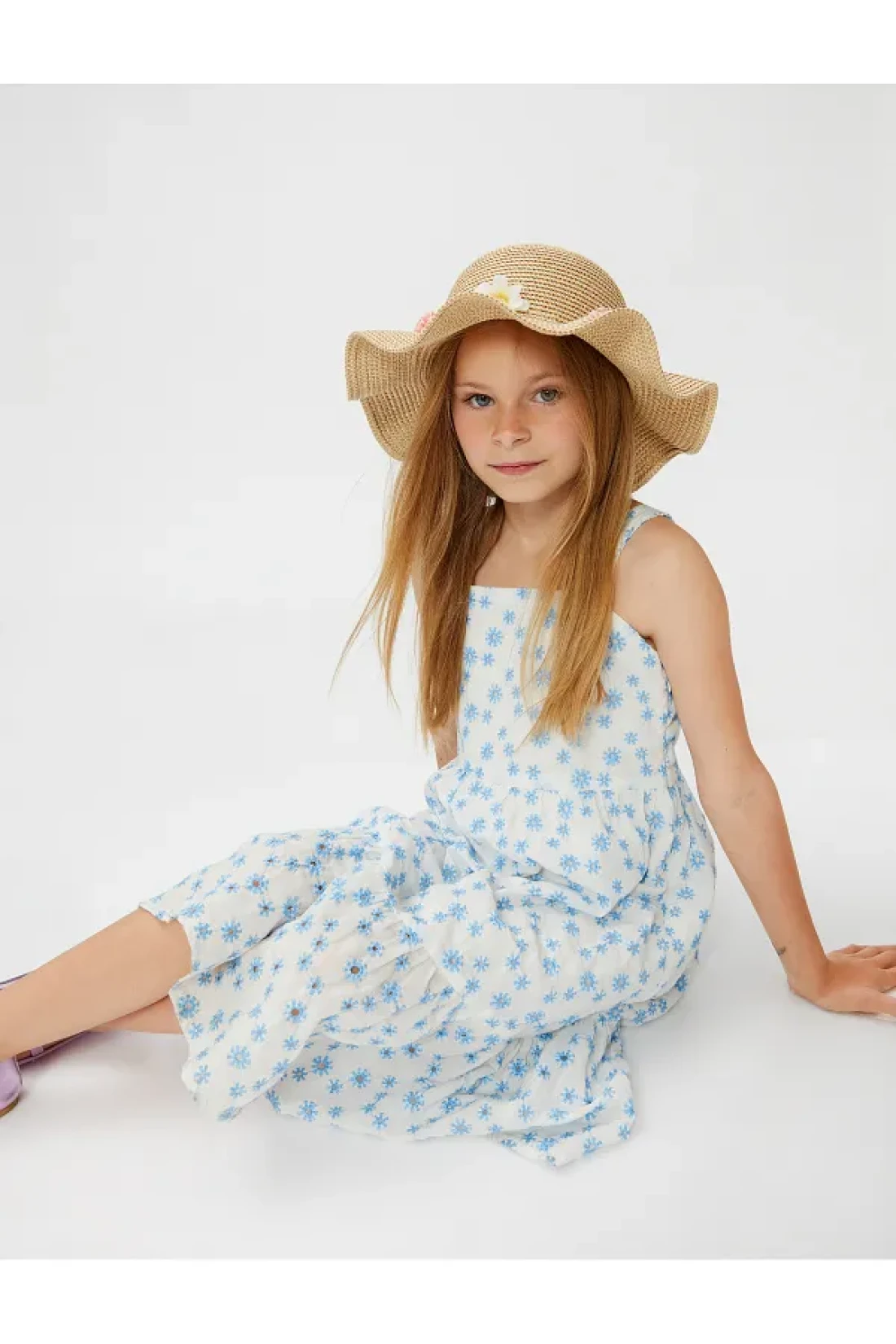 Koton فستان مبطن بالقطن مزين بالزهور بأشرطة سميكة