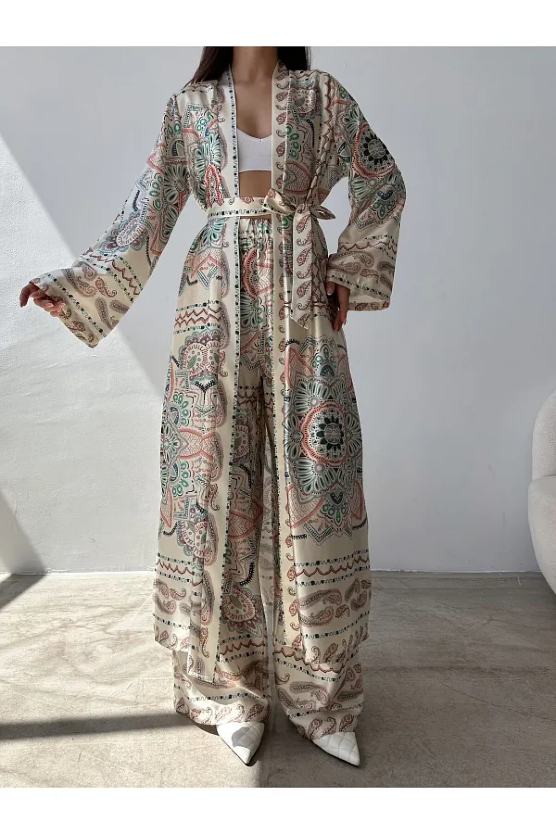 - هذا الفستان الذي يجذب الانتباه بتصميمه الأنيق لا غنى عنه في أشهر الصيف؛ - يوفر الأناقة والراحة في آن واحد بأكمامه الطويلة وياقته القائمة؛ - يوفر ارتداء خفيف ومريح بفضل هيكله غير المبطن؛ - يعطي مظهرًا حيويًا وعصريًا بنقشته الملونة؛ - يضفي الحزام تفاصيل أنثوية من خلال إبراز منطقة الخصر؛ - بفضل قماشه المطاطي يسمح لكِ بالحركة المريحة طوال اليوم.- يضفي لمعاناً راقياً وإحساساً بالفخامة مع نسجه الساتان؛ - تصميمه بدون جيوب يعبر عن أسلوب عصري وبسيط؛ - يمكن دمجه بسهولة مع لونه البيج ويتكيف مع أي بيئة؛ - مصنوع من خامات عالية الجودة بينما يناسب مختلف أنواع الأجسام مع خيار المقاس 36؛ - هذا الفستان الذي يمكنك اختياره بأمان تحت اسم مستورد إيسريم متاح للبيع على ترينديول.
