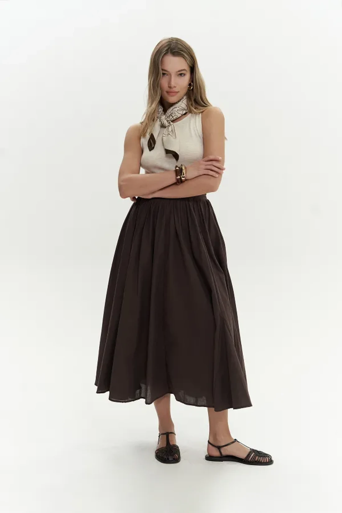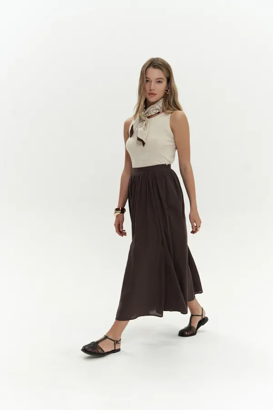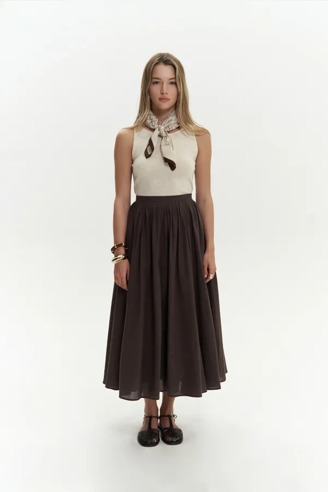 BOHEMAİ تنورة بني بطيات بطول الكاحل من أمايا