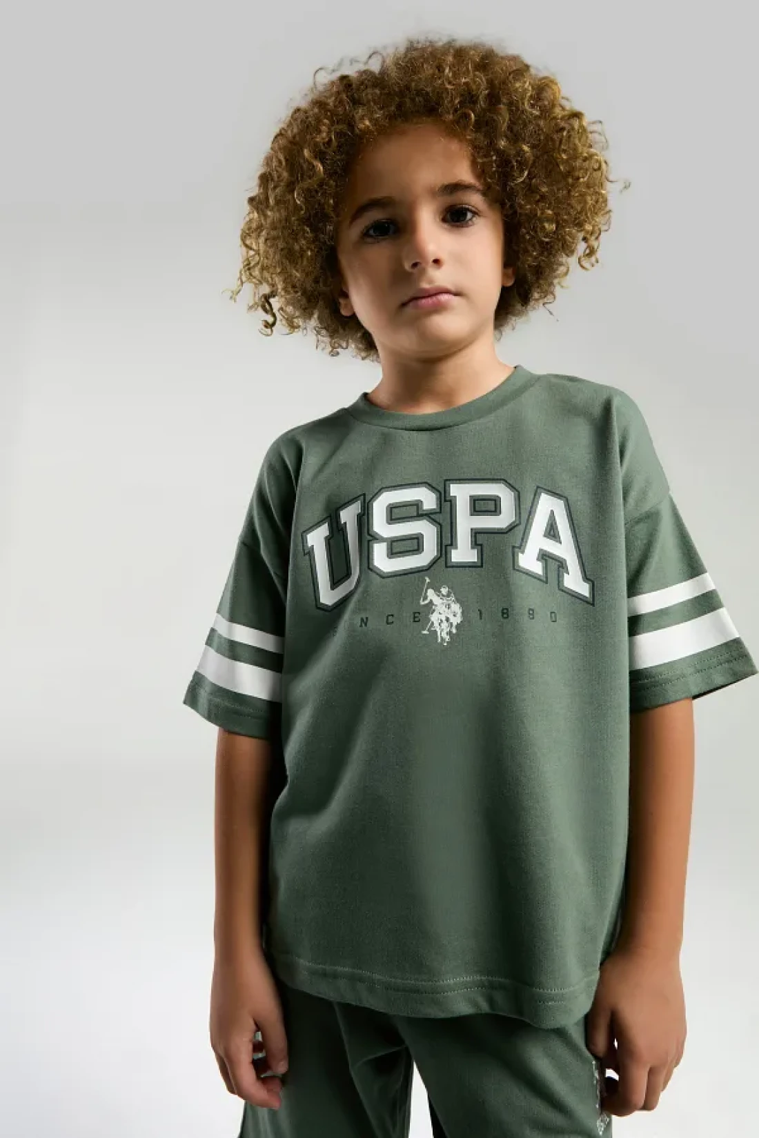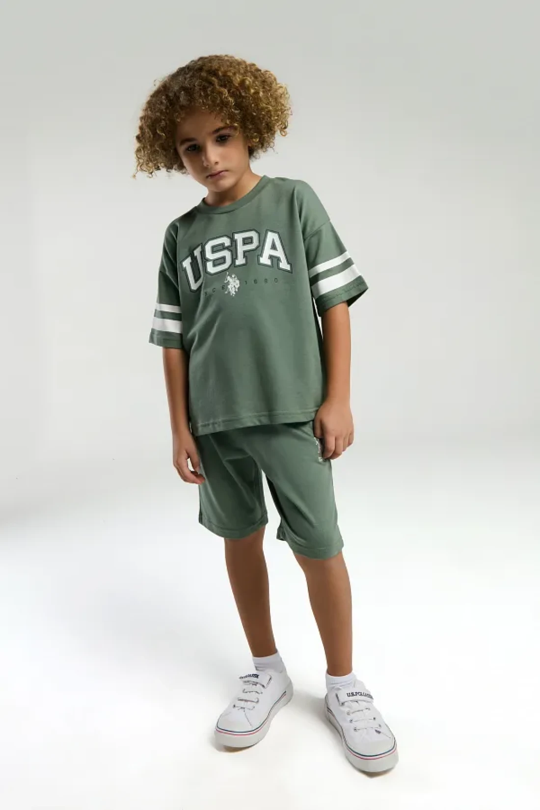 U.S. Polo Assn. بدلة برمودا كاكي للأولاد من US Polo Assn