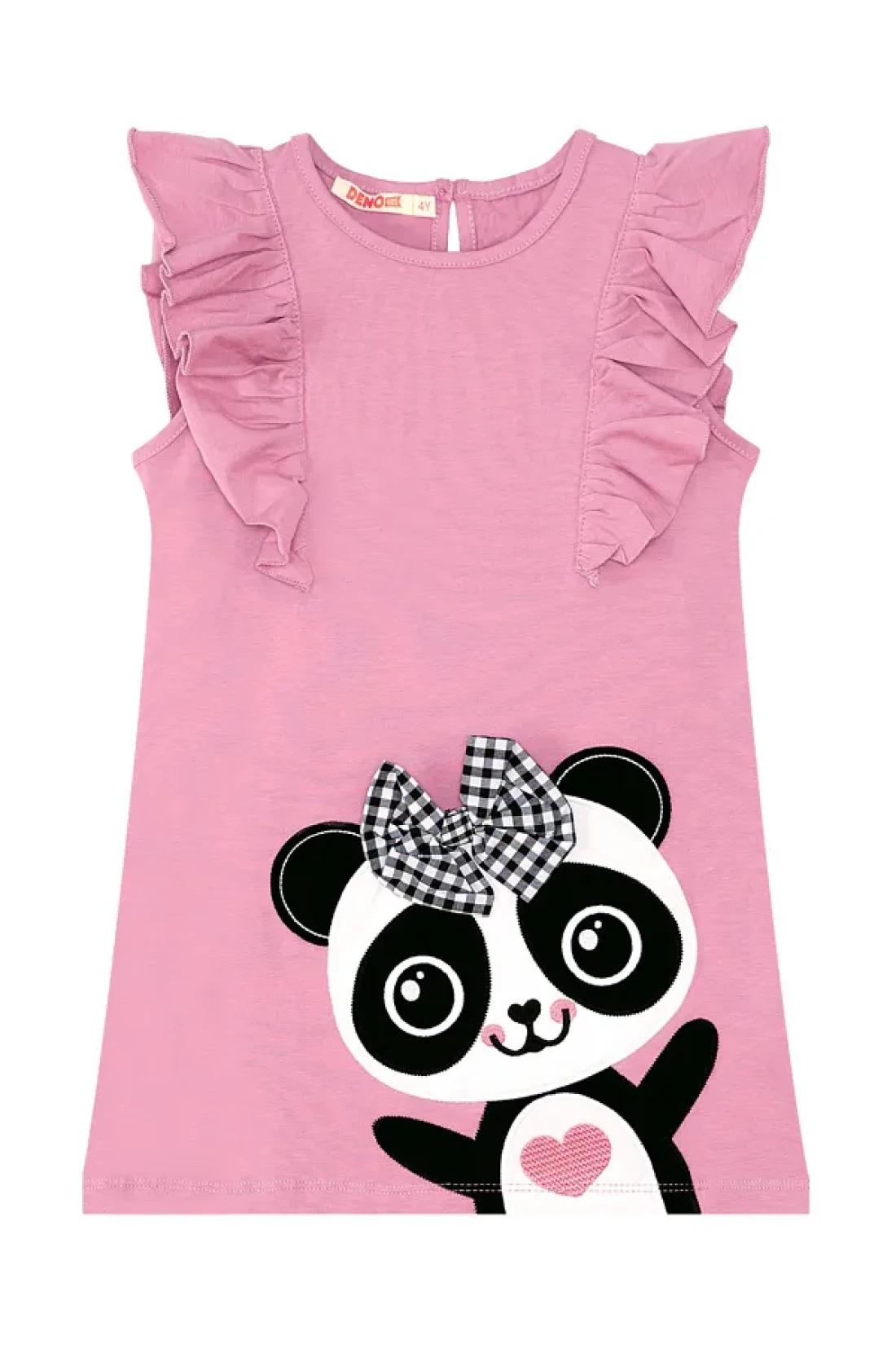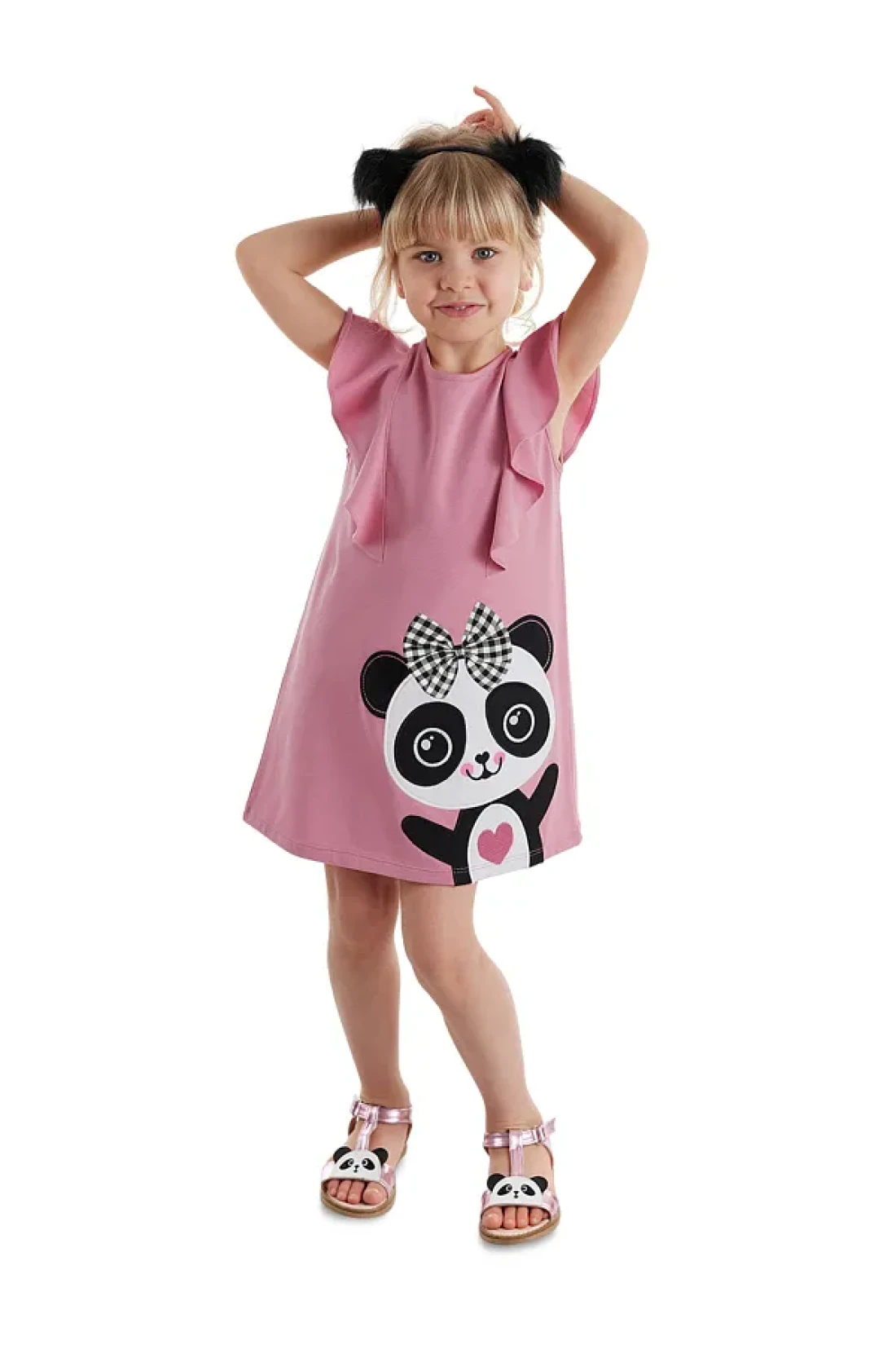 Denokids فستان صيفي بناتي وردي - تفاصيل كشكش الباندا