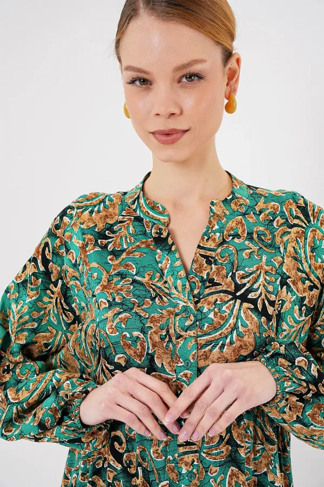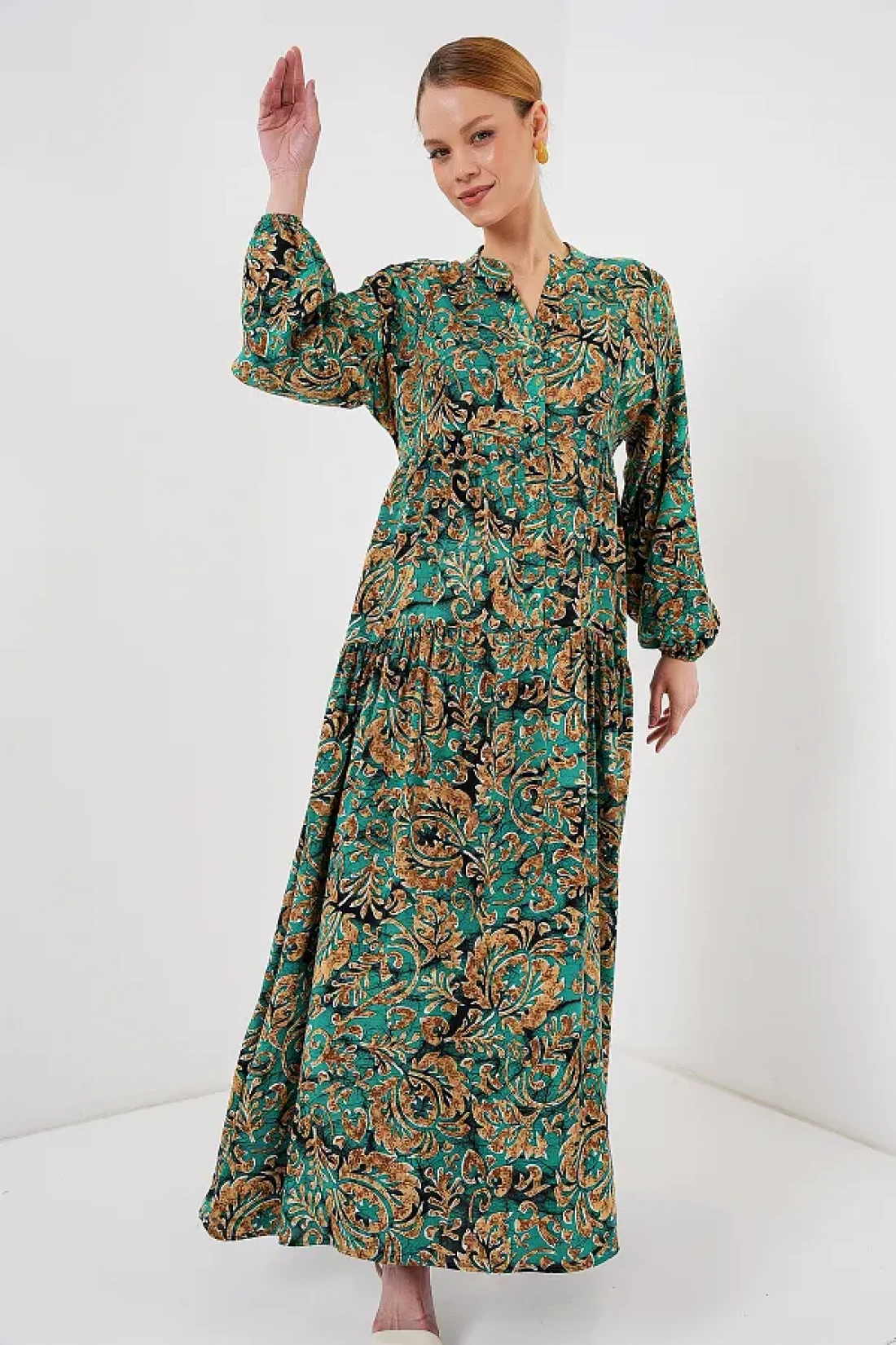 Bigdart 2423 فستان حجاب منقوش أصلي - أخضر مائي