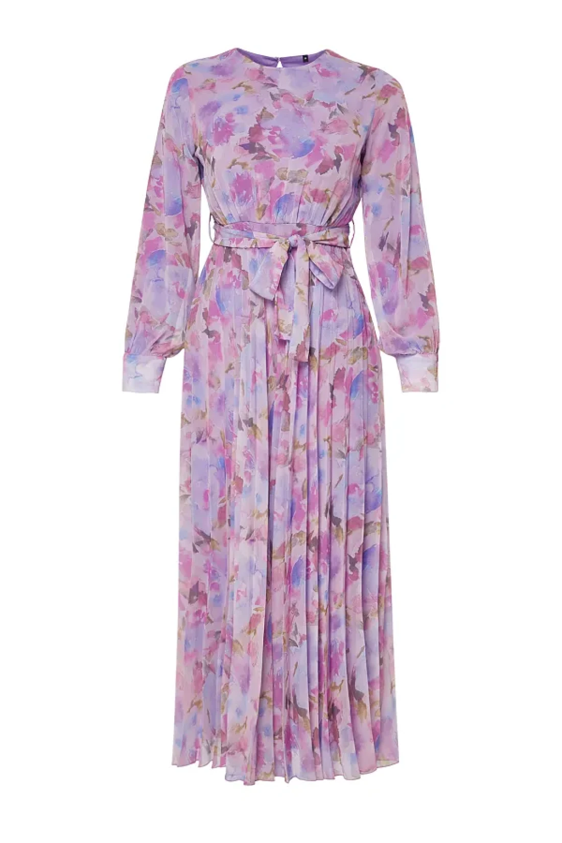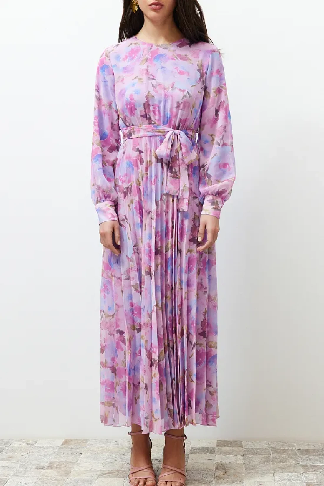 Modest فستان منسوج من الشيفون مبطن ومزين بالزهور باللون الوردي TCTSS24EB00151