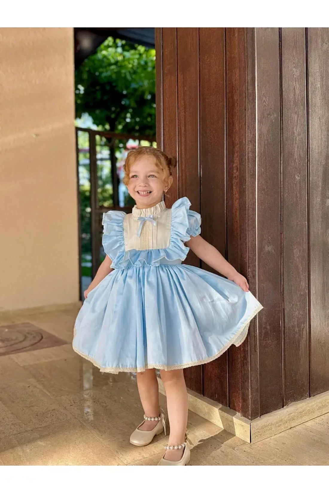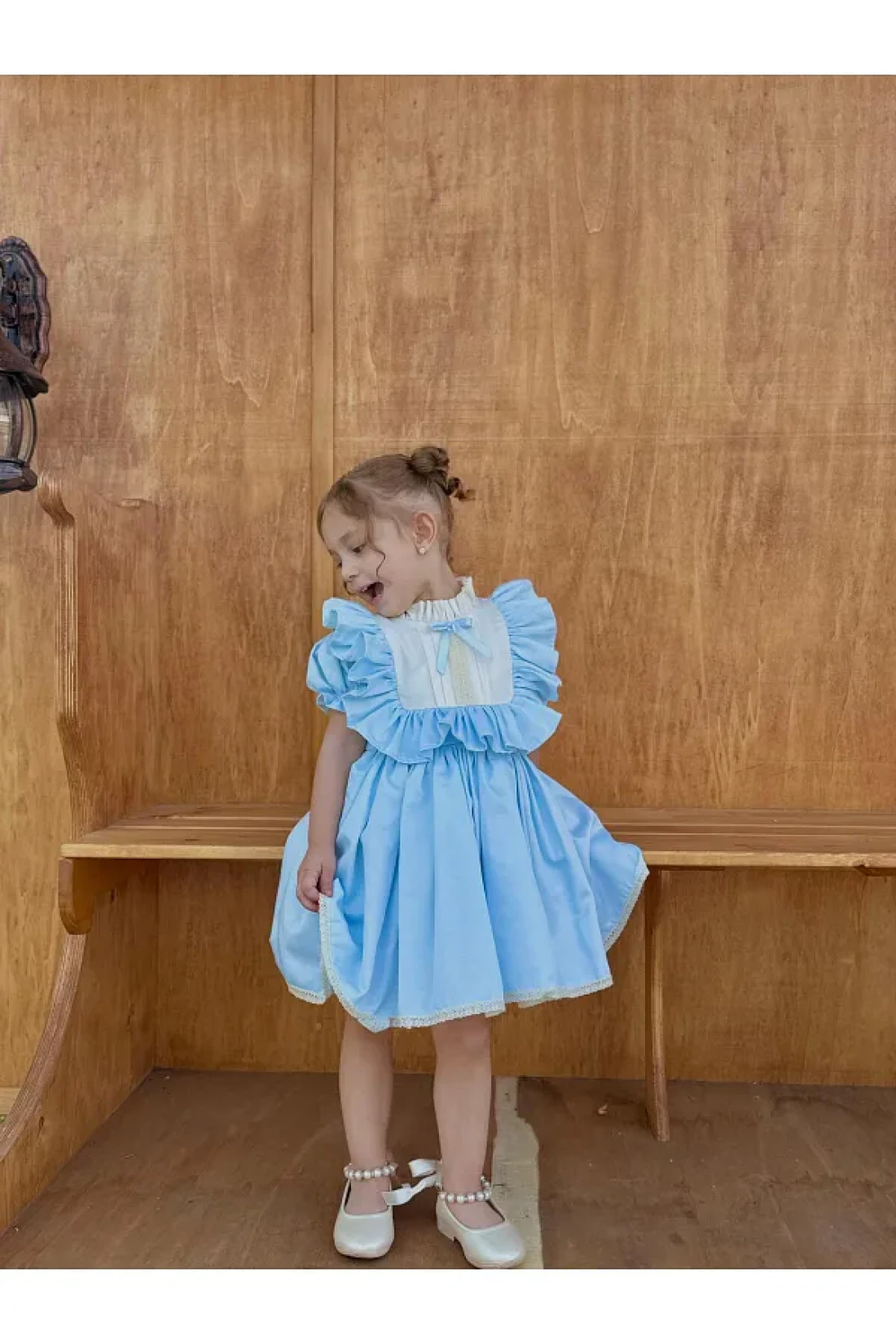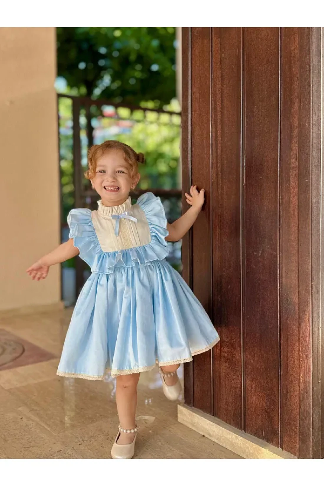 Linarookids فستان بناتي عتيق بفيونكة زرقاء من Laurel، فستان عيد ميلاد، فستان تصوير، مناسب لعمر 0-7 سنوات