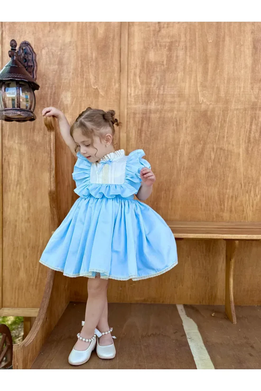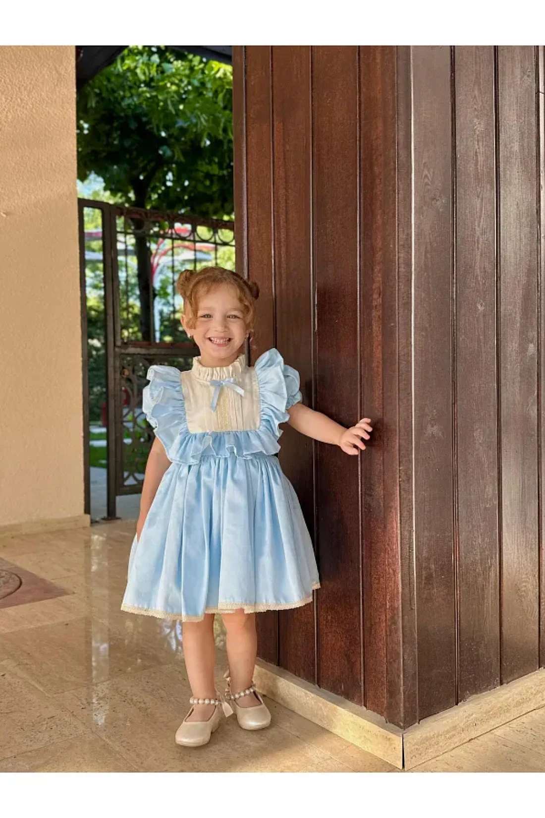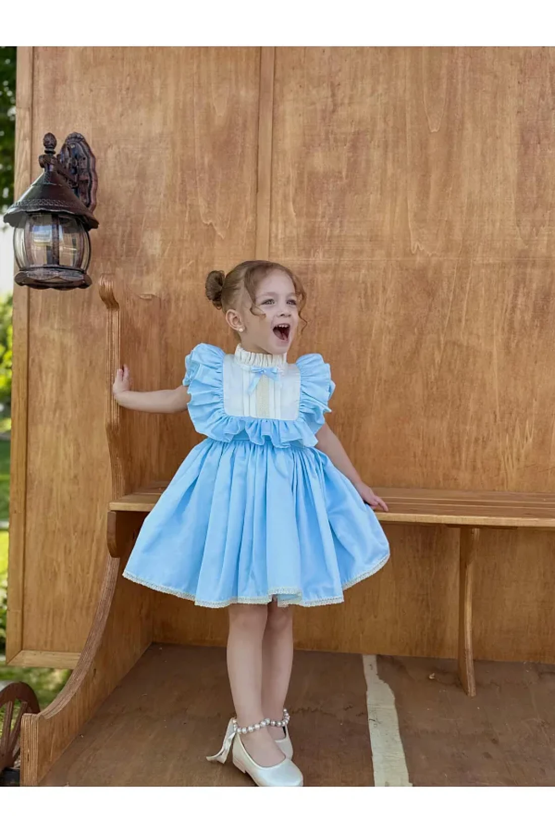 Linarookids فستان بناتي عتيق بفيونكة زرقاء من Laurel، فستان عيد ميلاد، فستان تصوير، مناسب لعمر 0-7 سنوات
