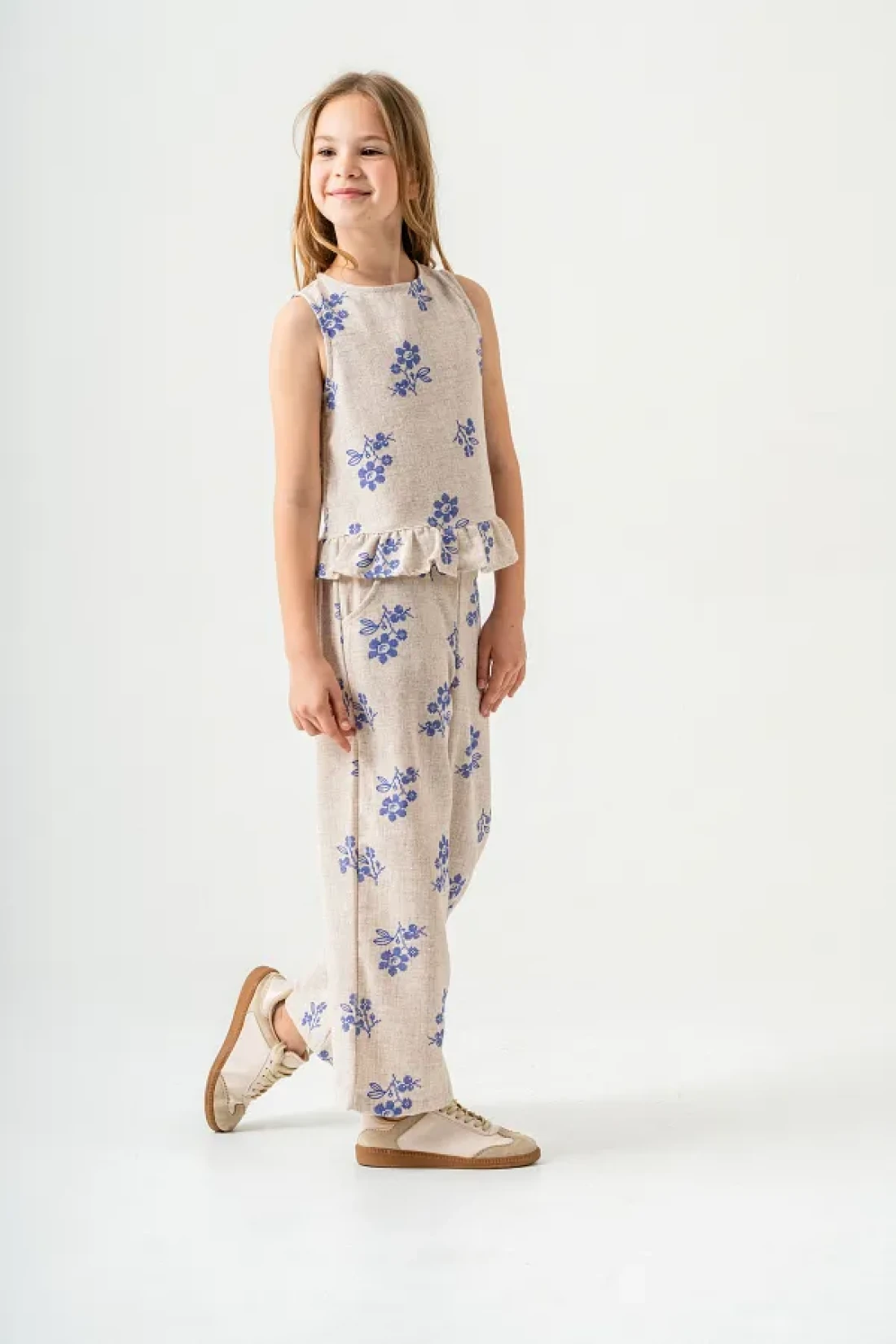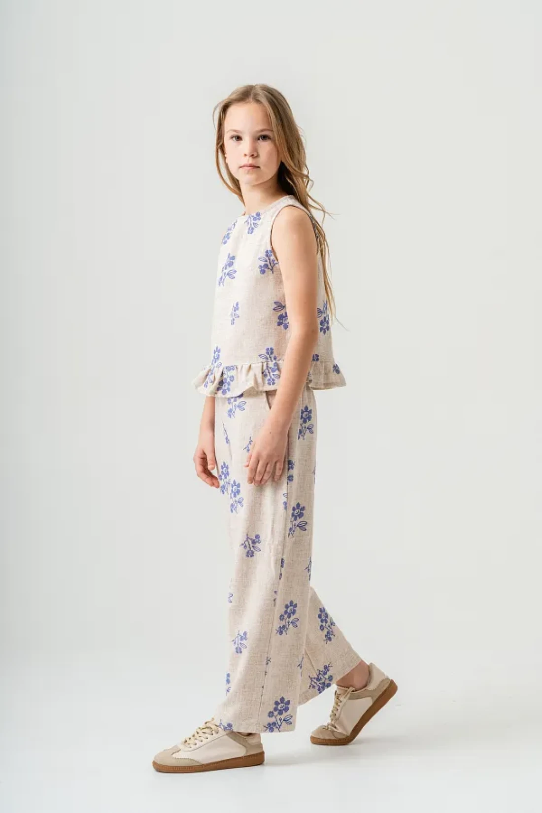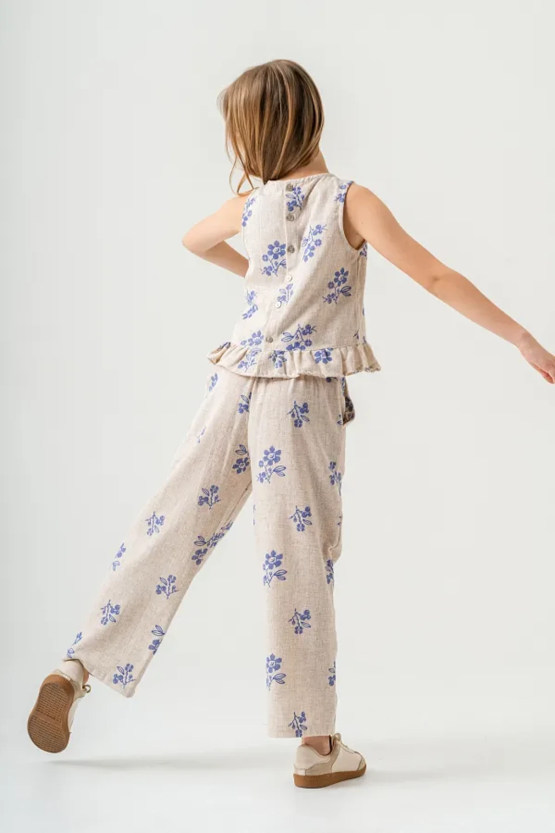 مجموعة الكتان لدينا، المصممة خصيصًا لتجعل فتياتك يشعرن بالأناقة والراحة خلال أشهر الصيف، تتميز ببنيتها الخفيفة. الجزء العلوي بدون أكمام يقدم مظهرًا مبهجًا بطبعاته الملونة.