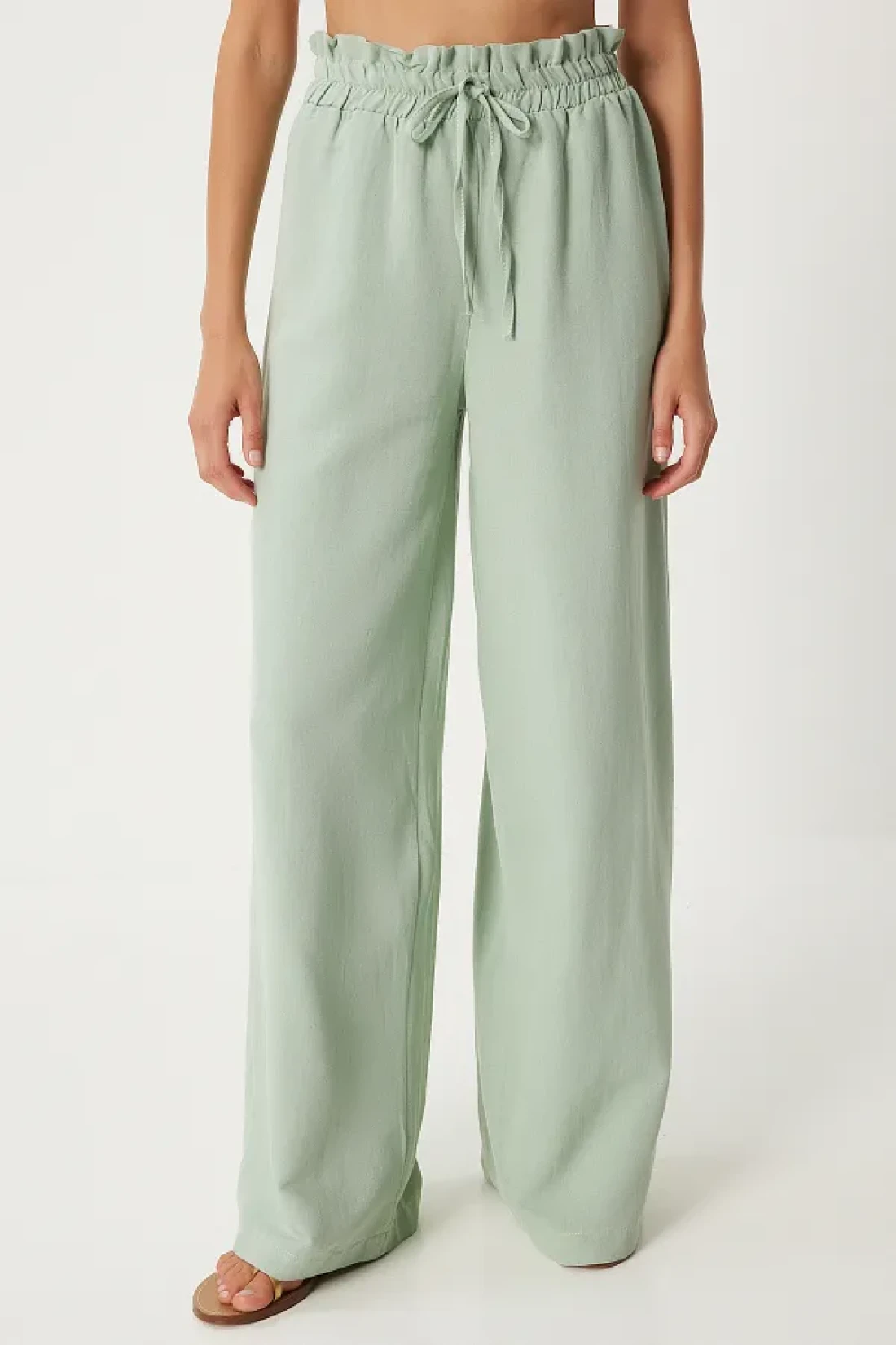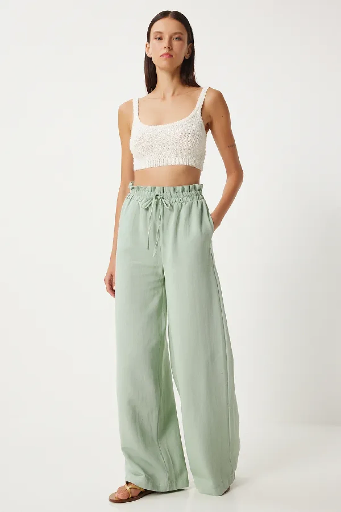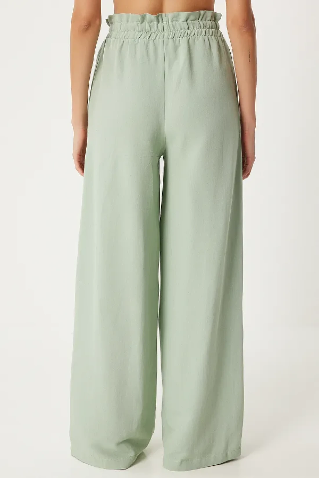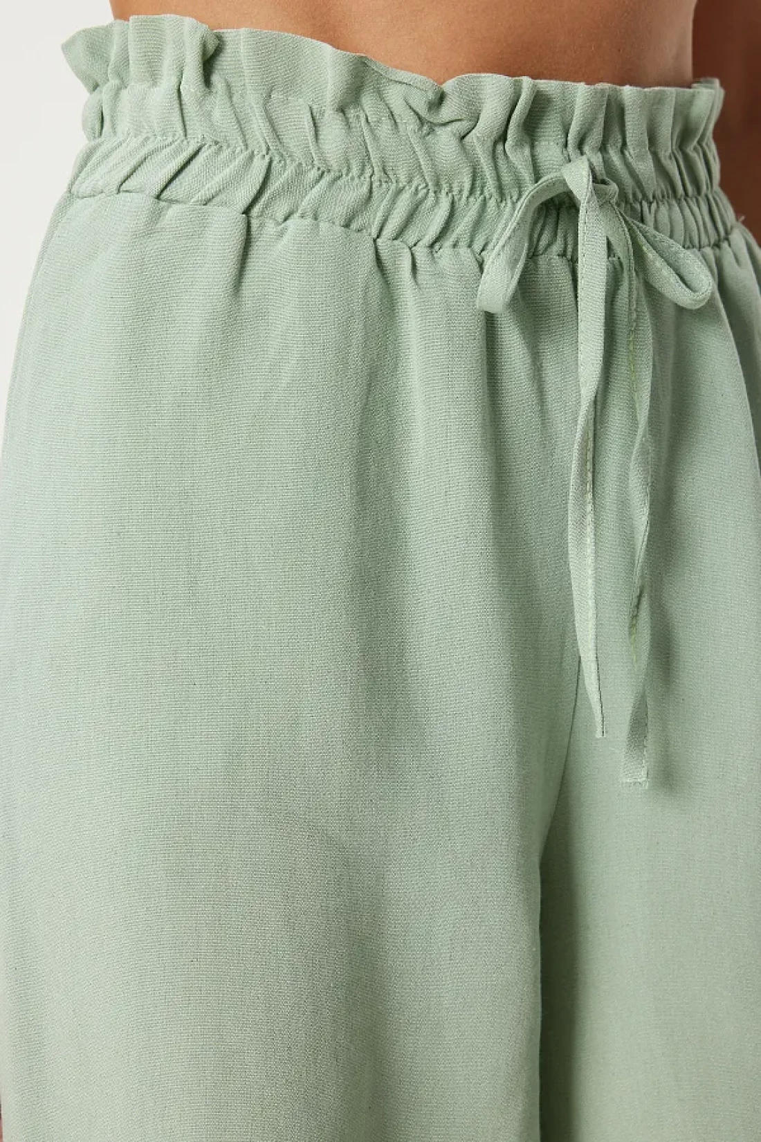 Happiness İstanbul بنطلون بالازو نسائي من الكتان الفيسكوز باللون الأخضر - FN03287