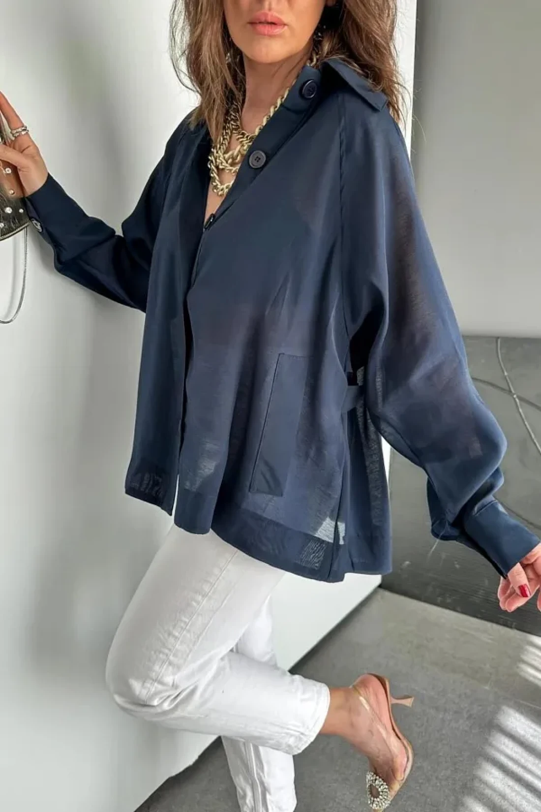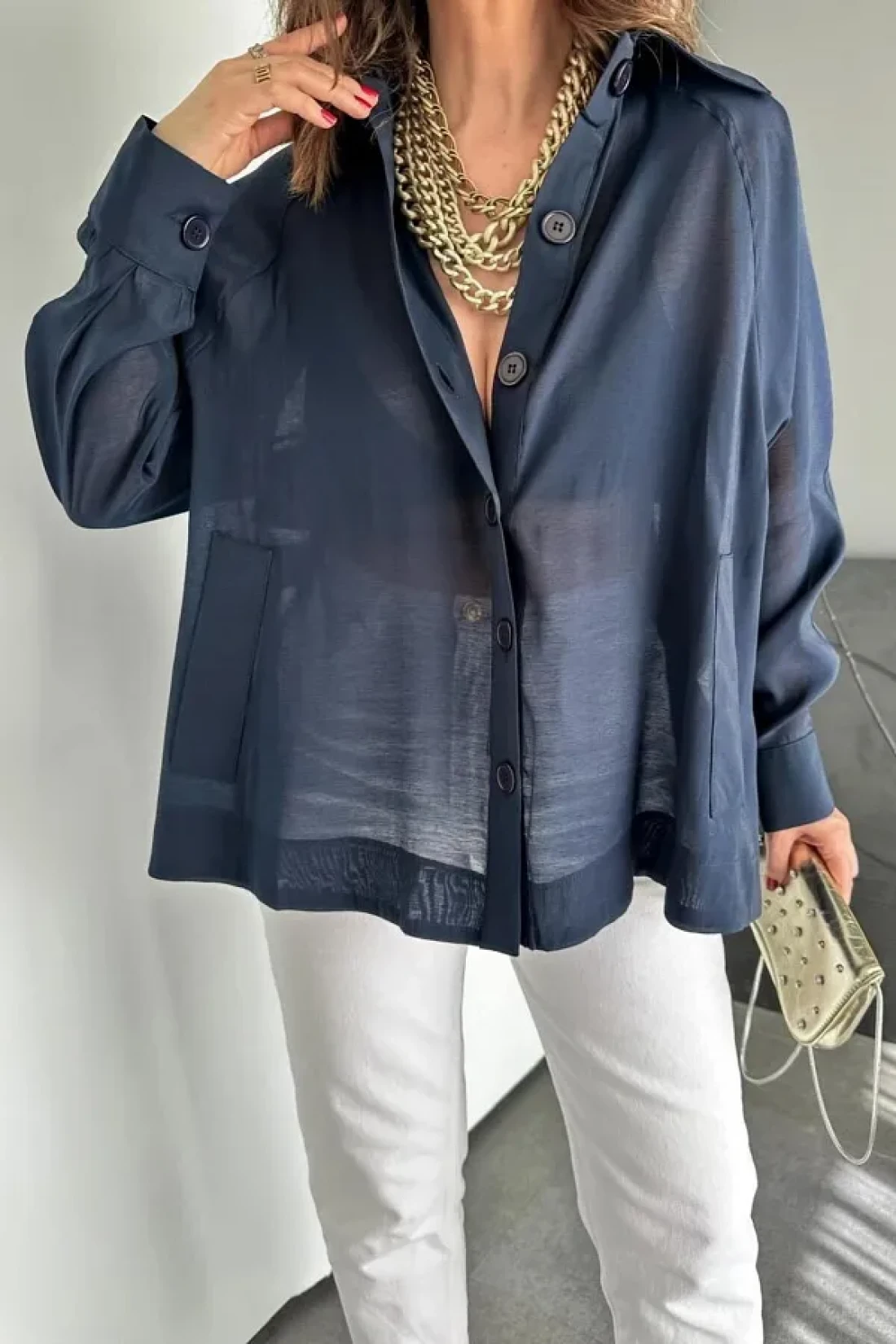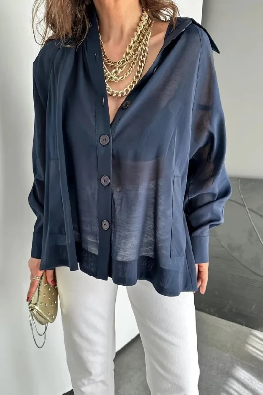 Suzi قميص بتصميم شيفون بأزرار 5002