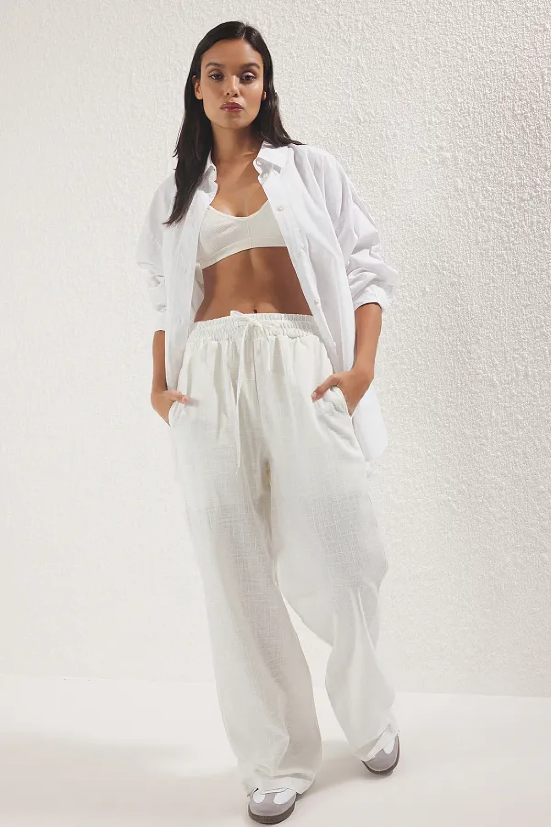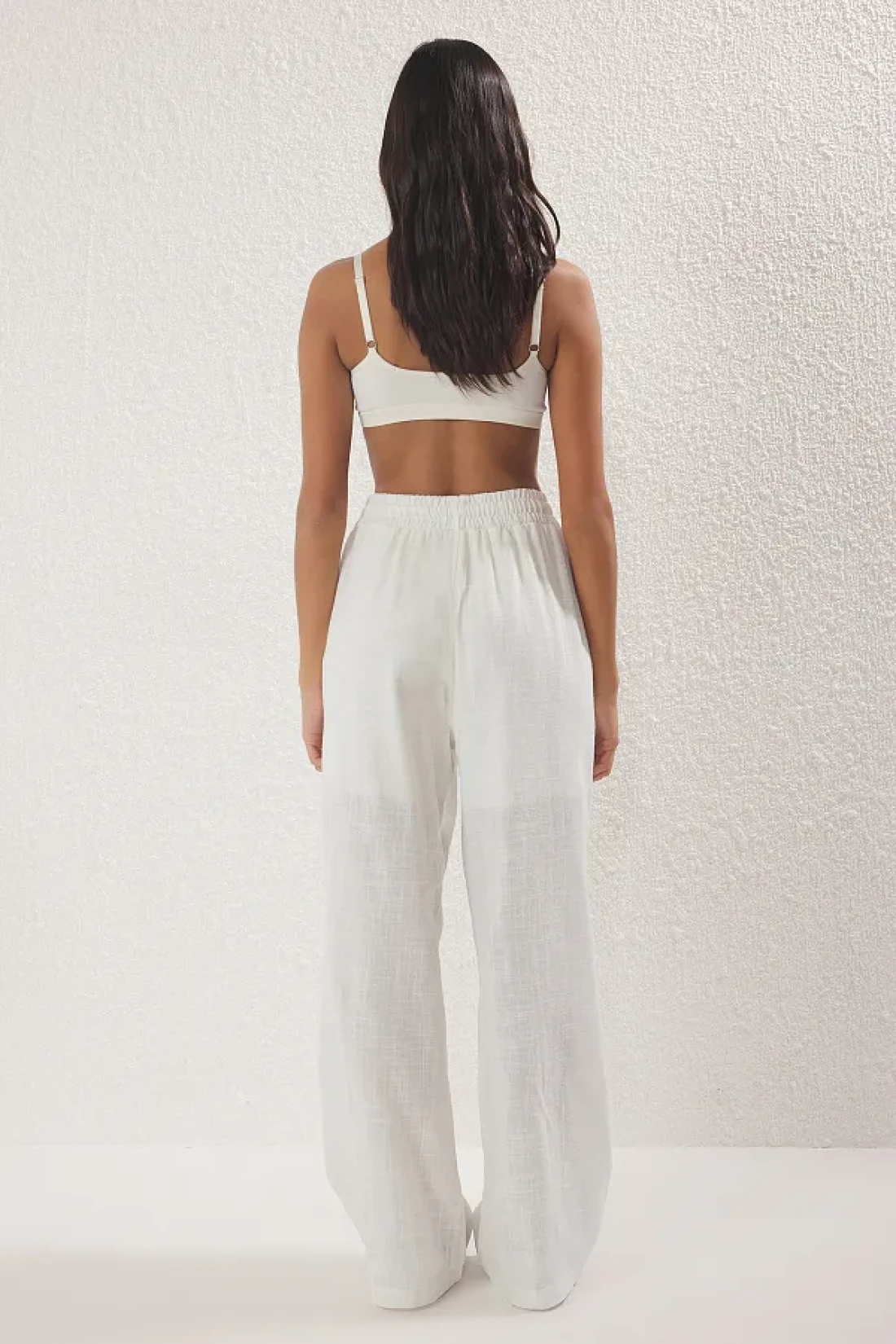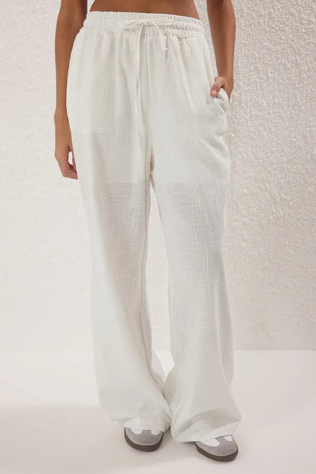 Collection شورت من الكتان الأبيض بأرجل واسعة جدًا - مع طبلة مطاطية مبطنةシュツォS25PL00121