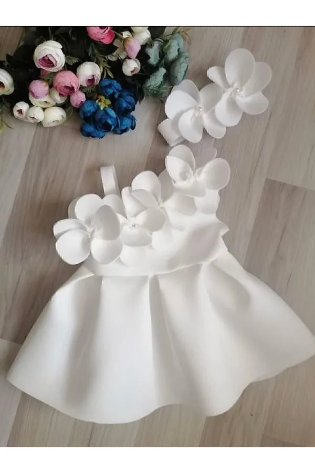 فستان فتاة الأوركيد المزين باللؤلؤ لمناسبة خاصة؛ يتضمن باندانا؛