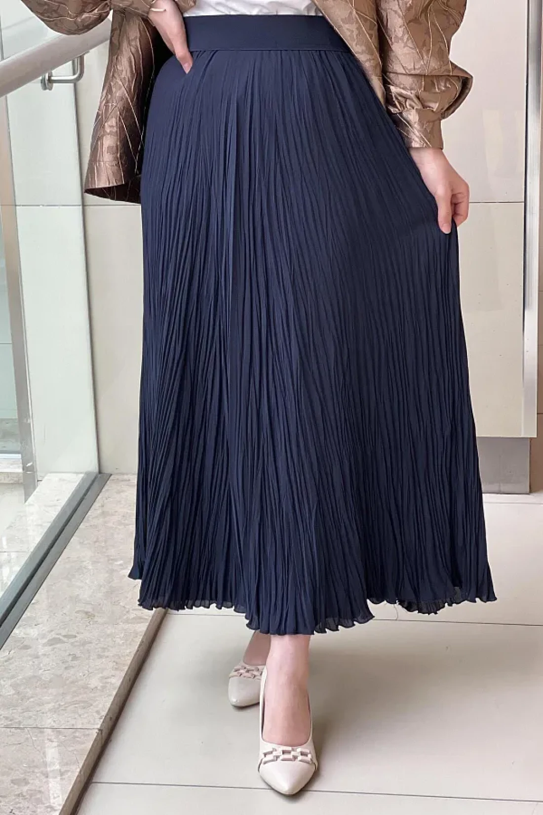 sentez giyim التوليف الشيفون التجاعيد تنورة