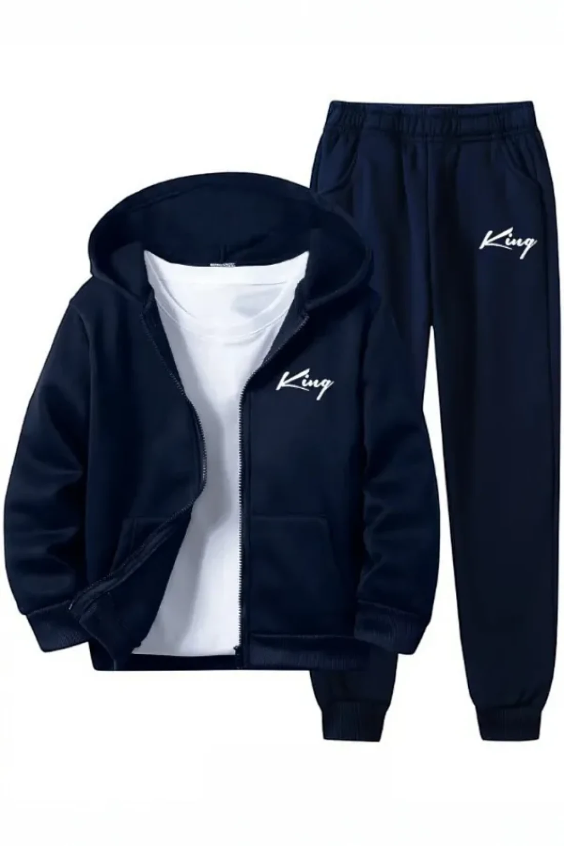 han elegant طقم بدلة رياضية للأولاد بسحاب مطبوع عليه نص كينج