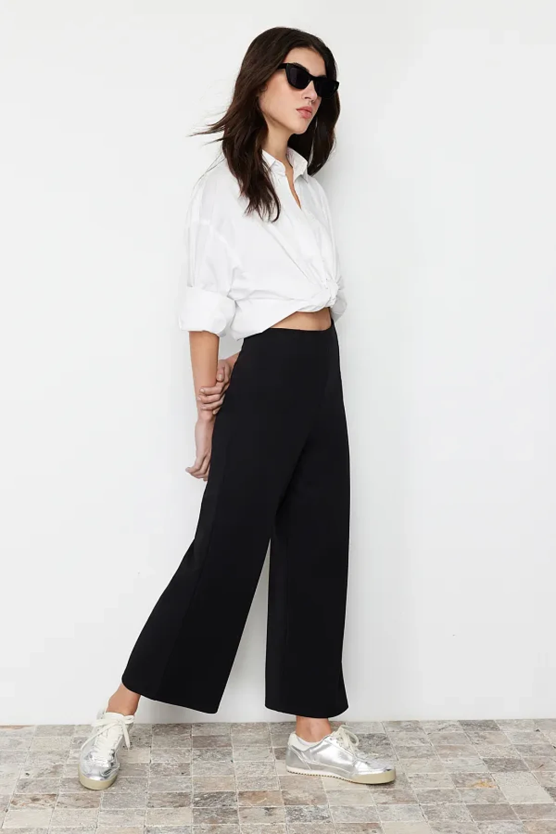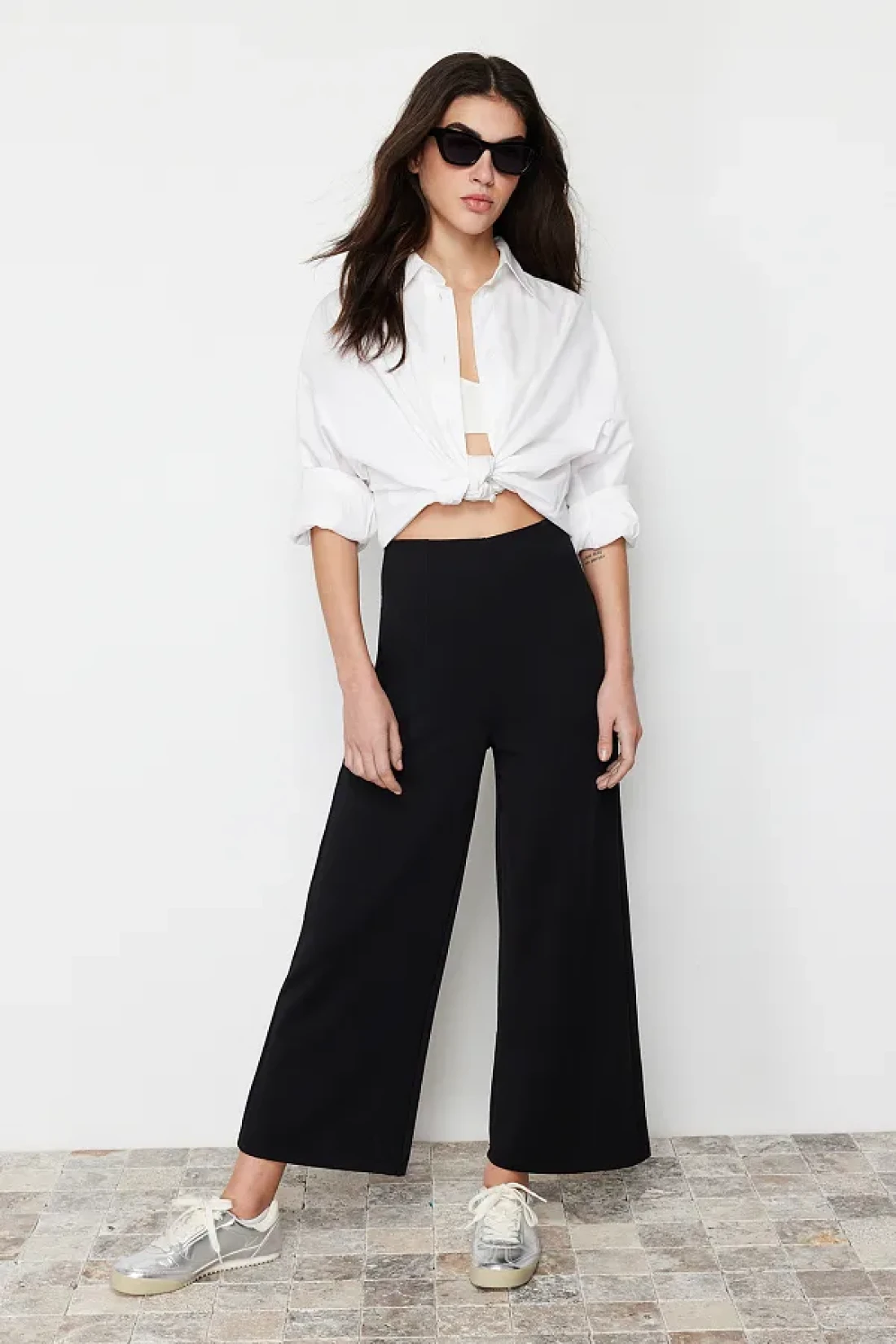 Collection بنطال كولوتي أسود بخصر مرتفع - TWOSS24PL00036