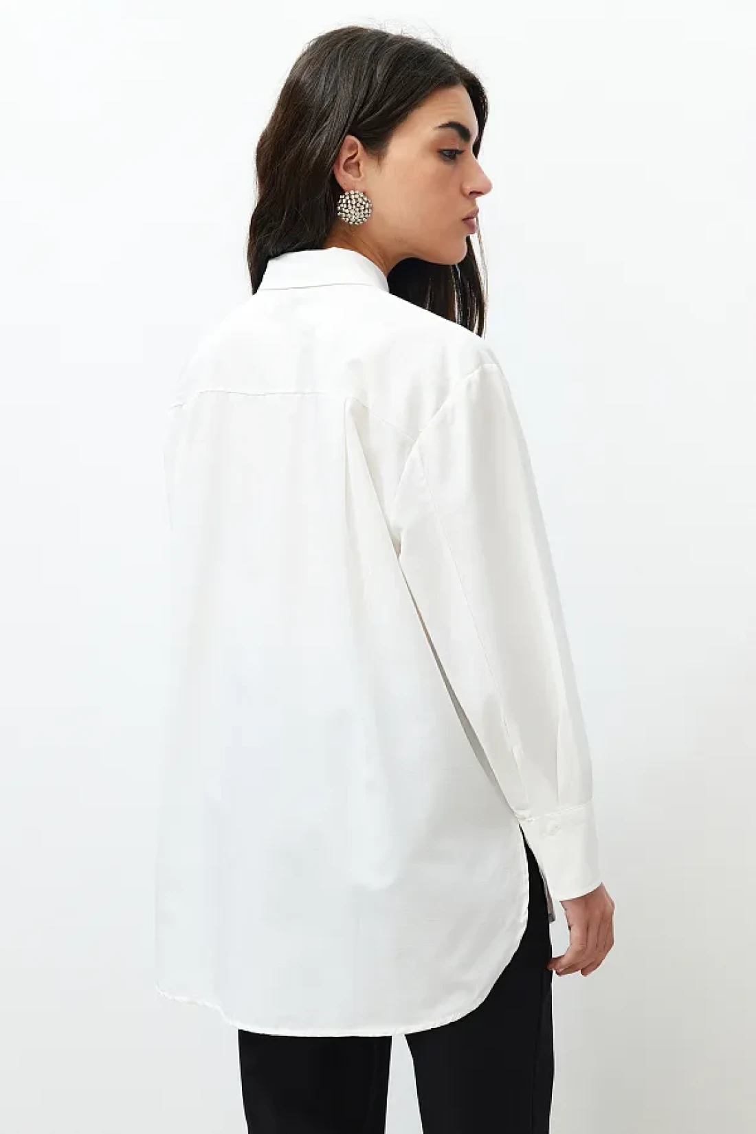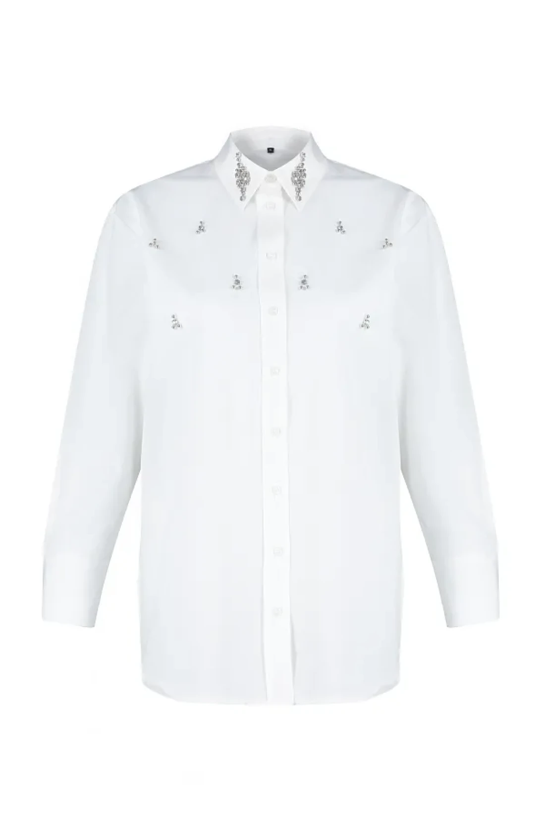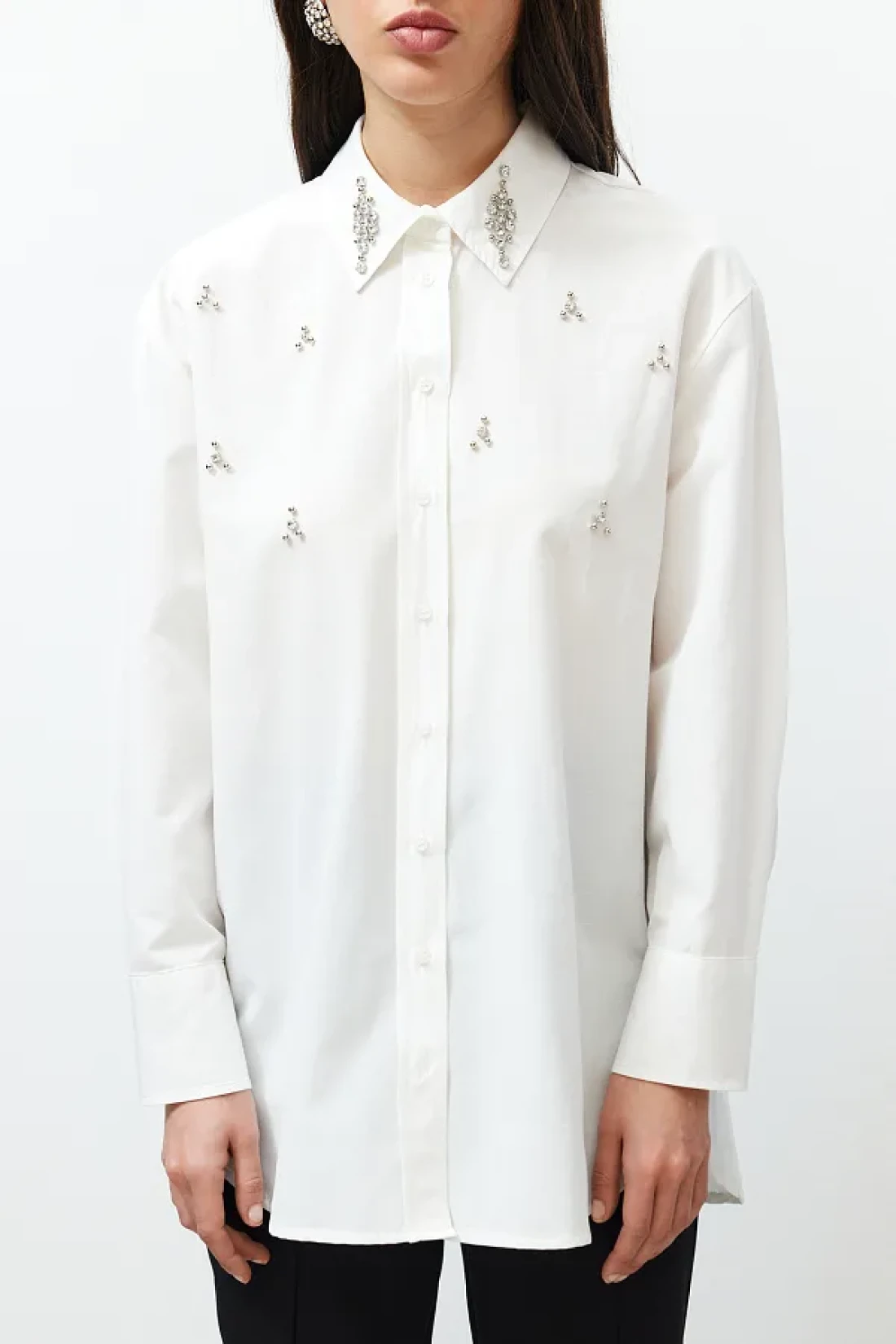 Collection قميص منسوج إكرو بتفاصيل حجرية - مقاس عادي TWOSS24GO00069