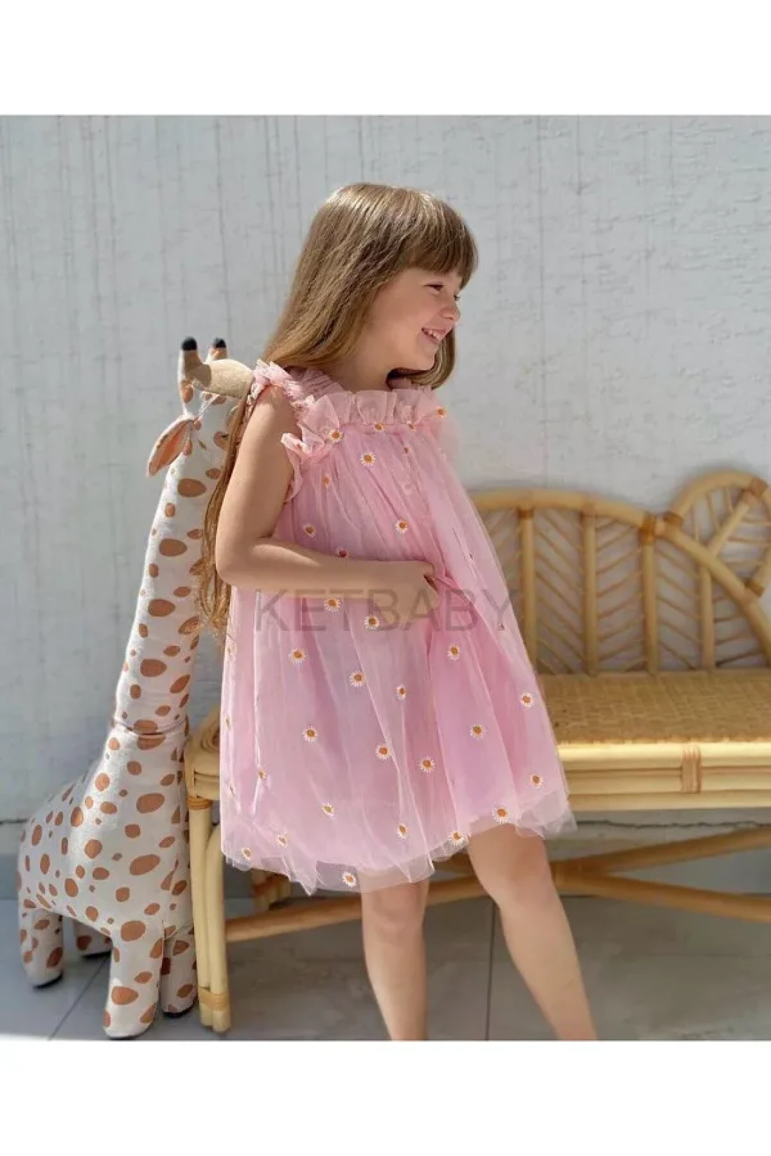 KETBaby فستان بناتي بحزام مطرز على شكل ديزي