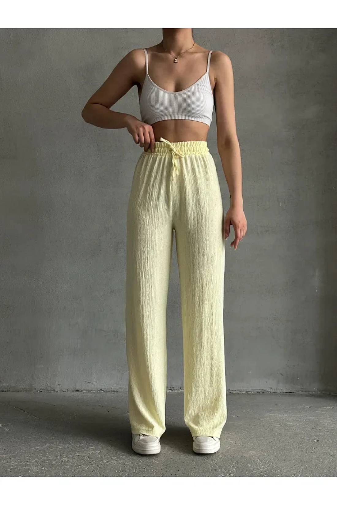 قياسات العارضة: الطول: 1.70 ، الصدر: 82 ، الخصر: 62 ، الورك: 92 - المنتج في الصورة هو الحجم S/36/1. يقدم مظهرًا عصريًا وأنيقًا بتصميمه ذو الخصر العالي. - يخلق أسلوبًا رائعًا ومتطورًا بألوانه. - يوفر حرية الحركة براحة بفضل قصته الطويلة. يوفر استخدامًا مريحًا من خلال التكيف مع خطوط جسمك. يسمح لك بتعديلها وفقًا لذوقك الشخصي مع تفاصيل الربط أو الدانتيل. إنه قطعة أساسية من المجموعة يمكنك دمجها بسهولة في البيئات العصرية. يوفر الراحة بقصته الواسعة بينما يرسم صورة ظلية عصرية بتصميمه ذو الأرجل الواسعة. - مع ميزة الخصر القابلة للتعديل، من الممكن تحقيق الملاءمة المثالية لأي حجم. يأخذ مكانه بين القطع الخالدة من خلال التكيف مع الاتجاهات بنمطه.