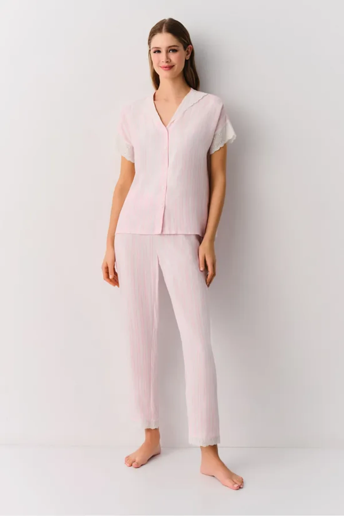 النسيج الرئيسي: 95٪ فيسكوز 5٪ إيلاستين الدانتيل: 70٪ قطن 30٪ بوليستر الموسم: صيف 2025 الجنس: امرأة طول الأكمام: قصير النمط: عادي الخصر: عادي الطول: قياسي الأصل: تركيا الفئة العمرية: بالغ
