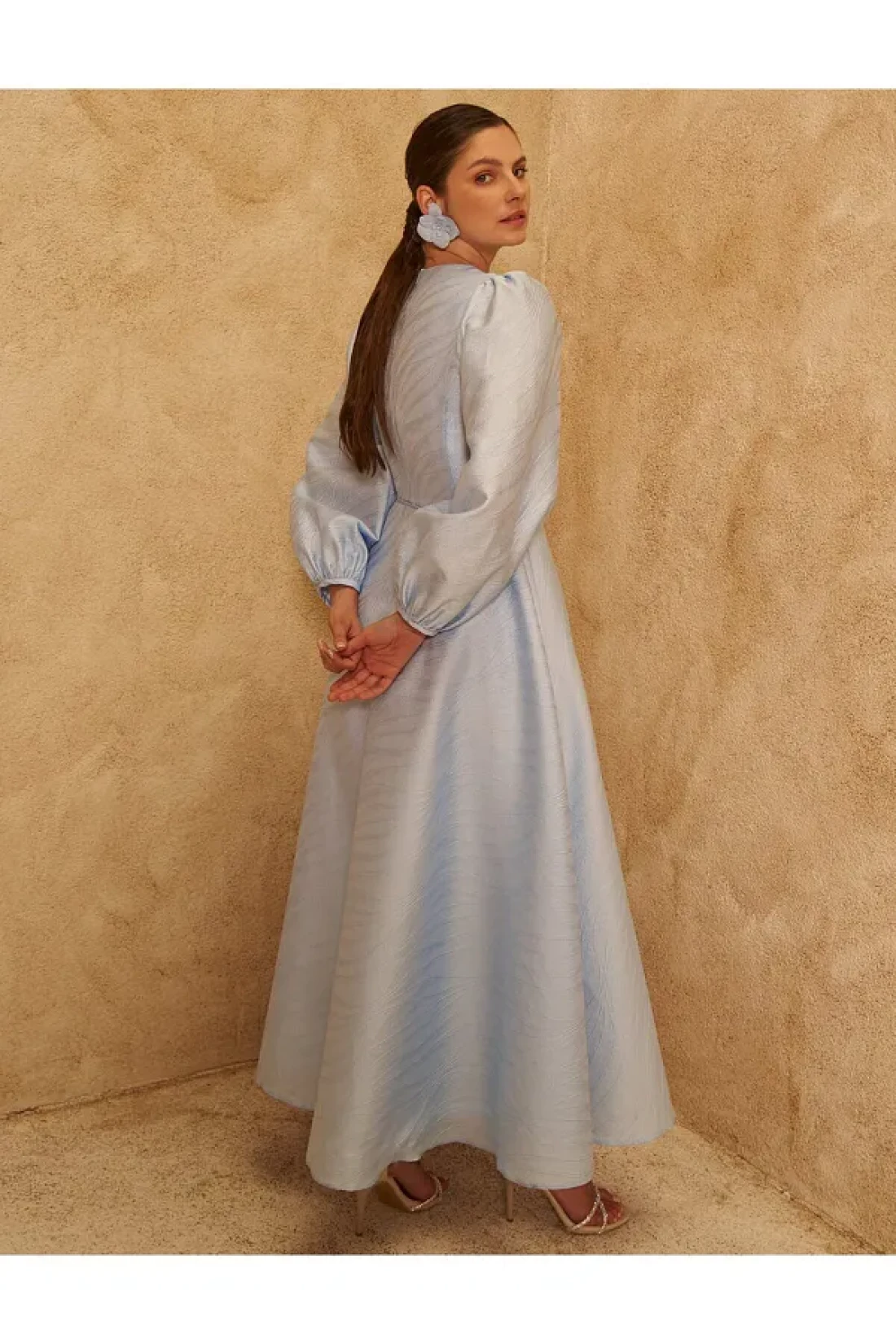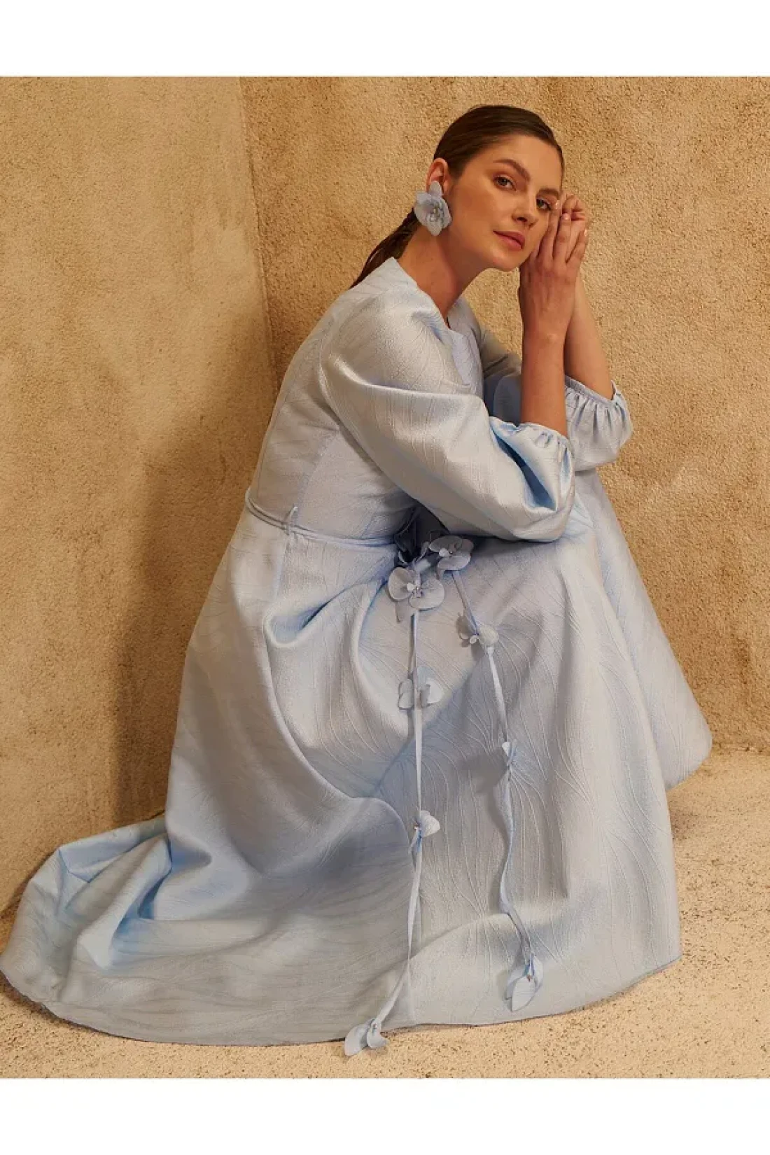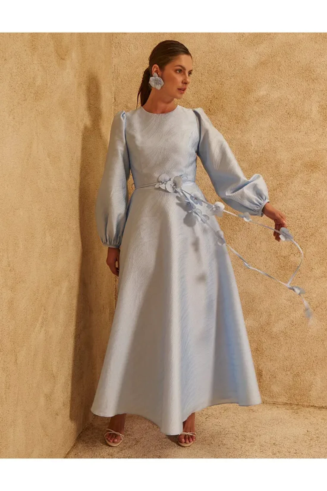 Kayra فستان من التفتا مزين بالزهور باللون الأزرق