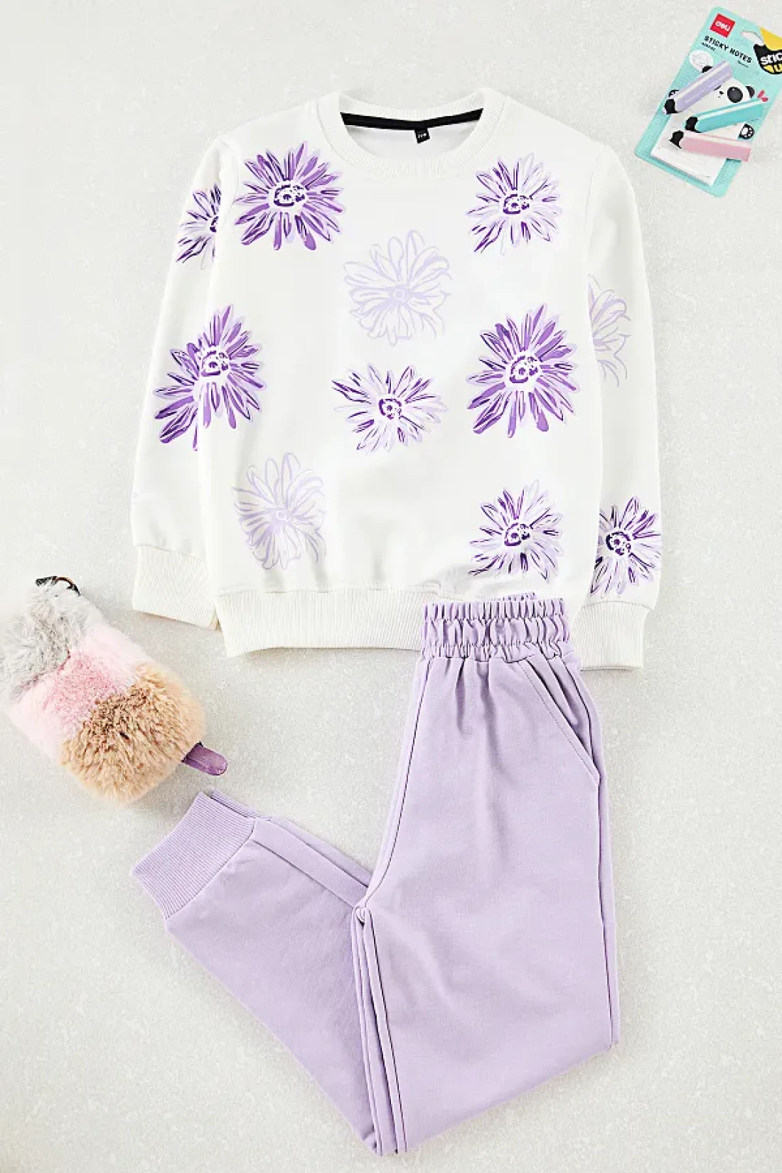 TRENDYOLKIDS طقم علوي محبوك بالزهور للفتيات من إكرو TKDAW25AU00162