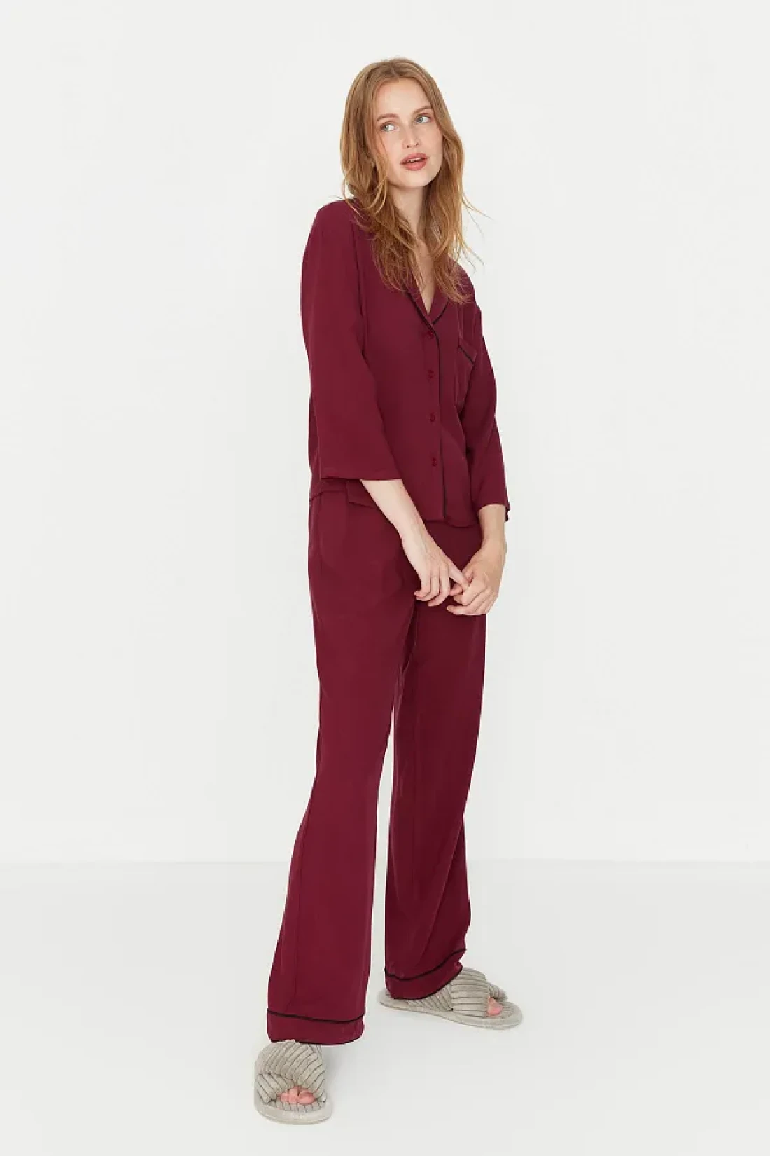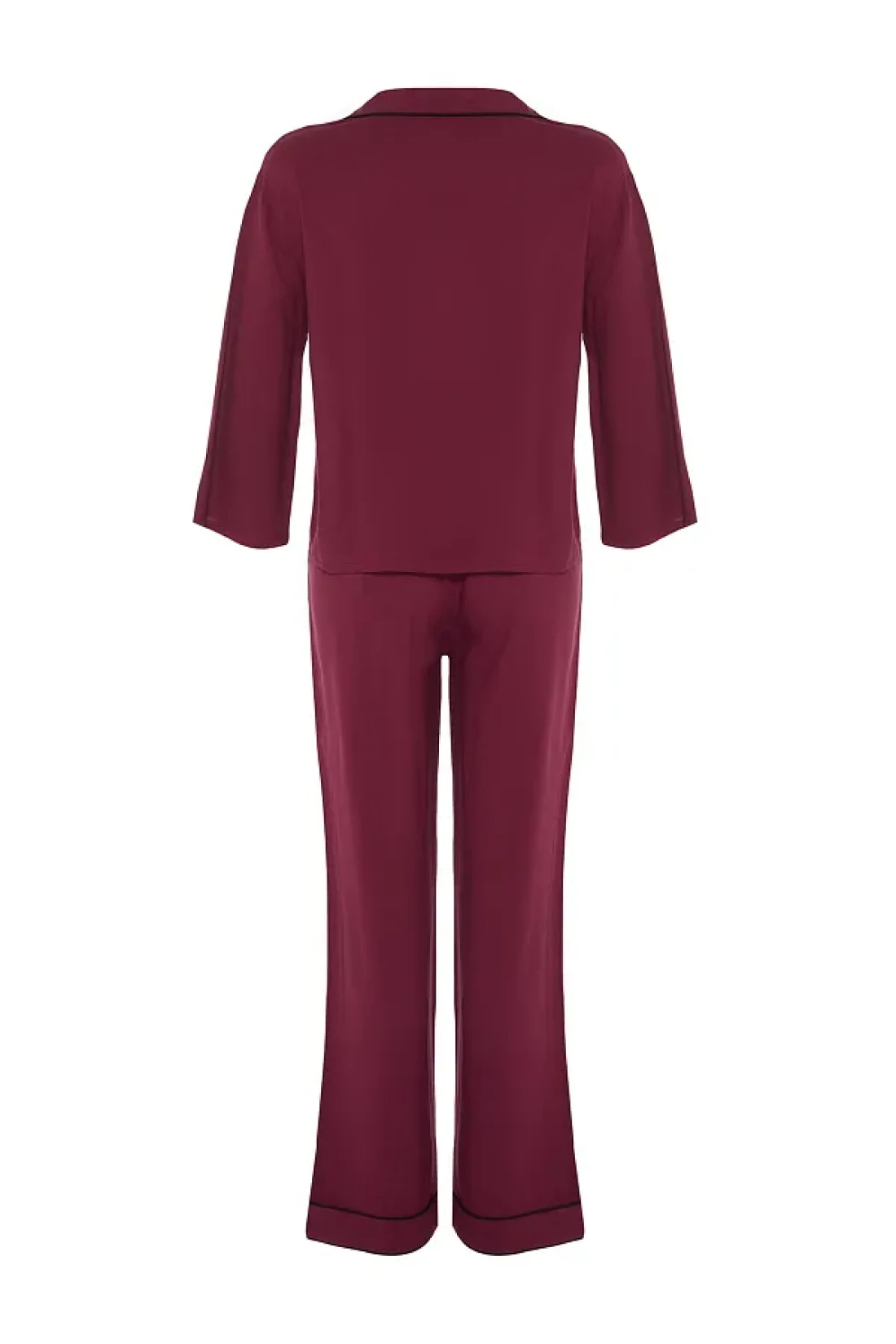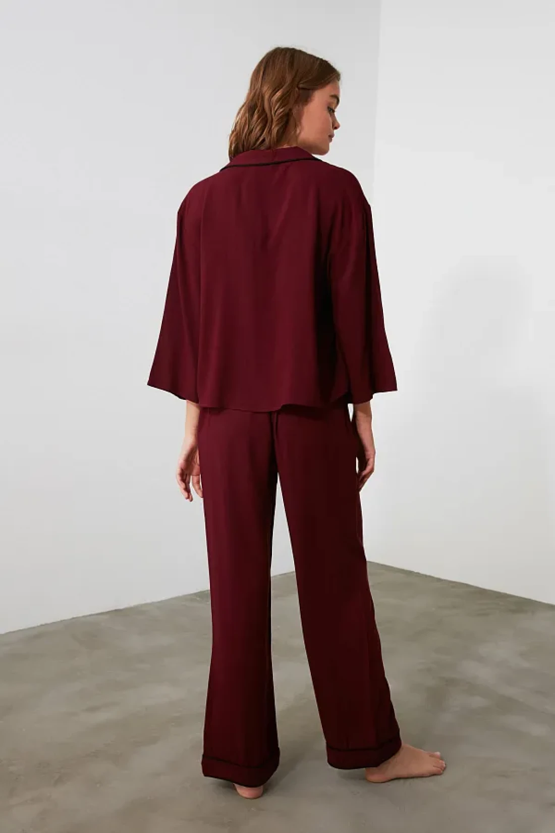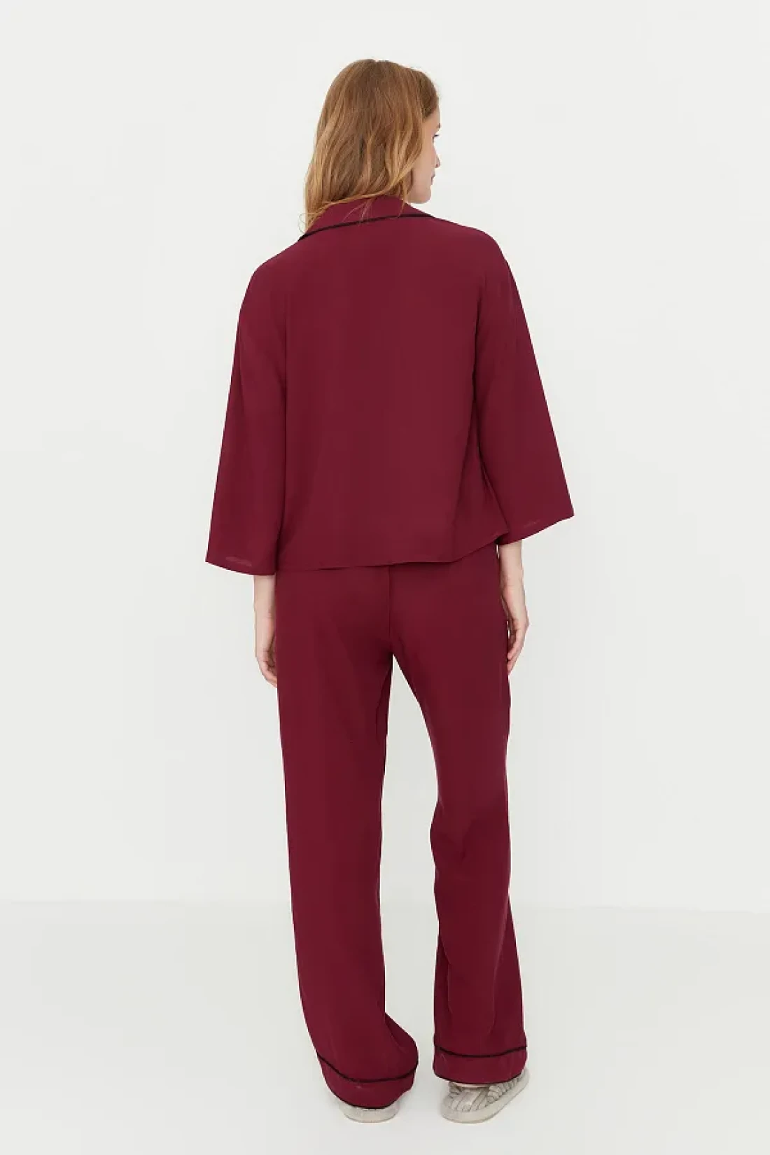 Collection طقم بيجامة منسوجة من الفيسكوز باللون العنابي THMAW21PT0292