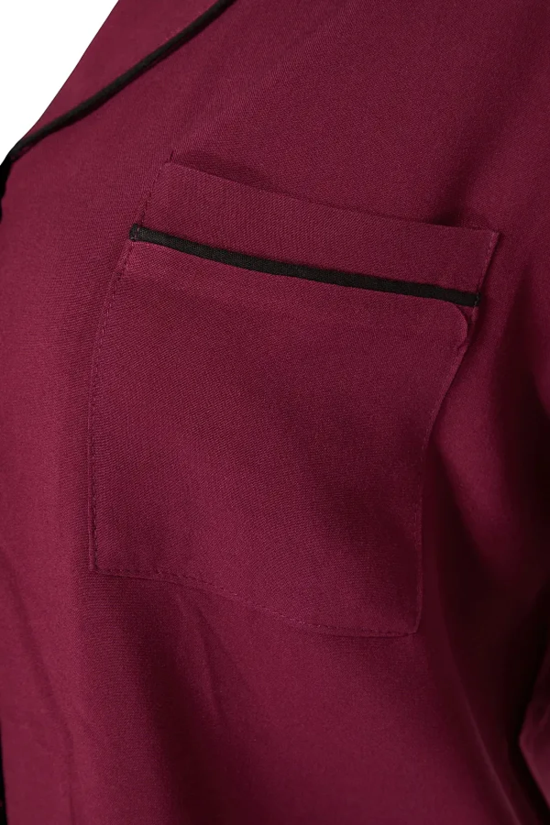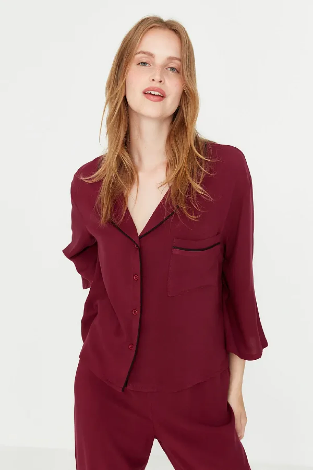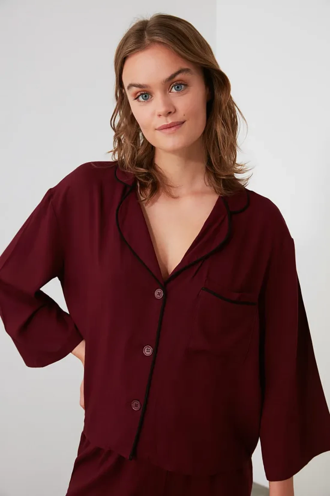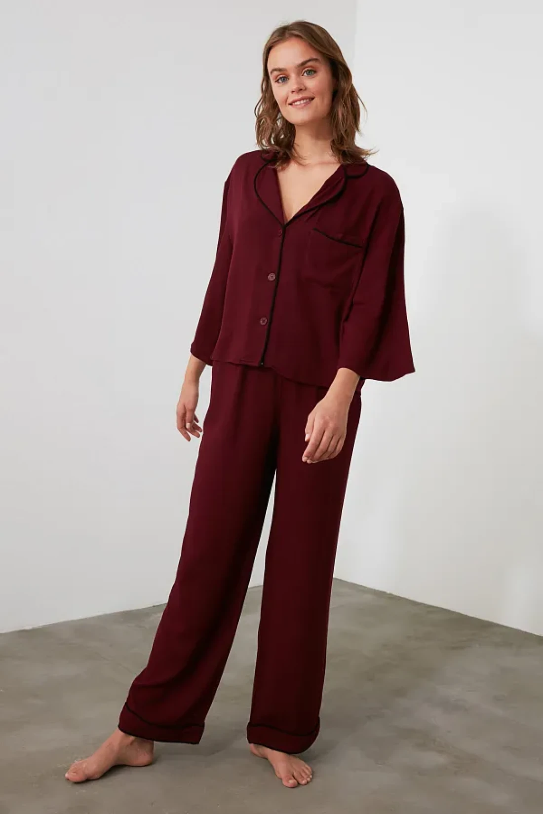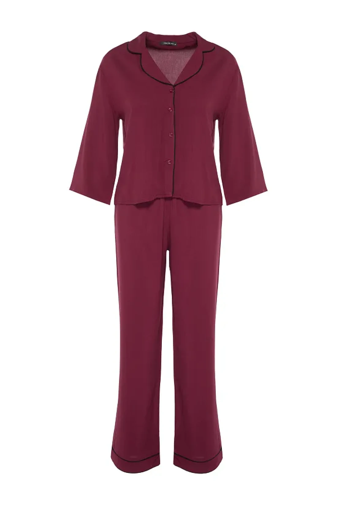 Collection طقم بيجامة منسوجة من الفيسكوز باللون العنابي THMAW21PT0292