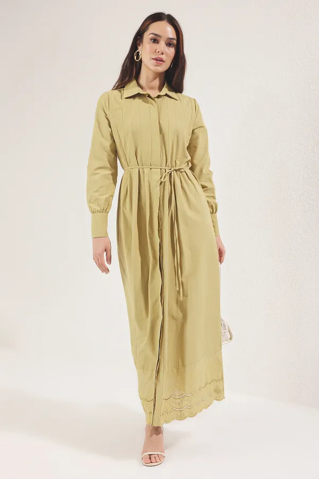 Modest تنورة خضراء زيتية فستان منسوج بتفاصيل مطرزة TCTSS25EB00114