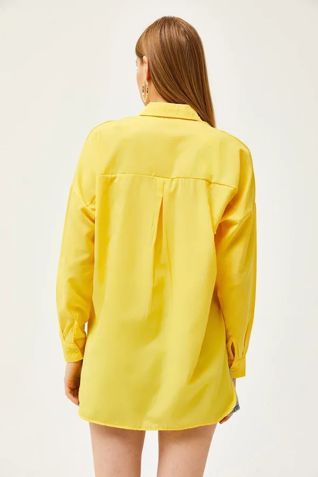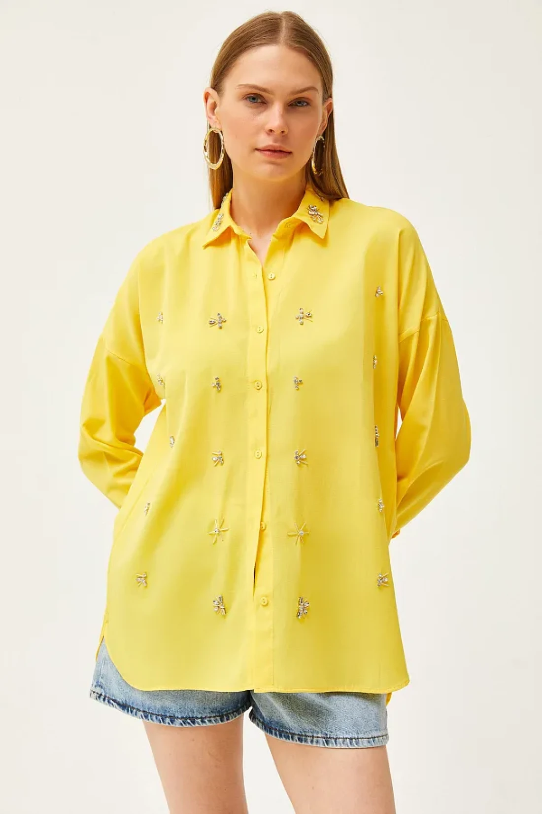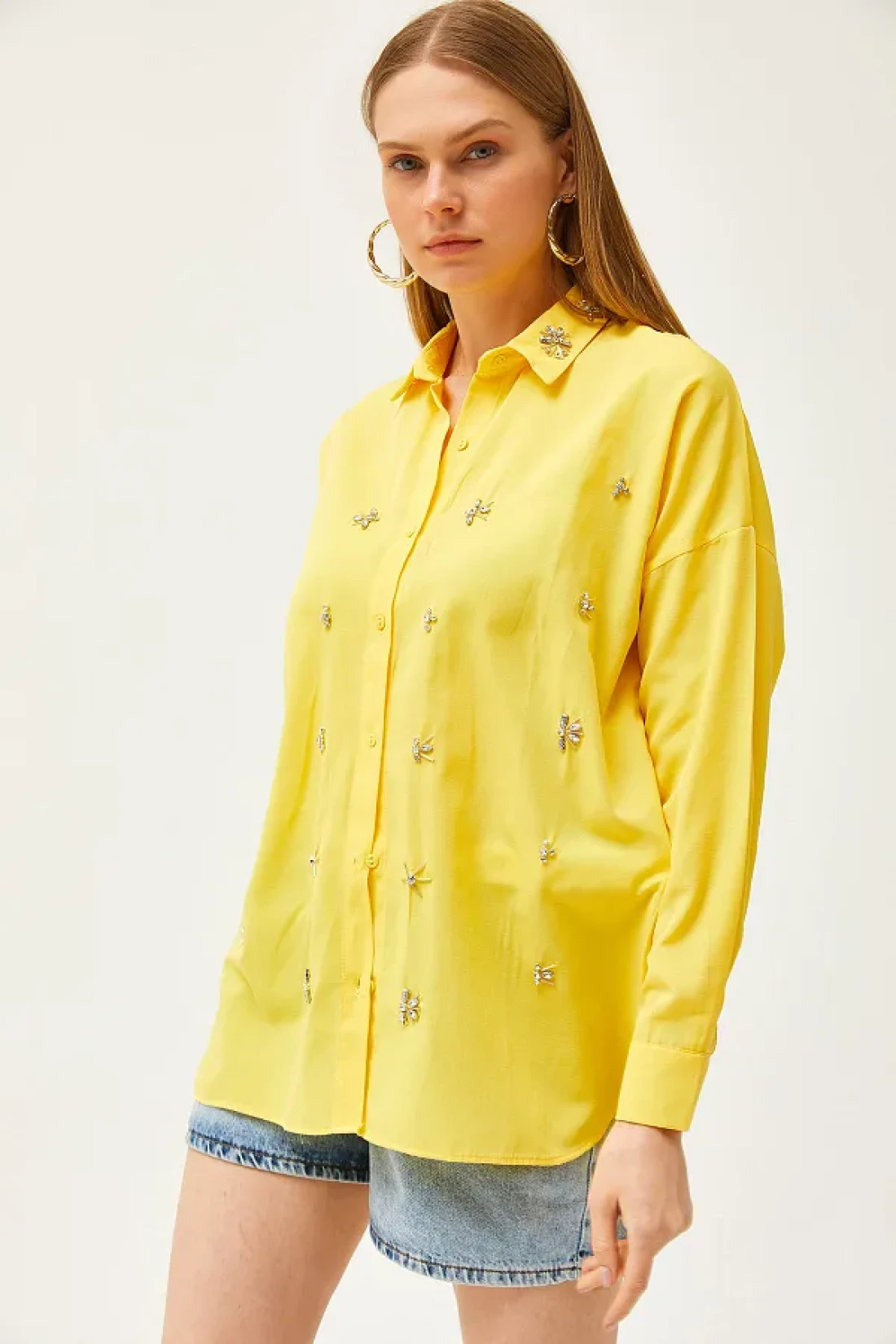 Olalook قميص نسائي منسوج ذو ياقة صفراء وستة ألوان بيضاوية من الأمام GML-19001149