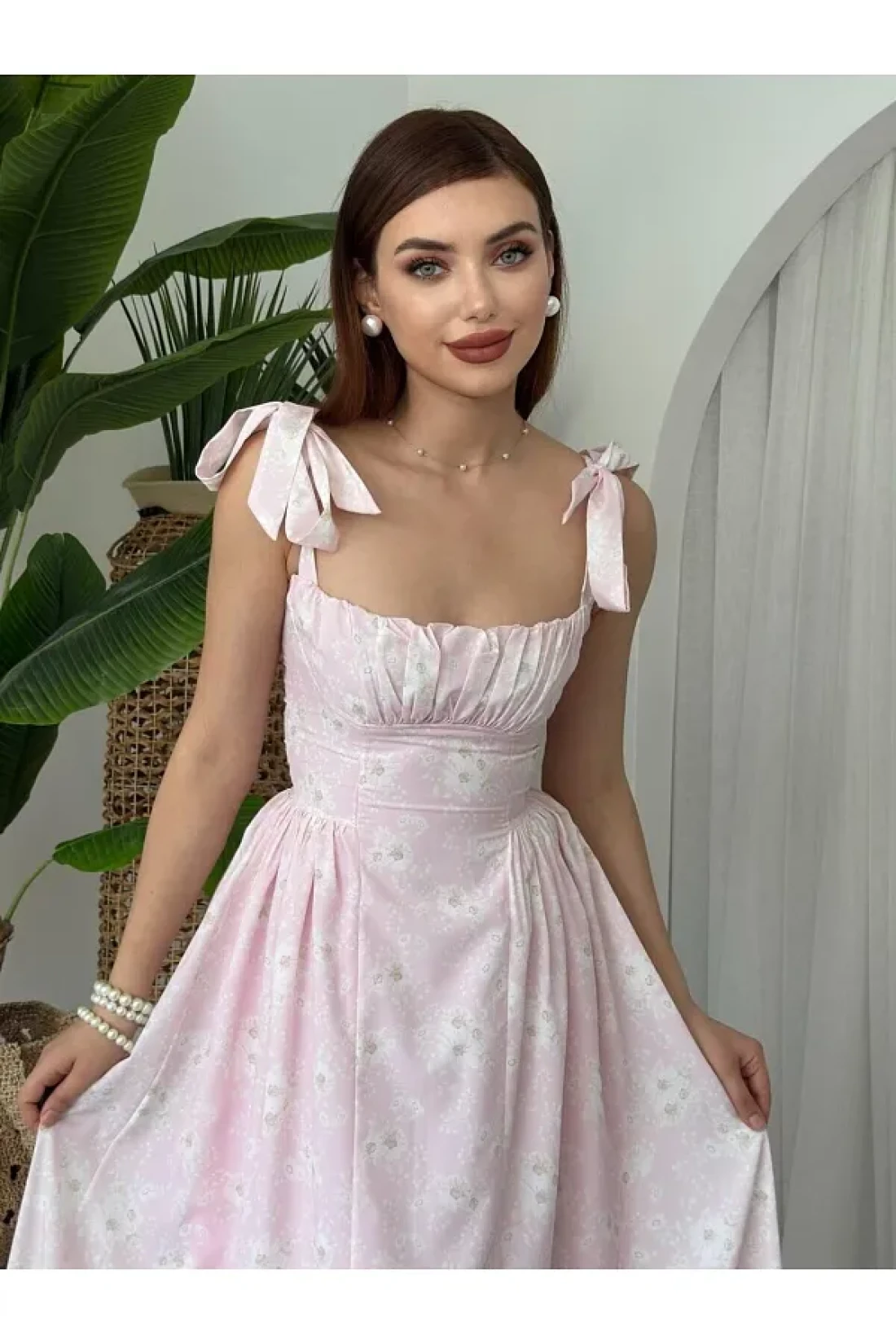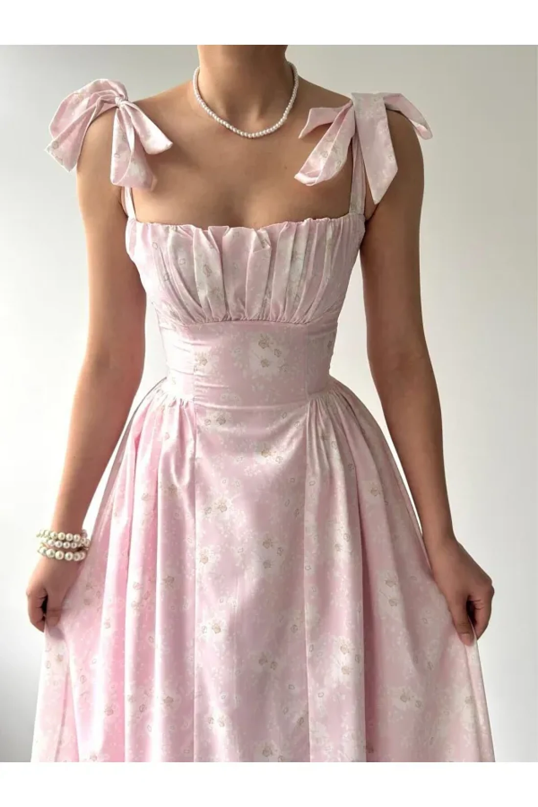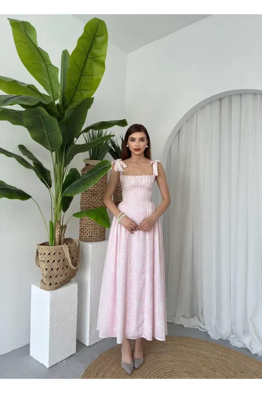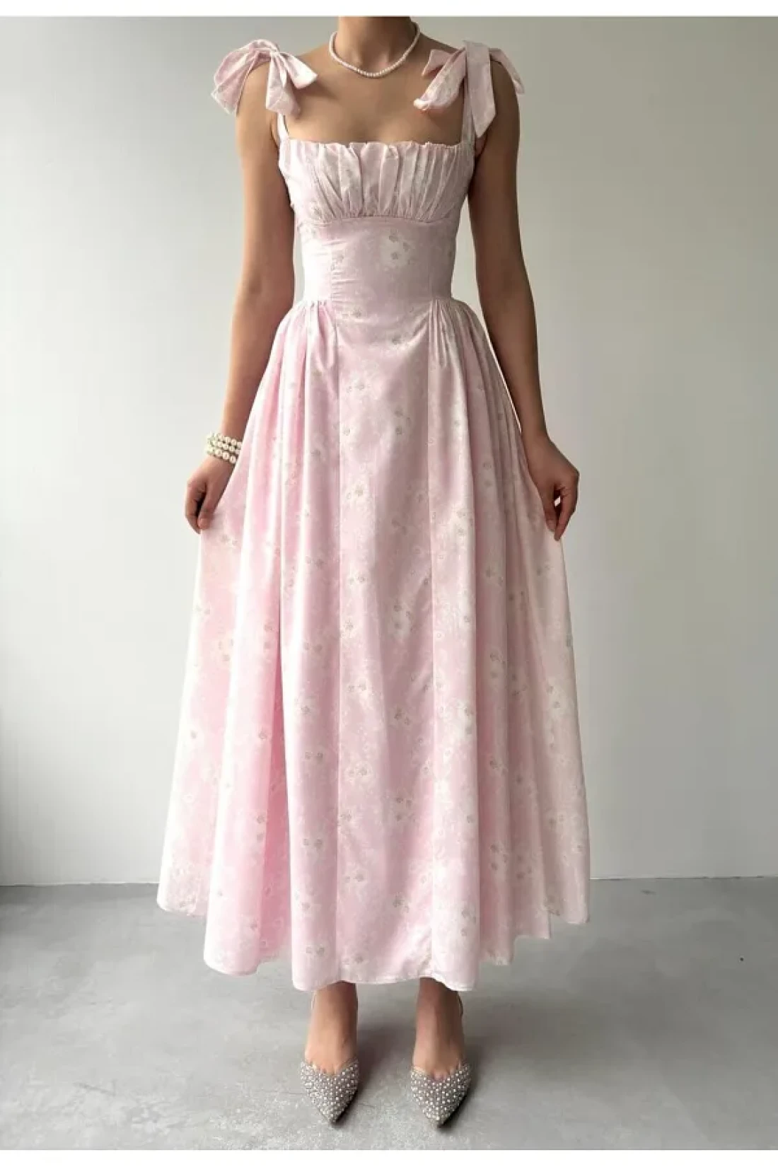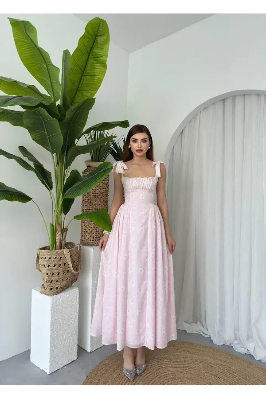 جوليدريس؛ جودة عالية، موسم جديد، فستان ممتاز بطول متوسط مع تفاصيل مشد مزين بالزهور ومطوي؛ فساتيننا ضيقة.