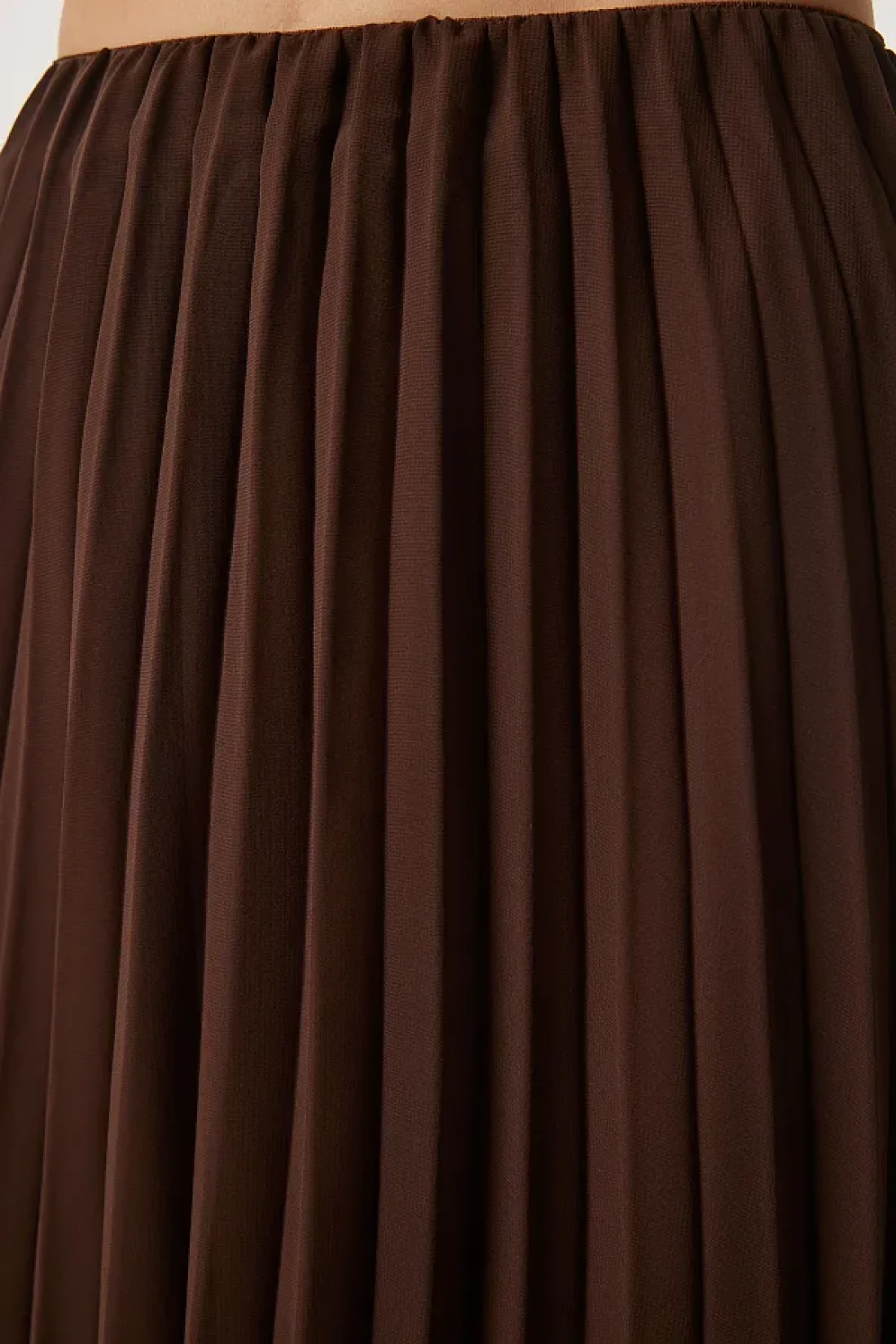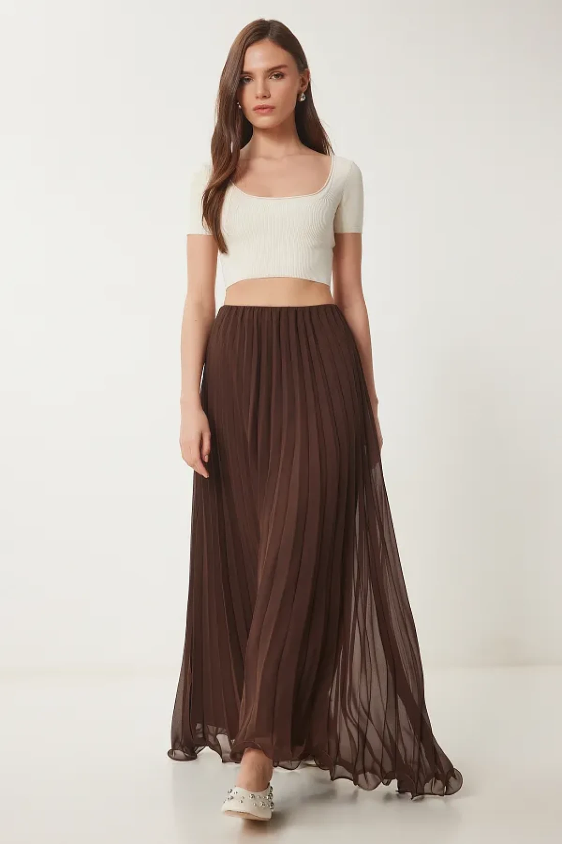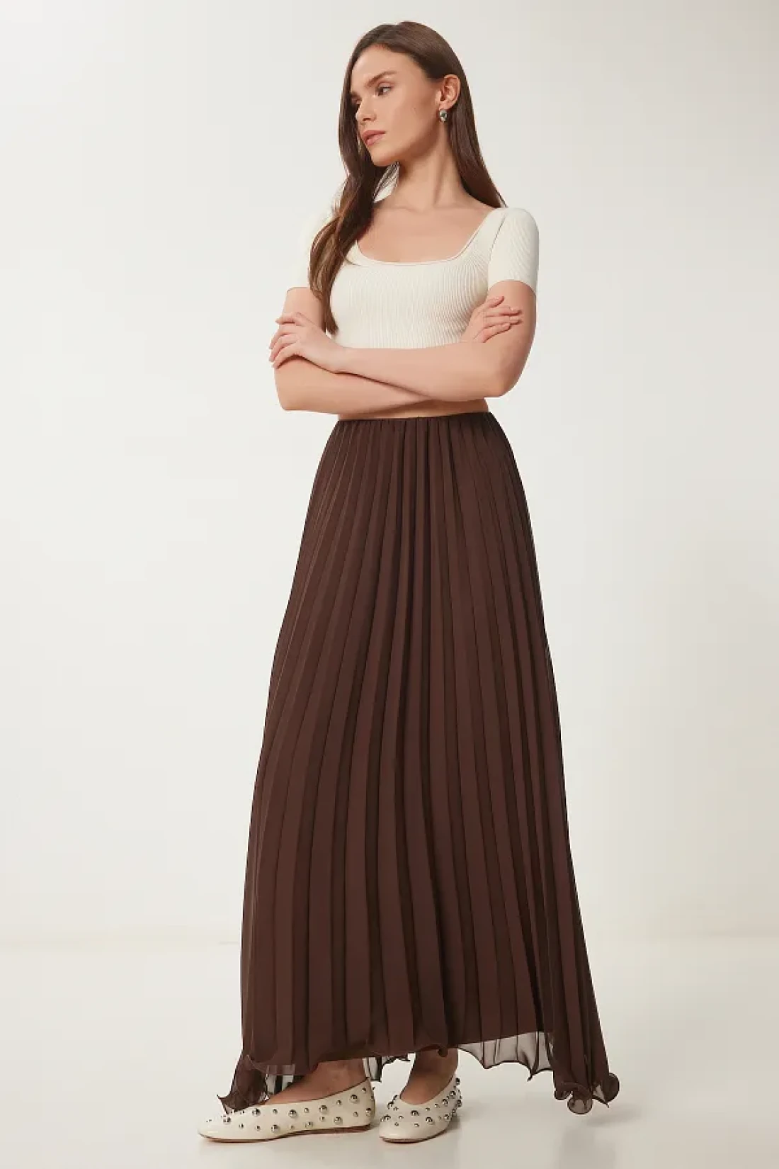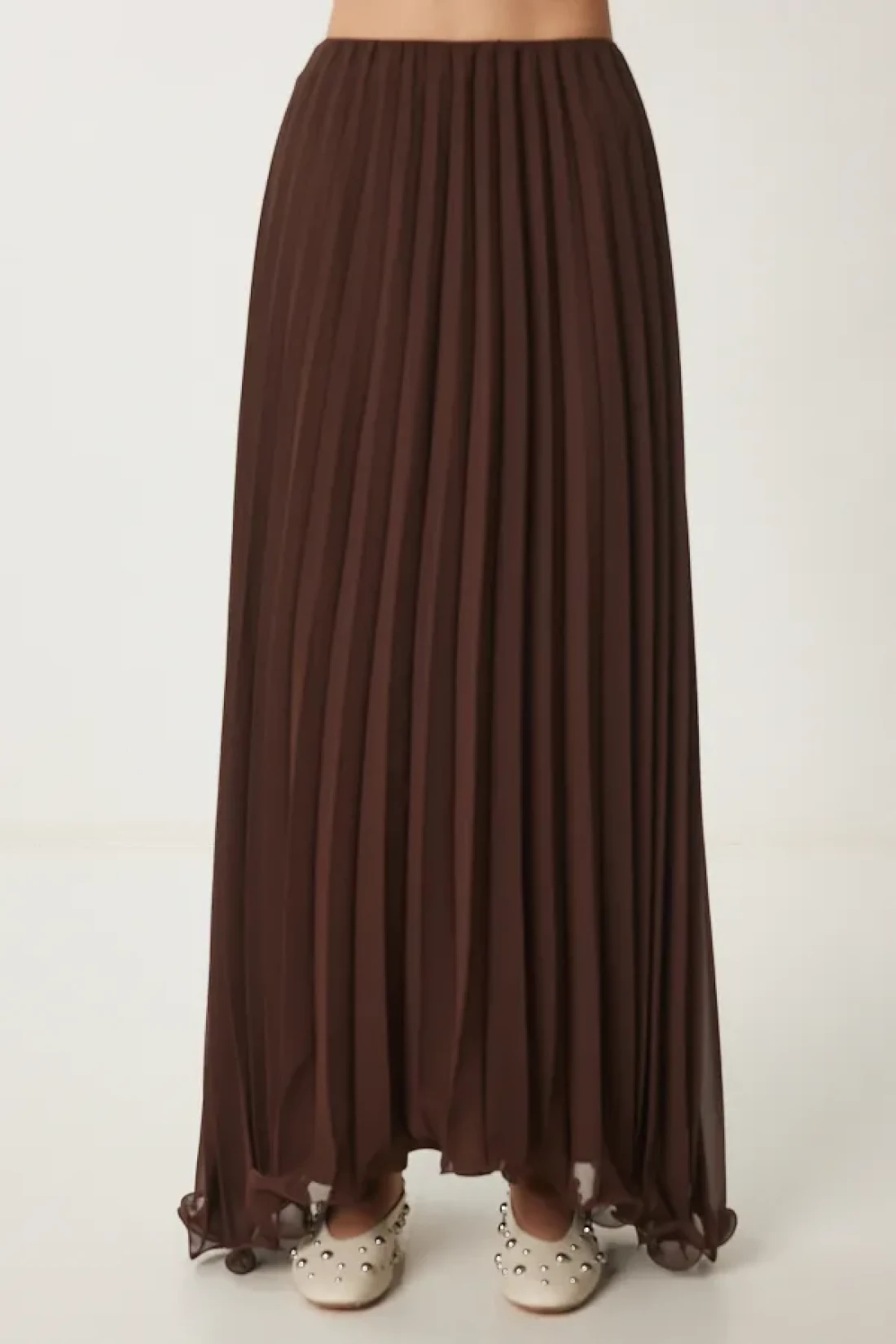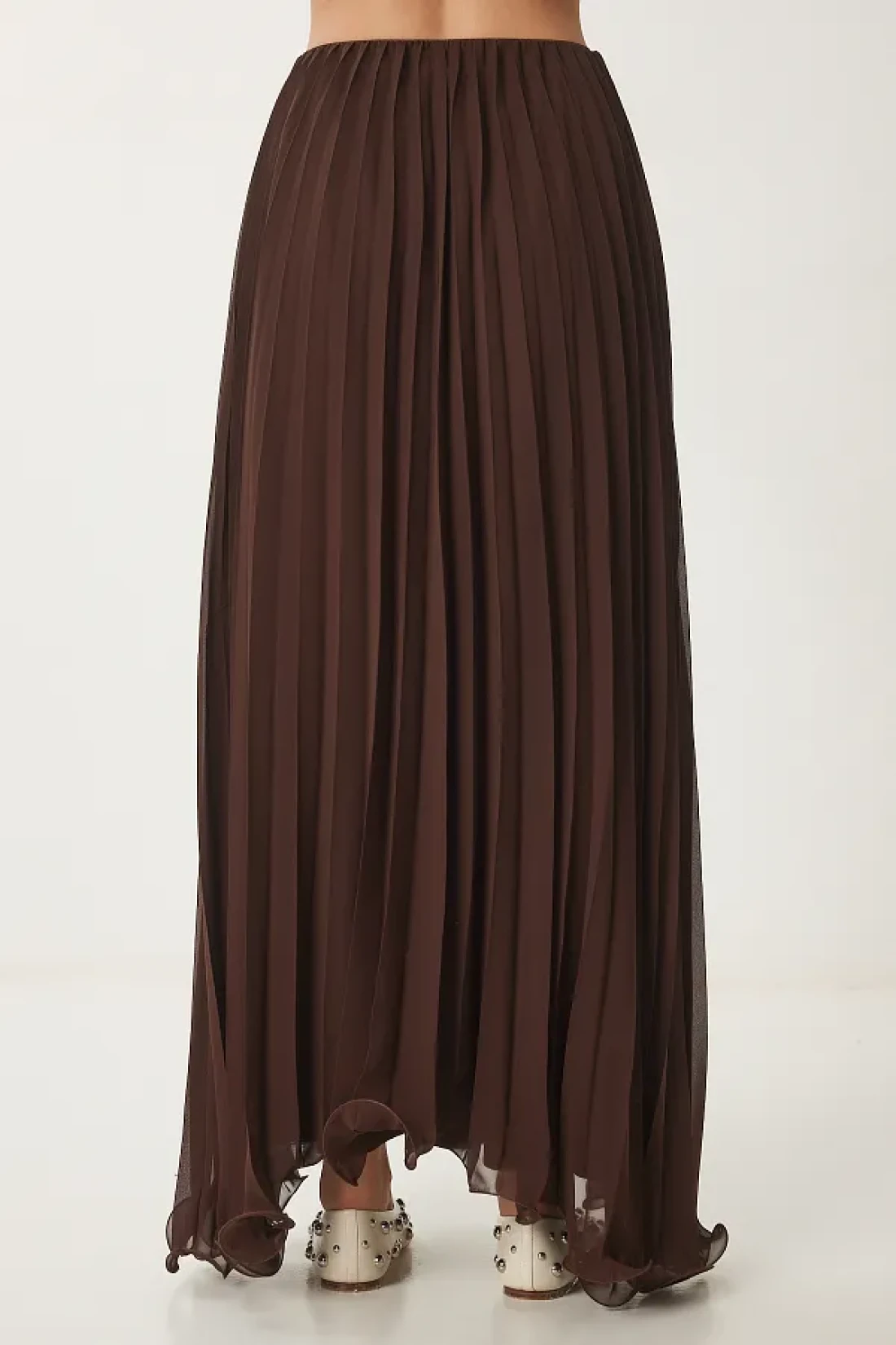 Happiness İstanbul تنورة شيفون ذات ثنيات بنية اللون للنساء DP00237