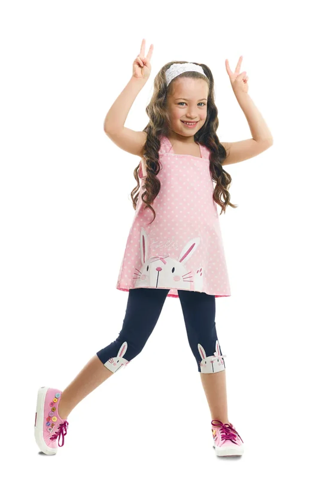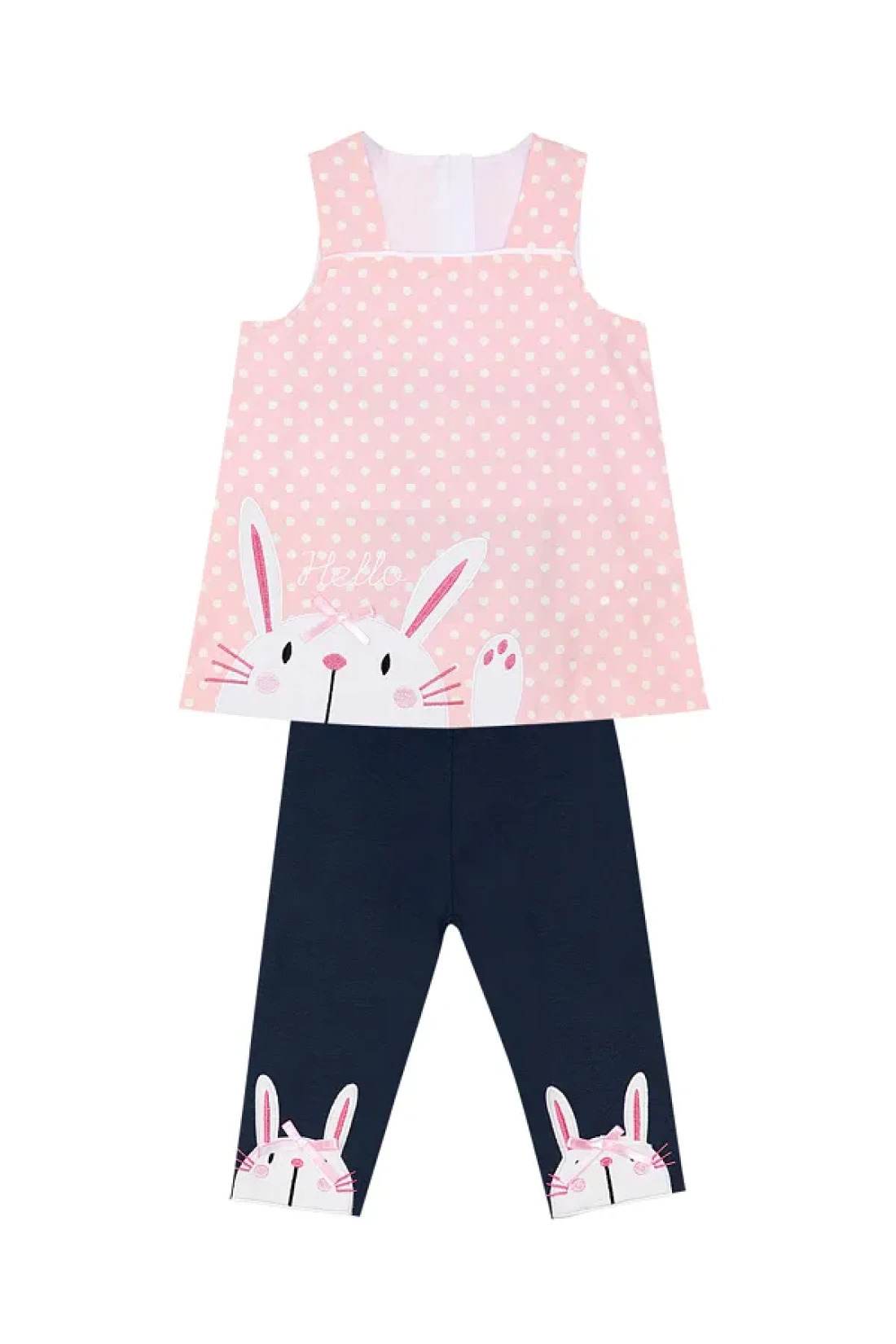 Denokids طقم تي شيرت صيفي بنقشة أرنب باللون الوردي الداكن للفتيات