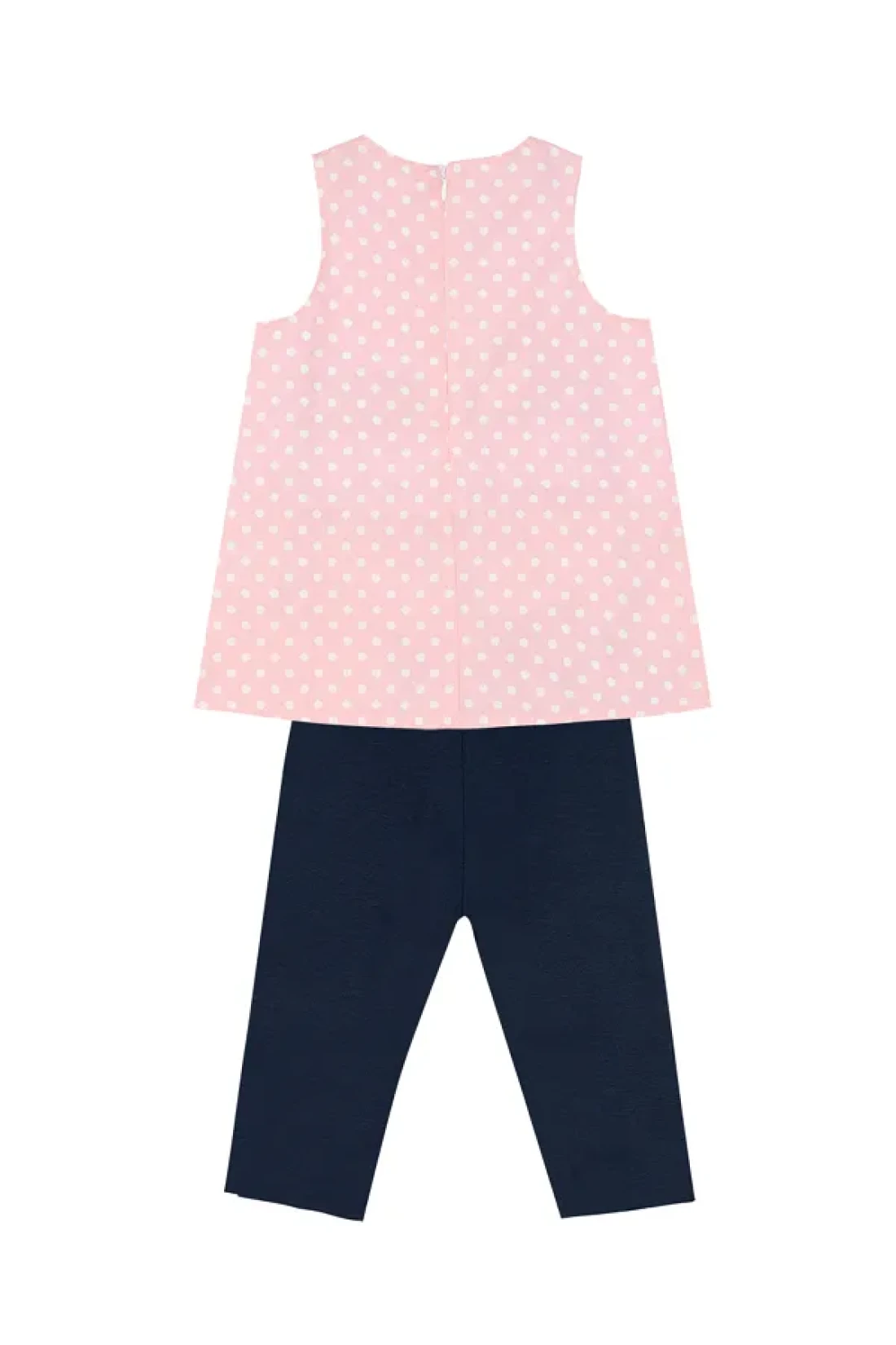 مجموعة من قطعتين. تونيك من القماش المنسوج مع تطريزات وسروال ضيق مع تطريزات على الأساور.