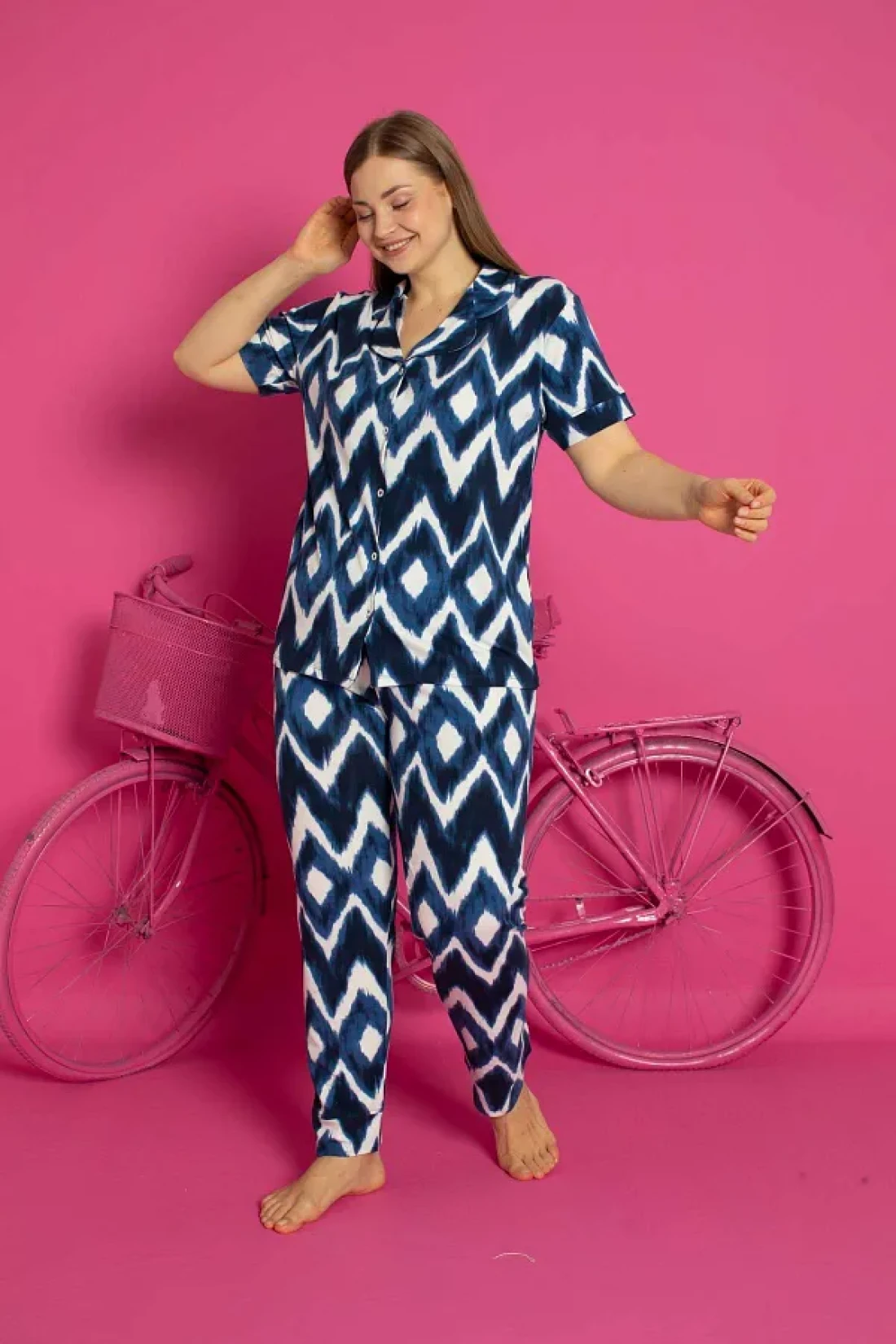 إنها مجموعة بيجامة يمكن للجميع اختيارها بسهولة بفضل تصميمها المناسب لجميع الفئات العمرية. بفضل قطع الساق المستقيمة، فإنه يوفر استخدامًا مريحًا ويضمن حرية الحركة. يمنح شعورًا بالانتعاش والراحة في الصيف بفضل تصميمه قصير الأكمام الطول الطويل وطول الحاشية يخلقان بيئة نوم مثالية من خلال الحفاظ على دفء الساقين. مكون من مادة القطن 100% يوفر لمسة ناعمة من خلال السماح للبشرة بالتنفس. يوفر نوع القماش المحبوك راحة فائقة من حيث المرونة والمتانة؛ يتناسب بشكل مثالي مع خطوط جسمك مع نمط مناسب، مما يمنحك مظهرًا أنيقًا. مع تصميمه المنقوش، يقدم أسلوبًا جذابًا، ولا تتنازل عن أناقتك في بيئة المنزل. بفضل تفاصيل الأزرار، فإنه يوفر استخدامًا عمليًا ويمكن ارتداؤه وخلعه بسهولة. طقم البيجامة هذا ذو الأكمام القصيرة مثالي لفصل الصيف ويحافظ على انتعاشك؛
