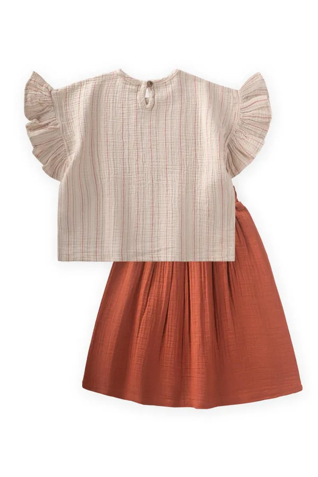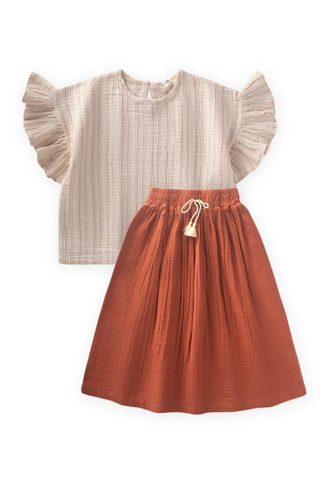 Cigit طقم بلوزة تنورة موسلين لعمر 2-8 سنوات مخطط باللون الصدأ