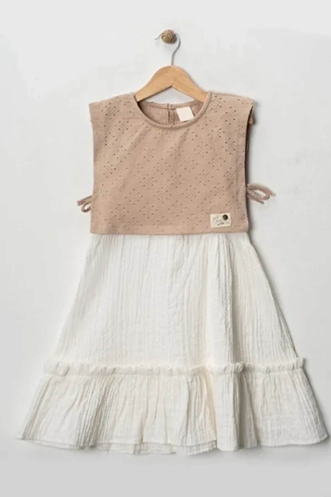 Monila فستان بناتي مصنوع من نسيج الموسلين القطني 100% مع تفاصيل بلوزة قصيرة