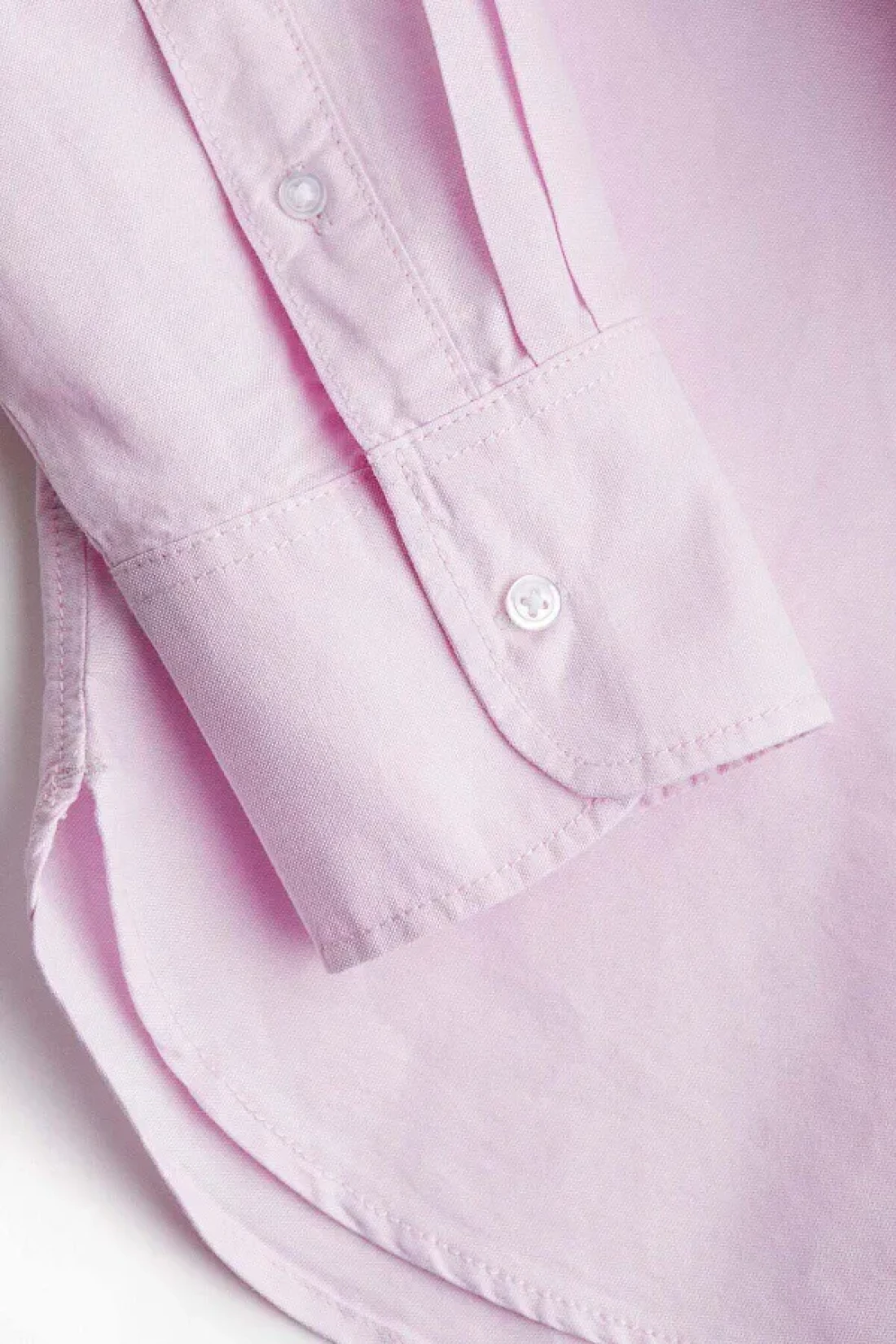 قميص كبير الحجم من القطن المغسول أكسفورد مع طوق وأزرار على طول الجزء الأمامي ونير مع علاقة في الخلف. أكتاف منسدلة وأكمام طويلة وأصفاد بأزرار وحاشية مستديرة. أطول قليلاً في الخلف.