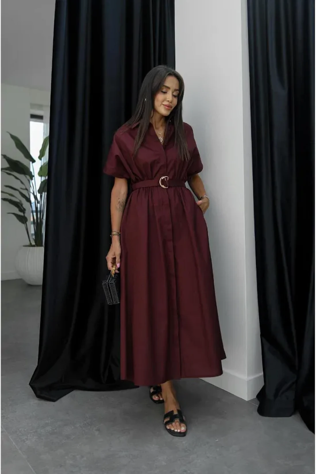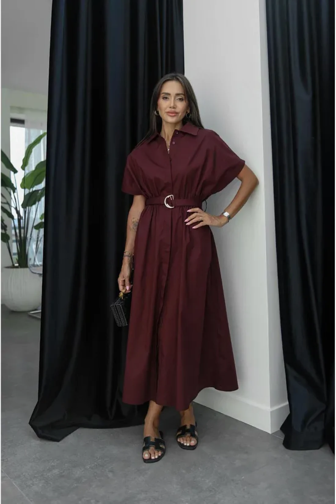 Havoş فستان سولارو باللون العنابي مع تفاصيل حزام