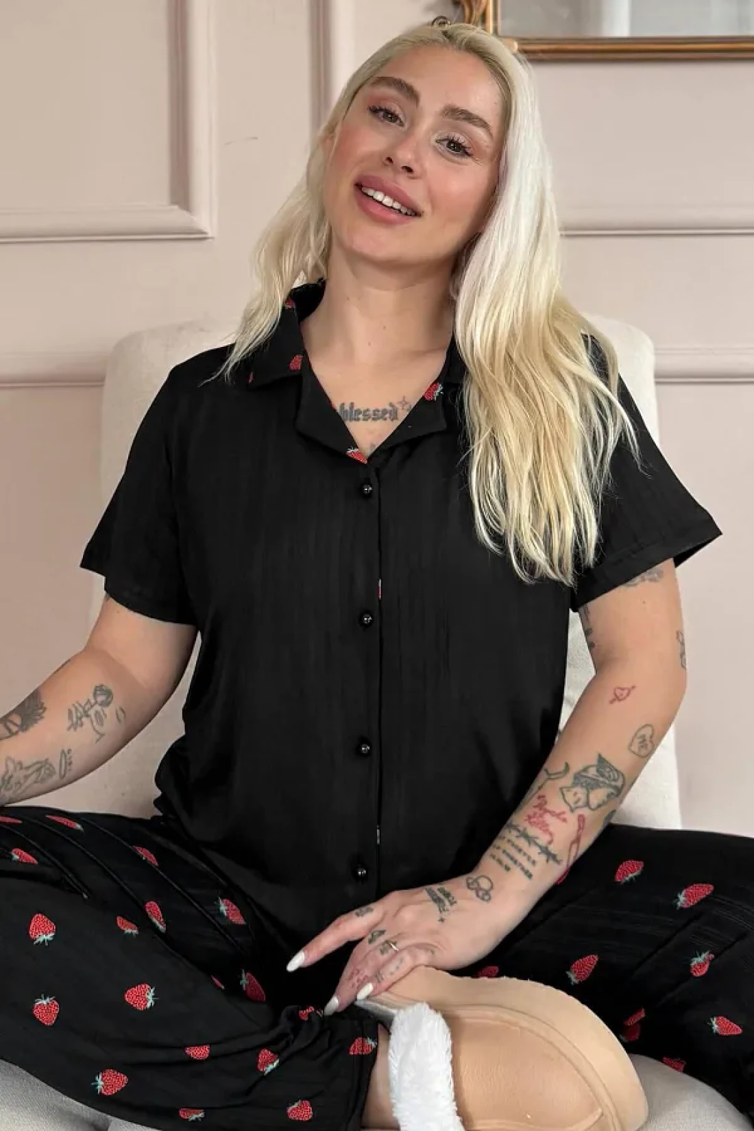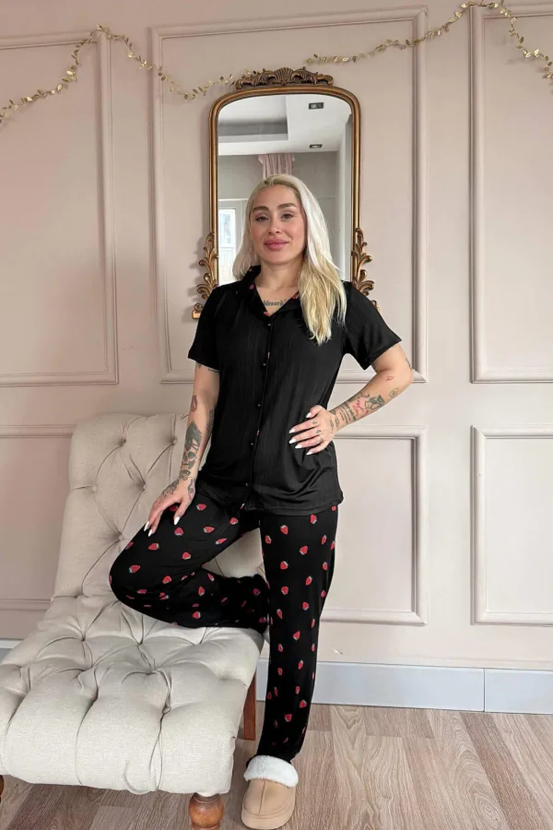 Pijamaevi طقم بيجامة مارلينكا بأزرار أمامية منقوشة باللون الأسود من نوير فرايز